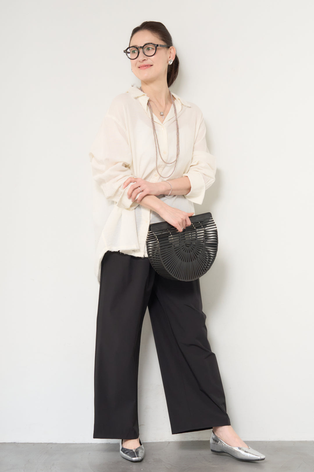 [SET]カットオフドビーシャツ+【接触冷感】ワイドストレートパンツ(2set)