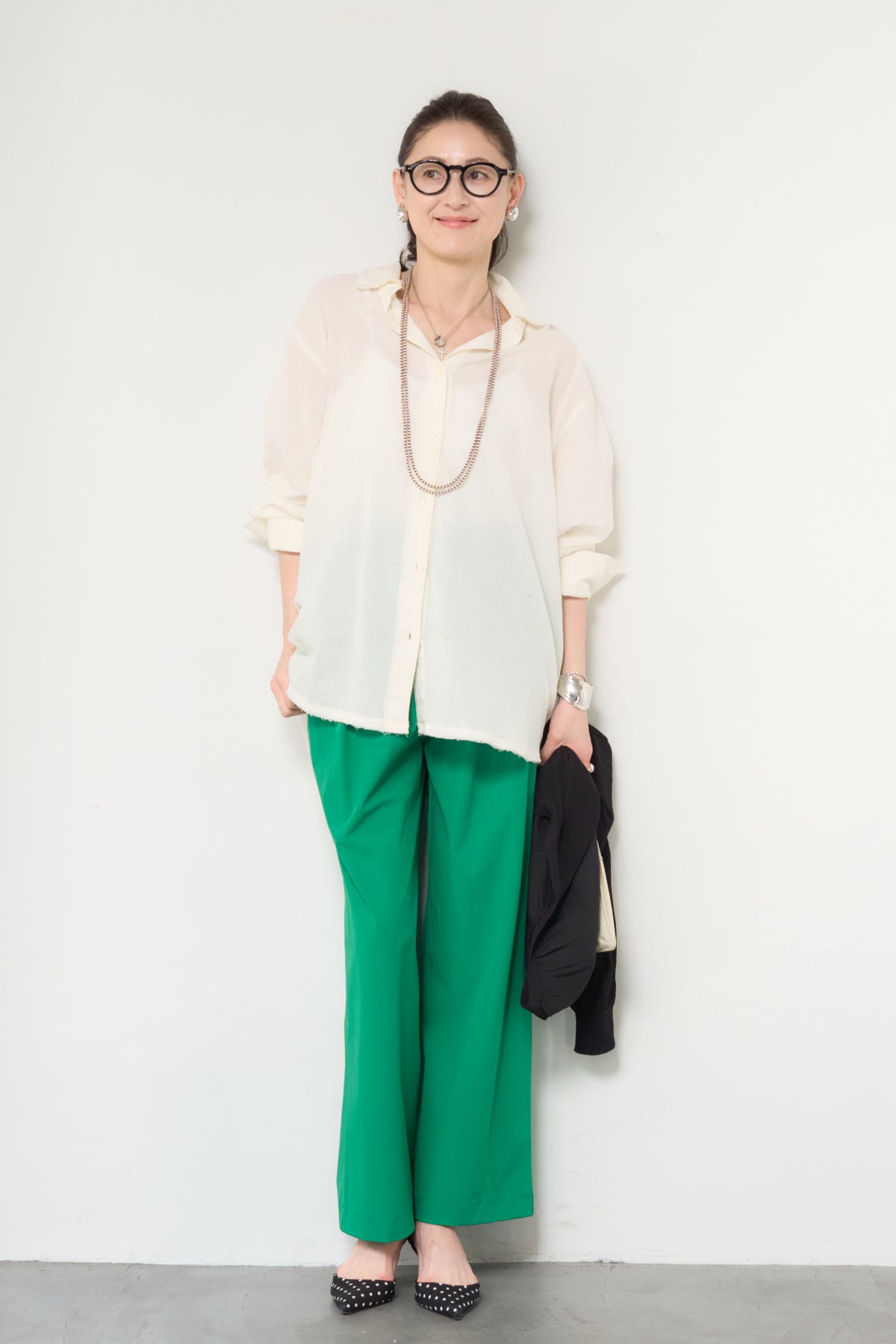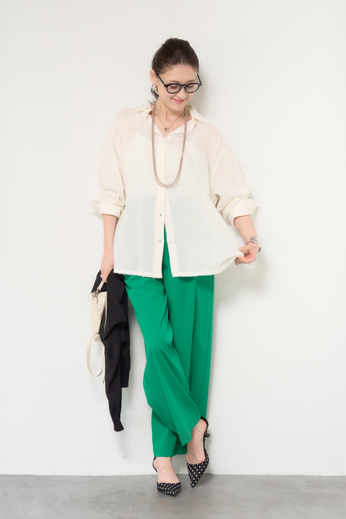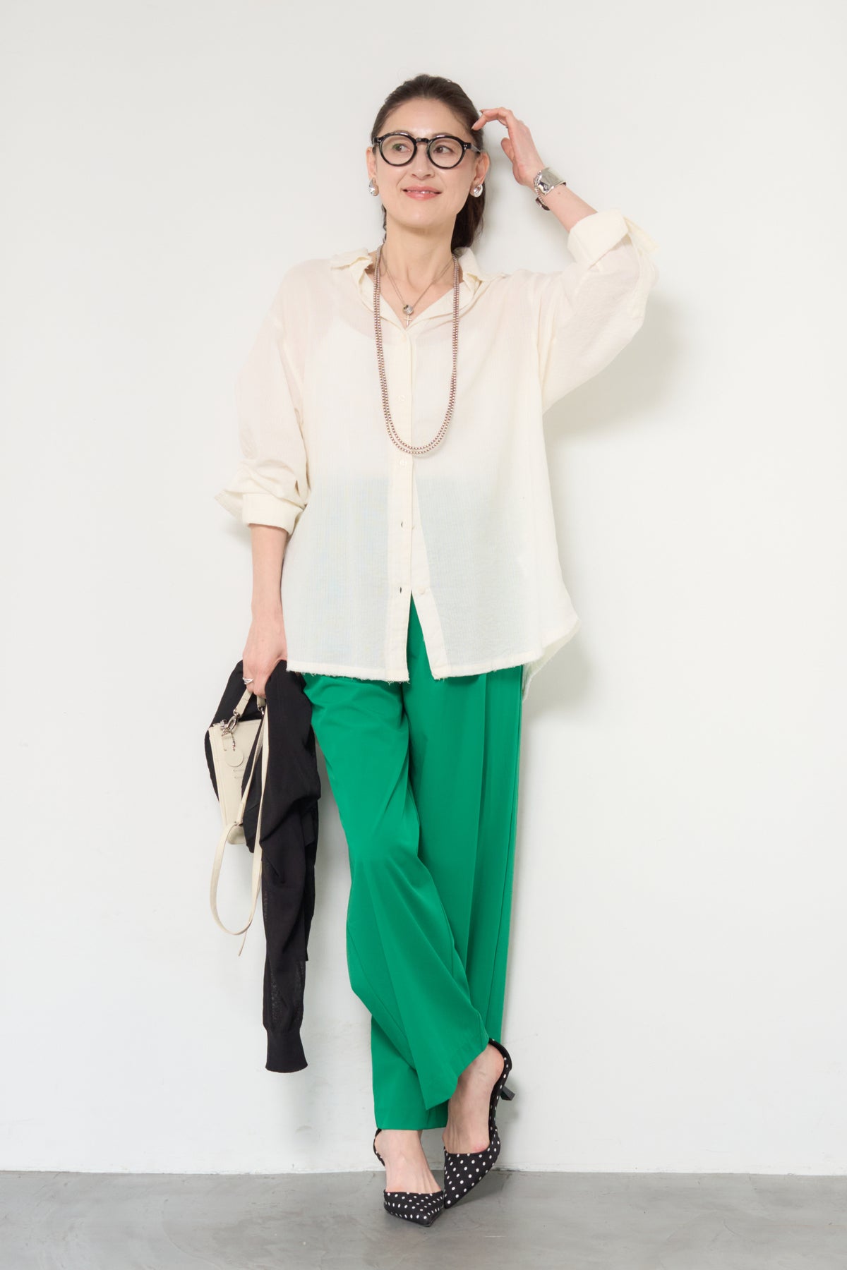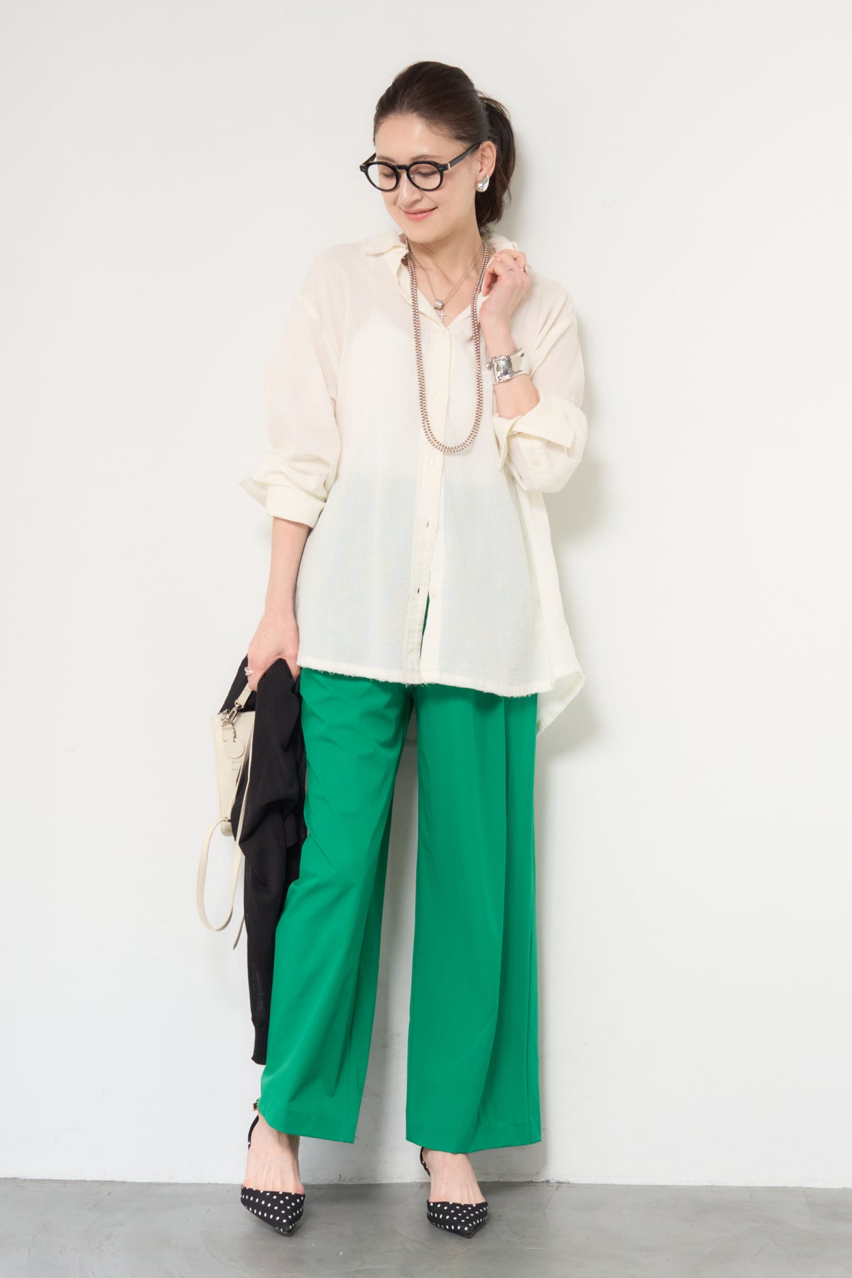 [SET]カットオフドビーシャツ+【接触冷感】ワイドストレートパンツ(2set)