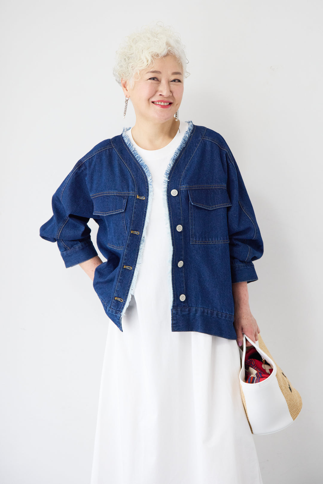 [SET]フリンジデニムジャケット+フレンチスリーブTワンピース(2set)