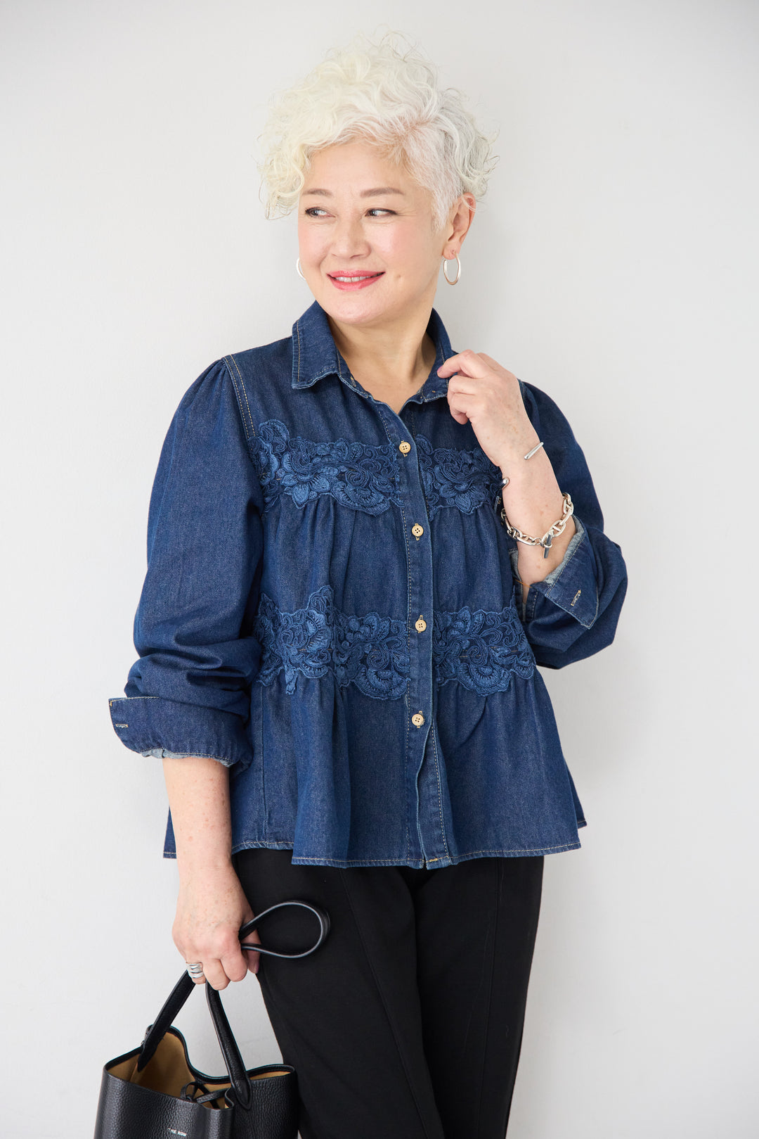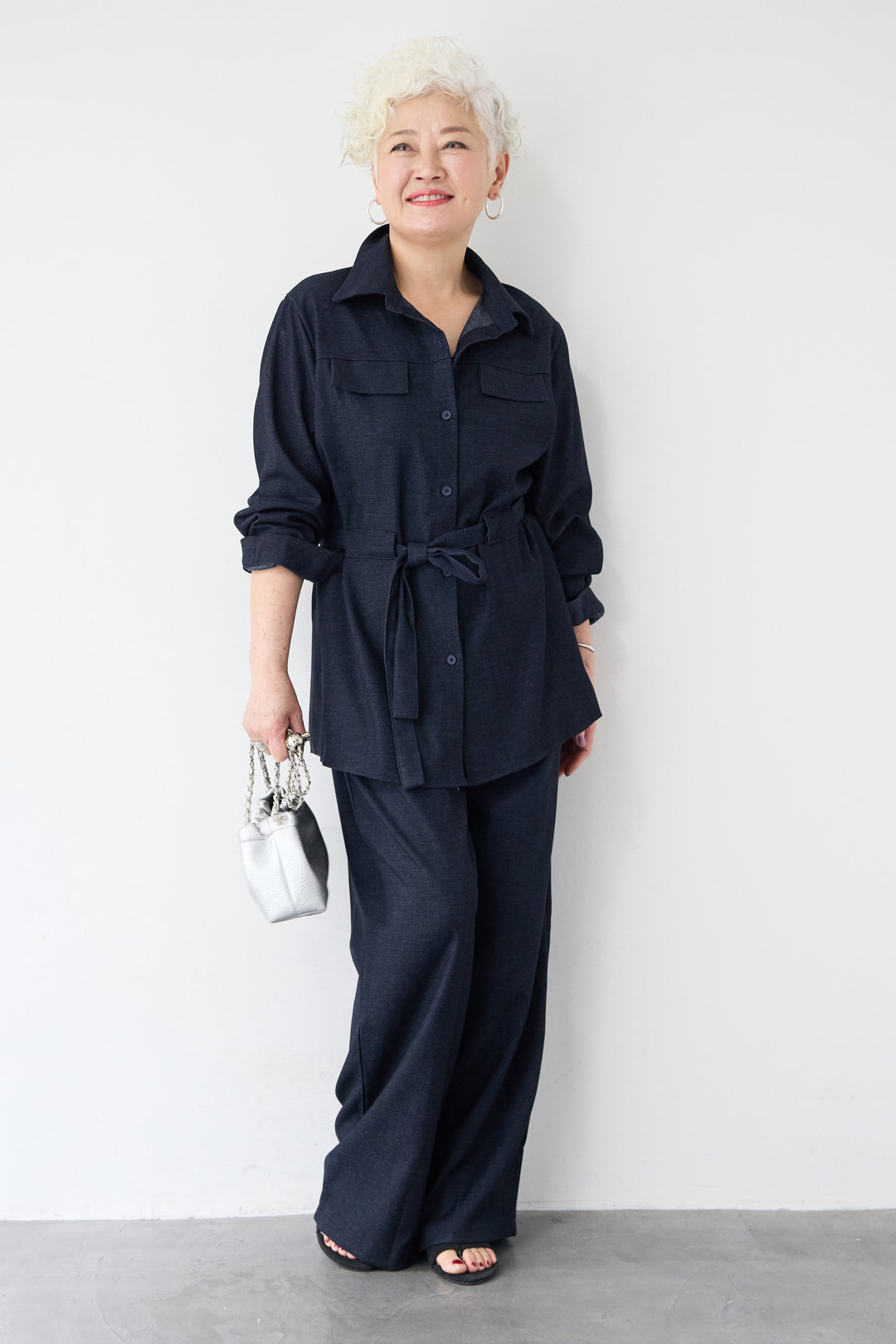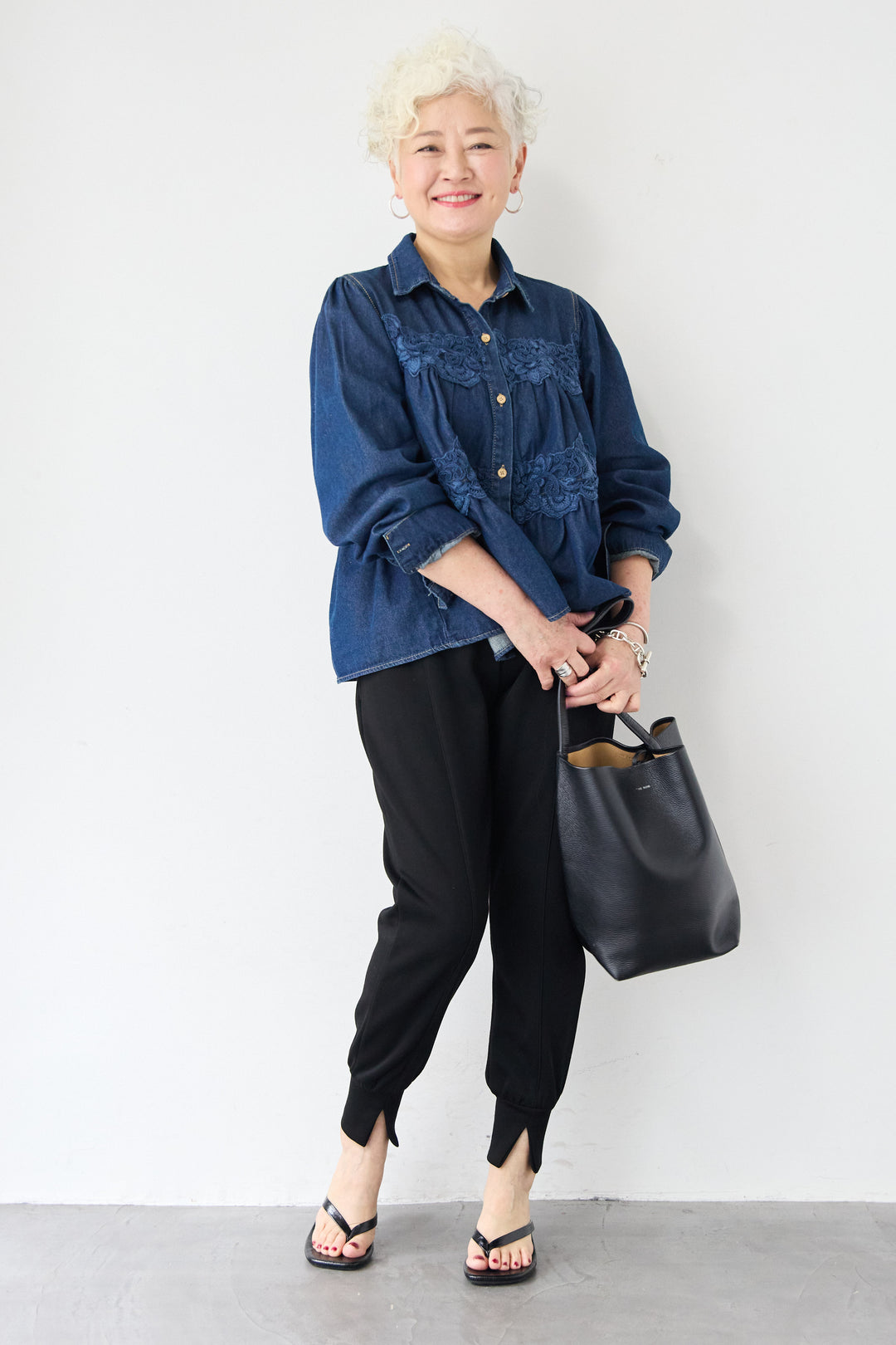 [SET]レースティアードデニムシャツ+ライトダンボールジョガーパンツ(2set)