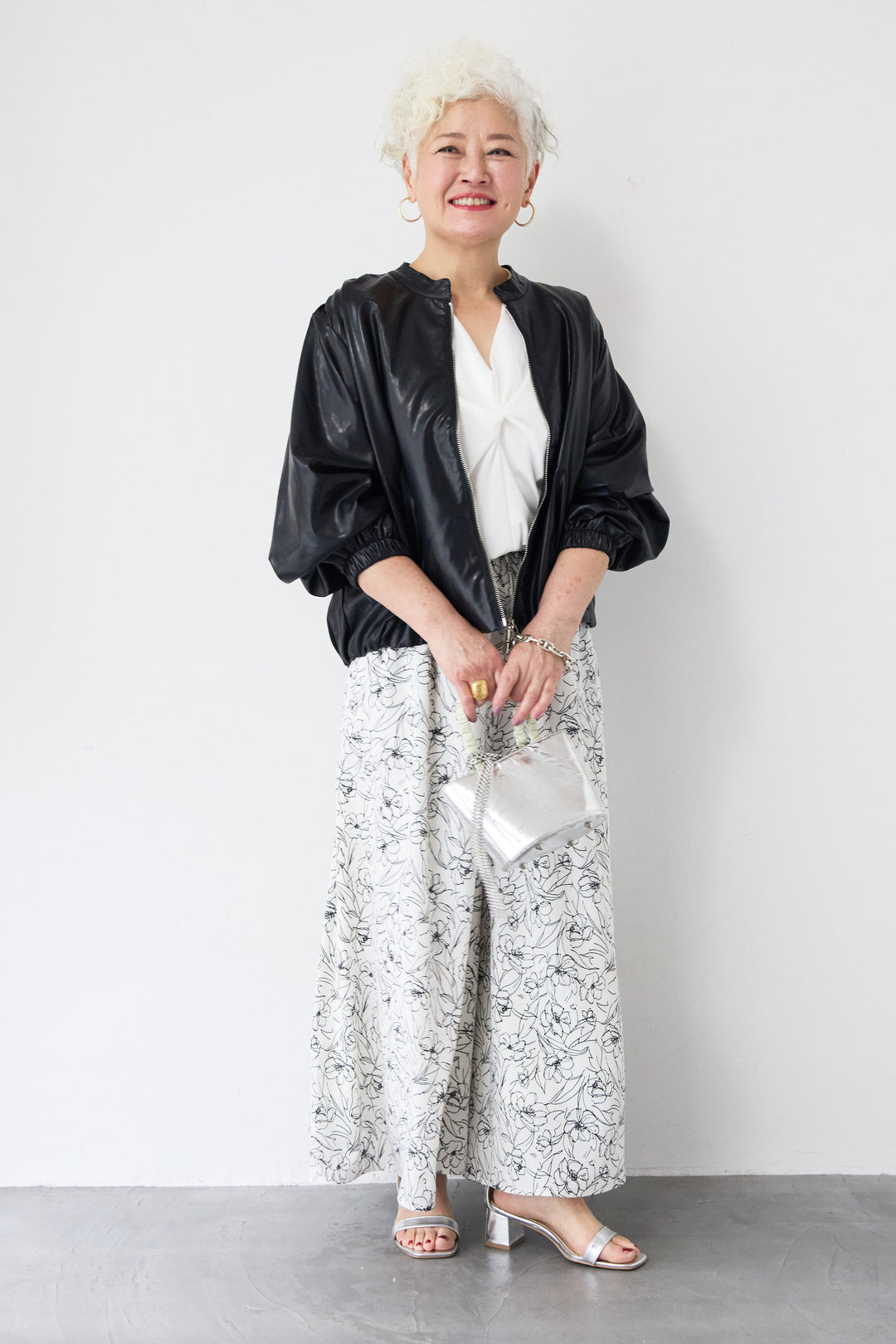 [SET]スラブリネン フーディショートブルゾン+水彩柄グリッタースカート(2set)