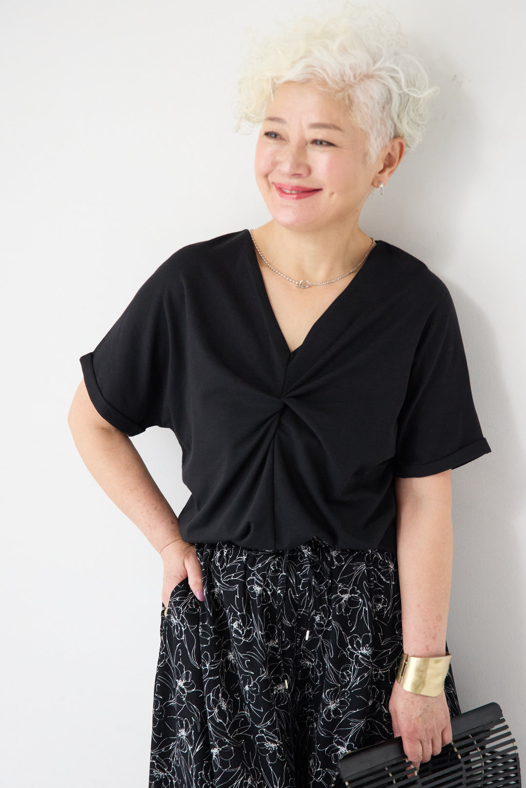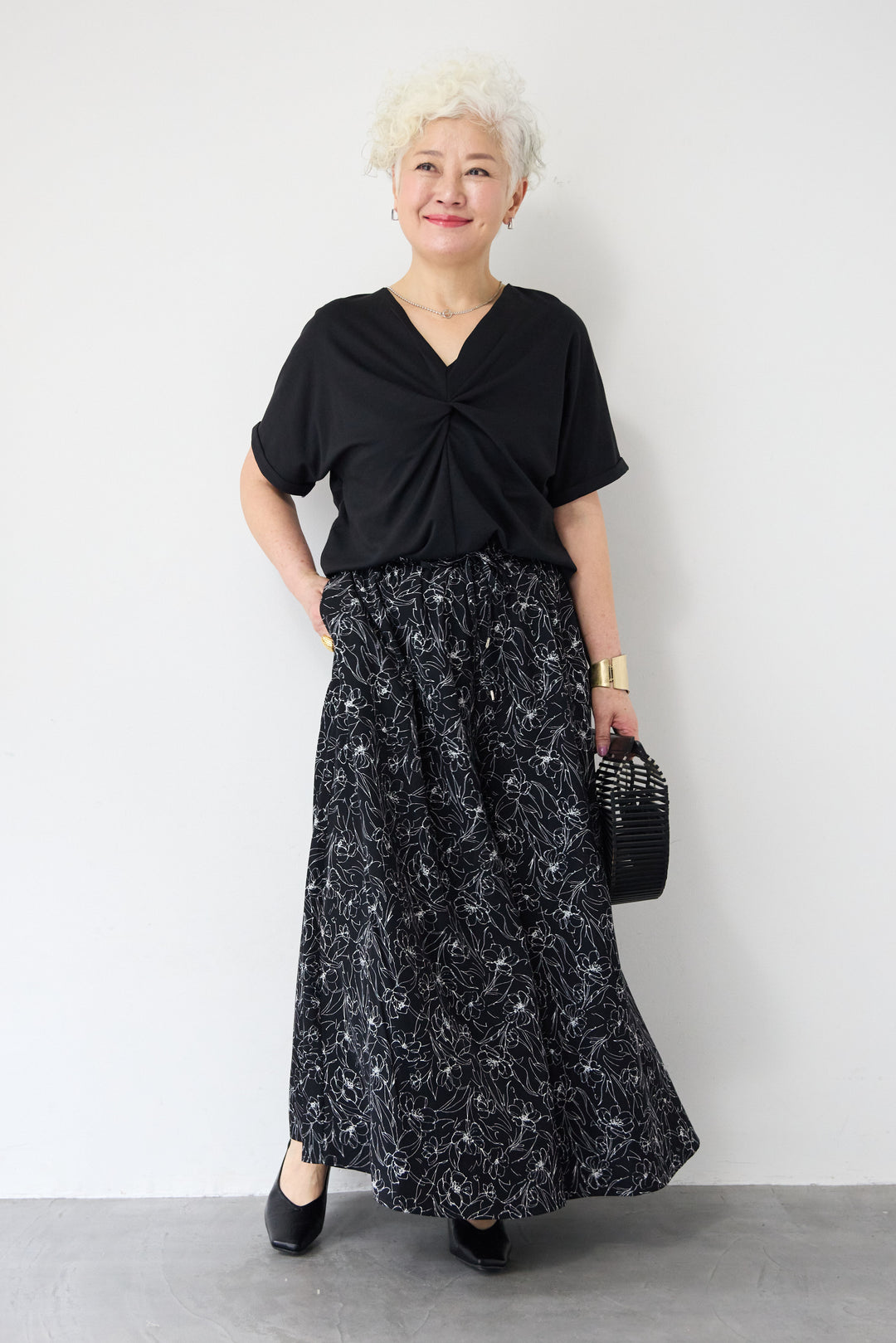 [SET]ツイストドレープVネックT+フラワープリントスカンツ(2set)