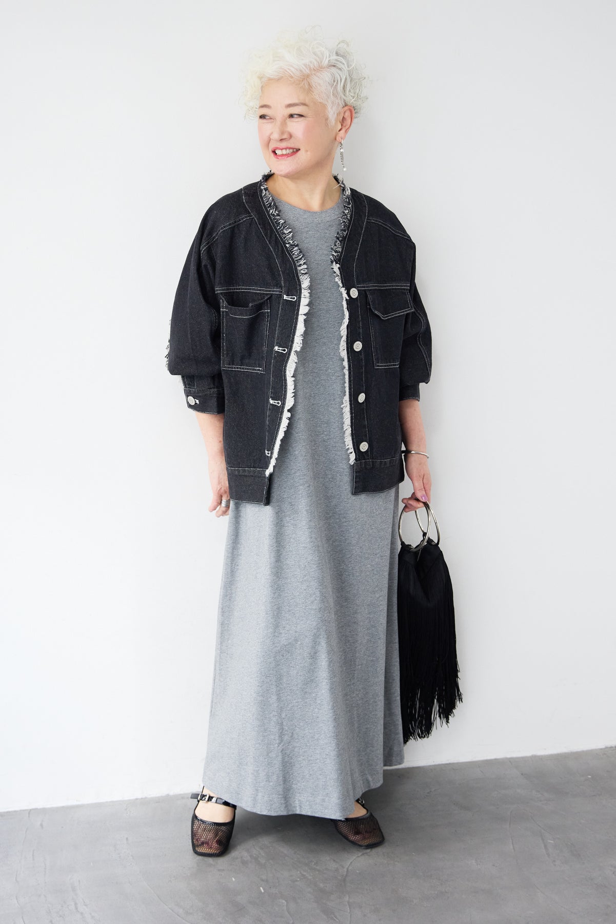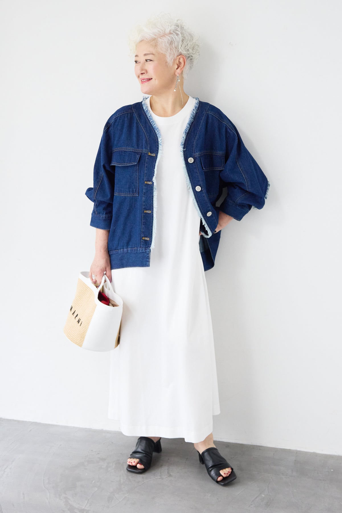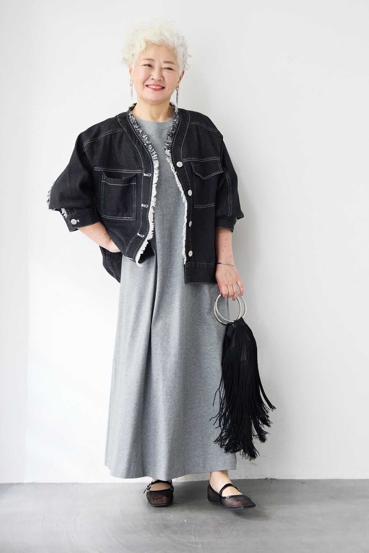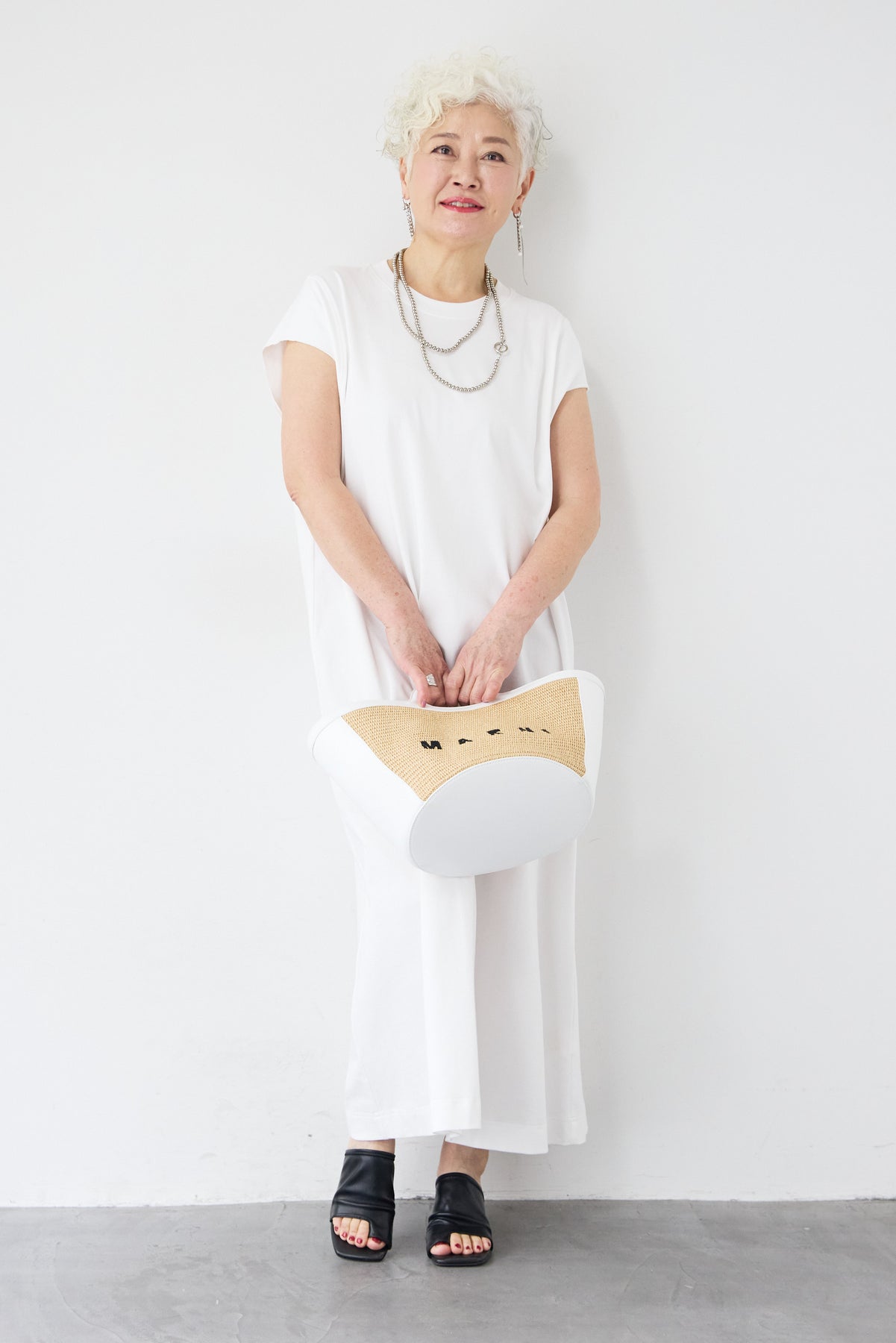 すっきりとしたIラインシルエットで体のラインを拾いにくく、1枚で上品に決まるTシャツワンピース。肩先をさりげなく覆うフレンチスリーブが腕まわりをすっきり見せ、リラックス感ときちんと感を両立します。程よいハリと落ち感のあるカットソー素材で、さらりとした肌触りと快適な着心地。シンプルなクルーネックと長め丈で、サンダルからスニーカーまで幅広いスタイリングに活躍します。デイリーにもお出かけにも頼れる、大人のためのミニマルワンピースです。