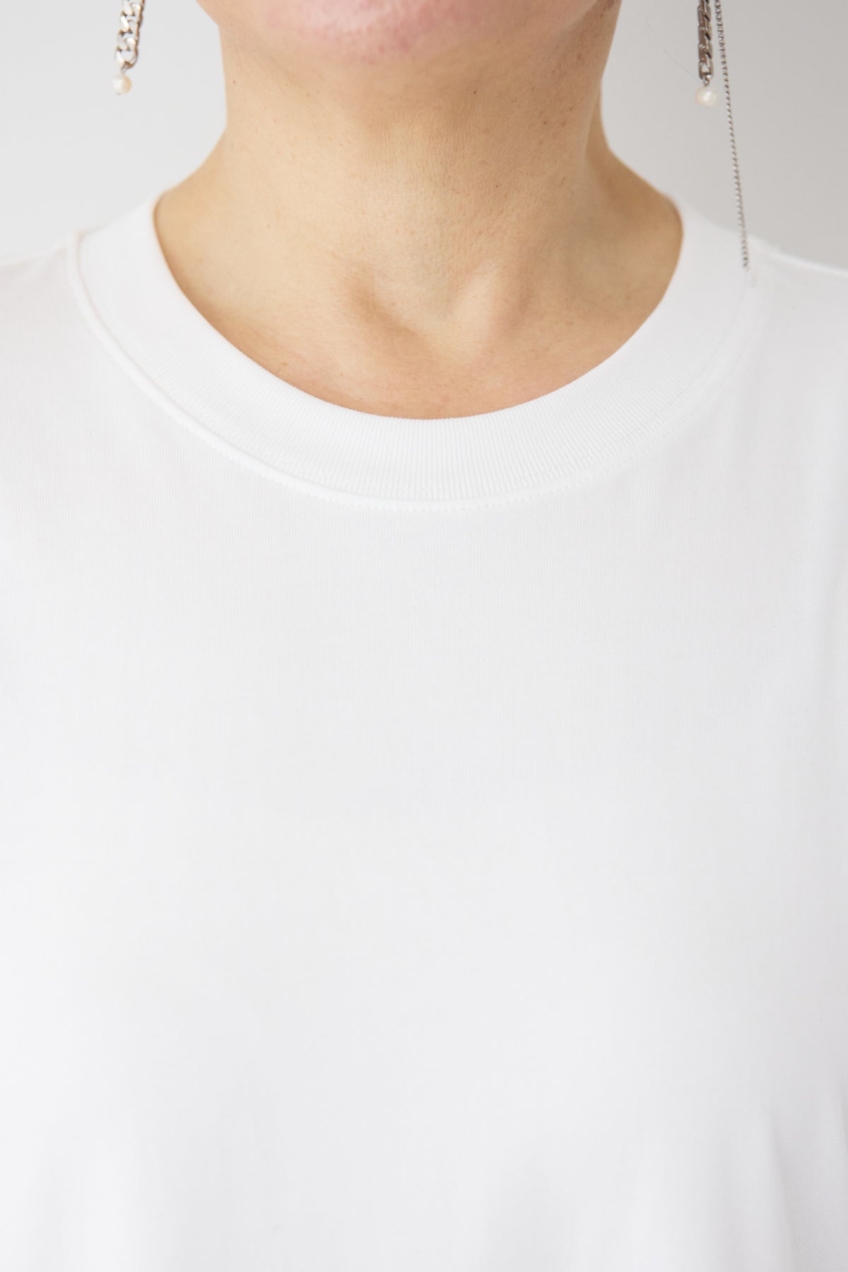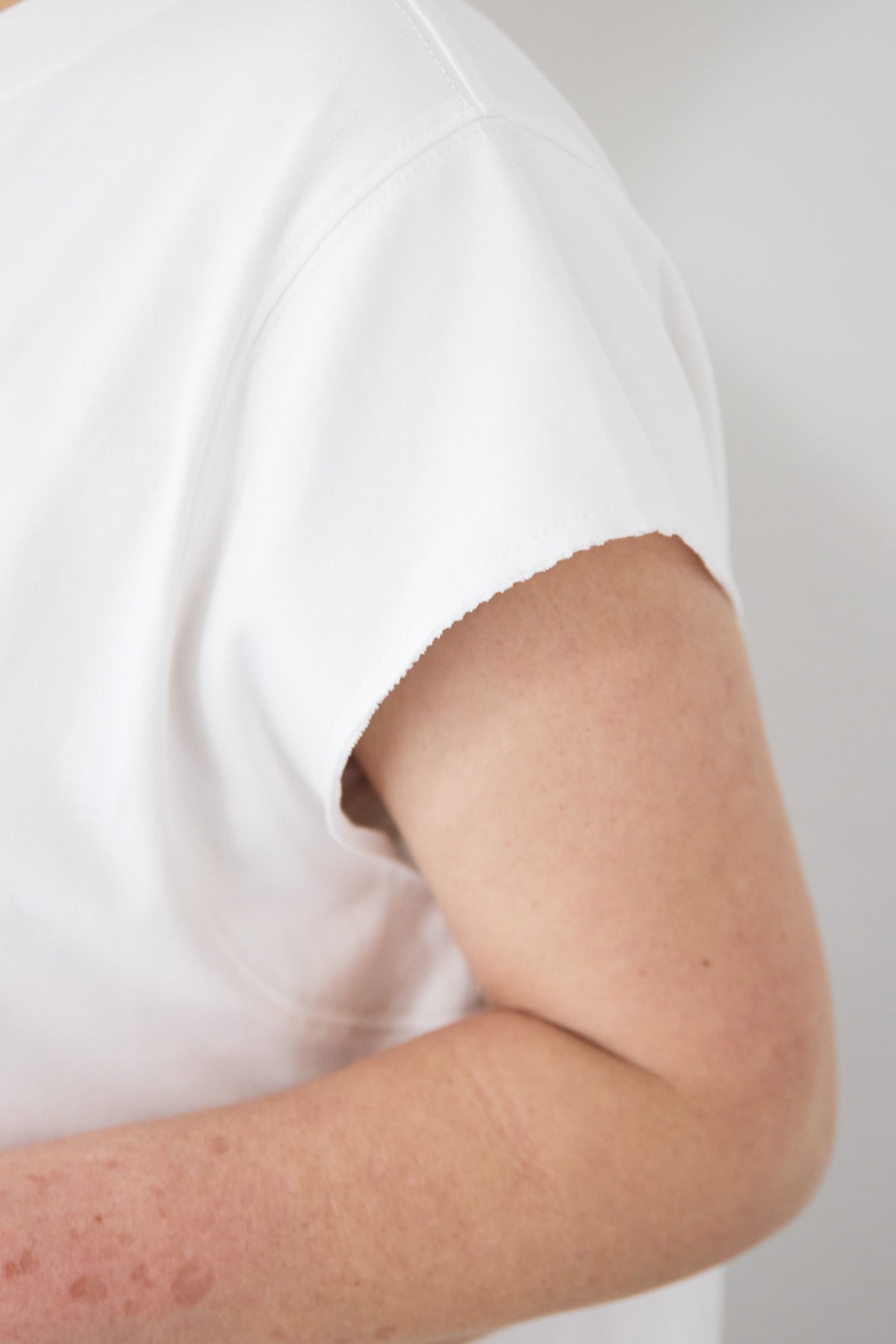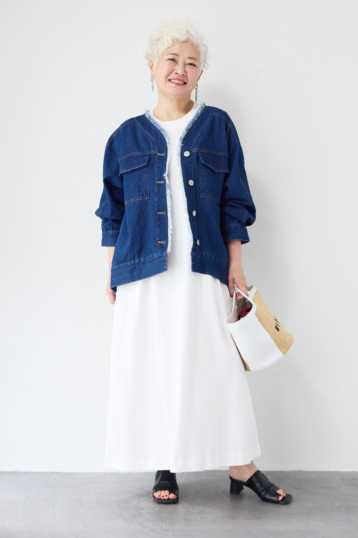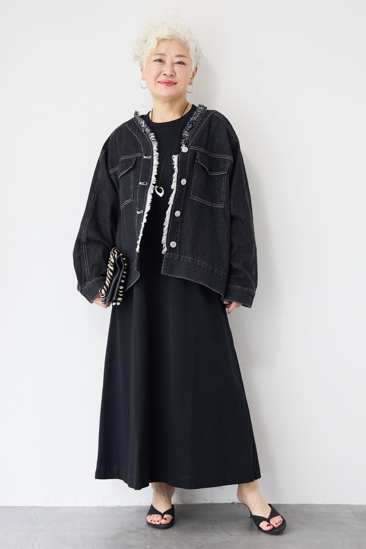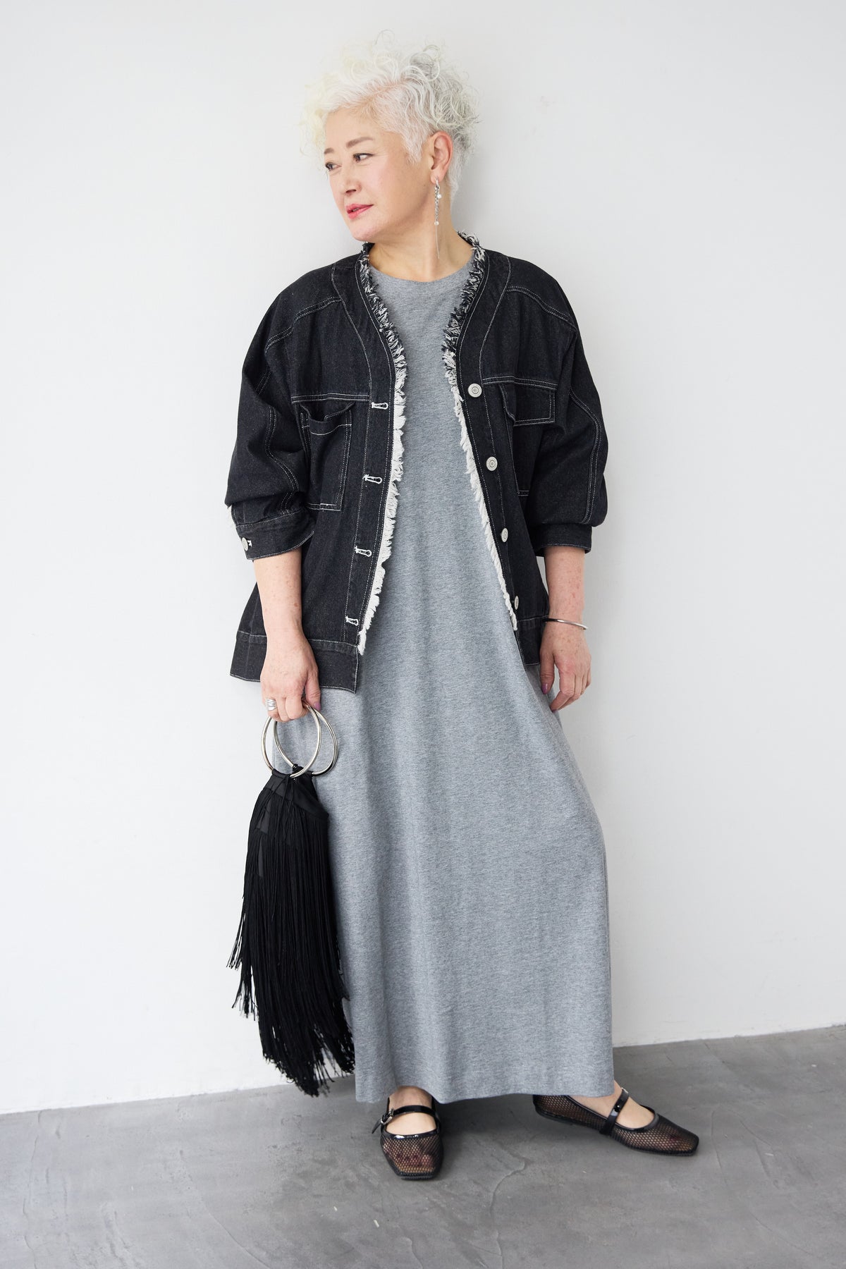 すっきりとしたIラインシルエットで体のラインを拾いにくく、1枚で上品に決まるTシャツワンピース。肩先をさりげなく覆うフレンチスリーブが腕まわりをすっきり見せ、リラックス感ときちんと感を両立します。程よいハリと落ち感のあるカットソー素材で、さらりとした肌触りと快適な着心地。シンプルなクルーネックと長め丈で、サンダルからスニーカーまで幅広いスタイリングに活躍します。デイリーにもお出かけにも頼れる、大人のためのミニマルワンピースです。