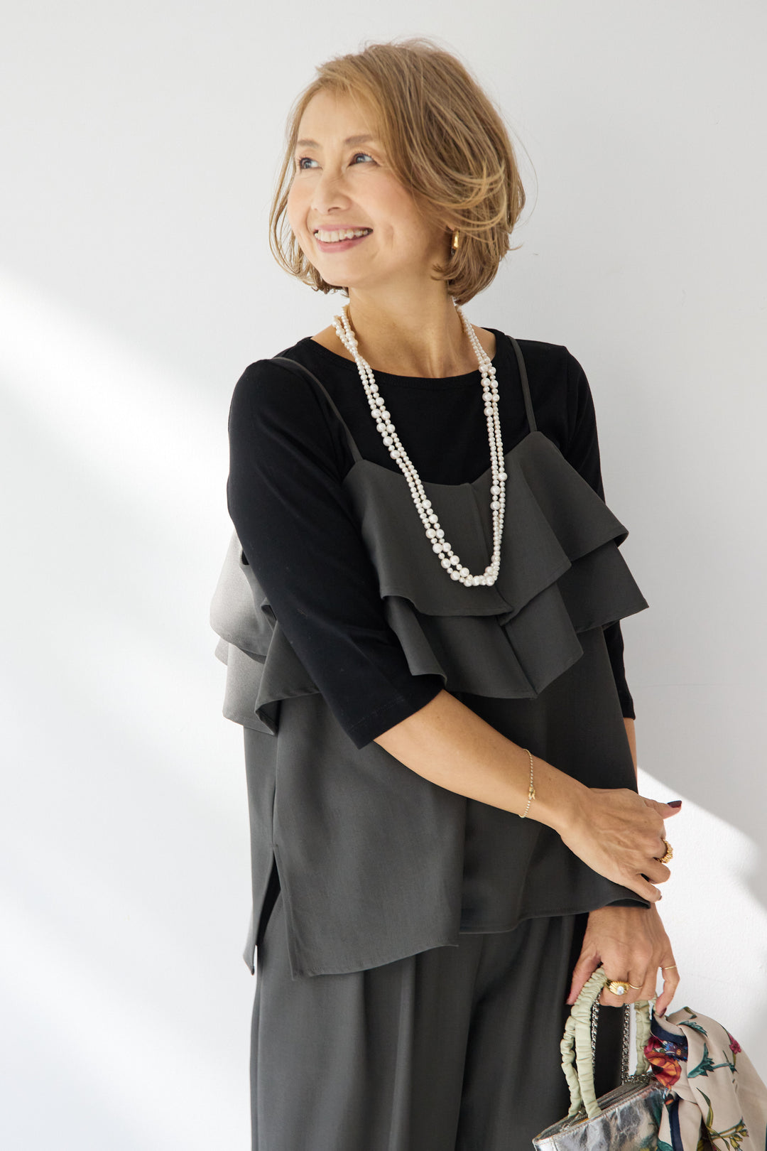 【イージーケア】ティアードフリル キャミソール