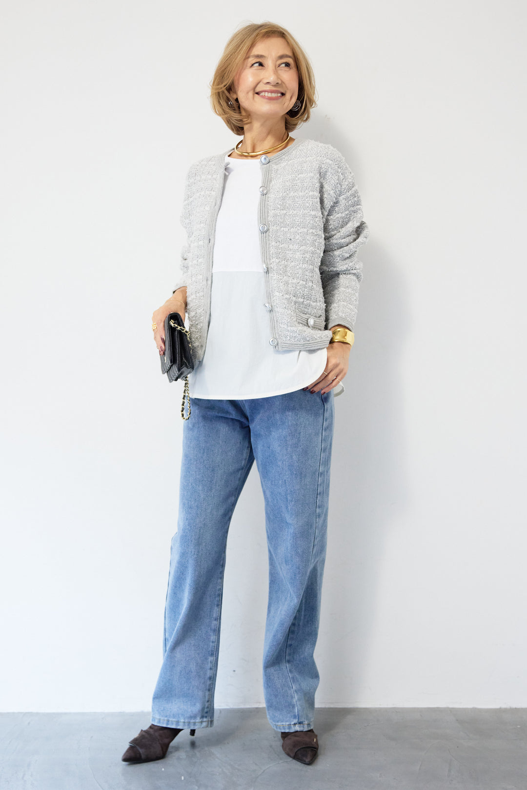 ゴールドボタンペプラムカーディガン