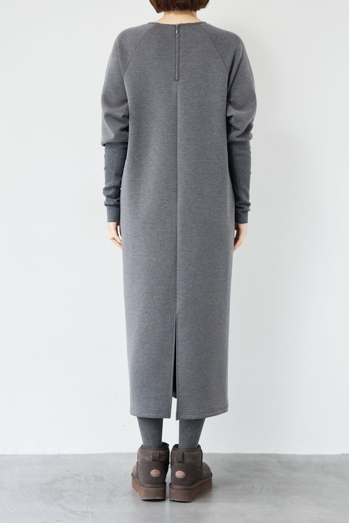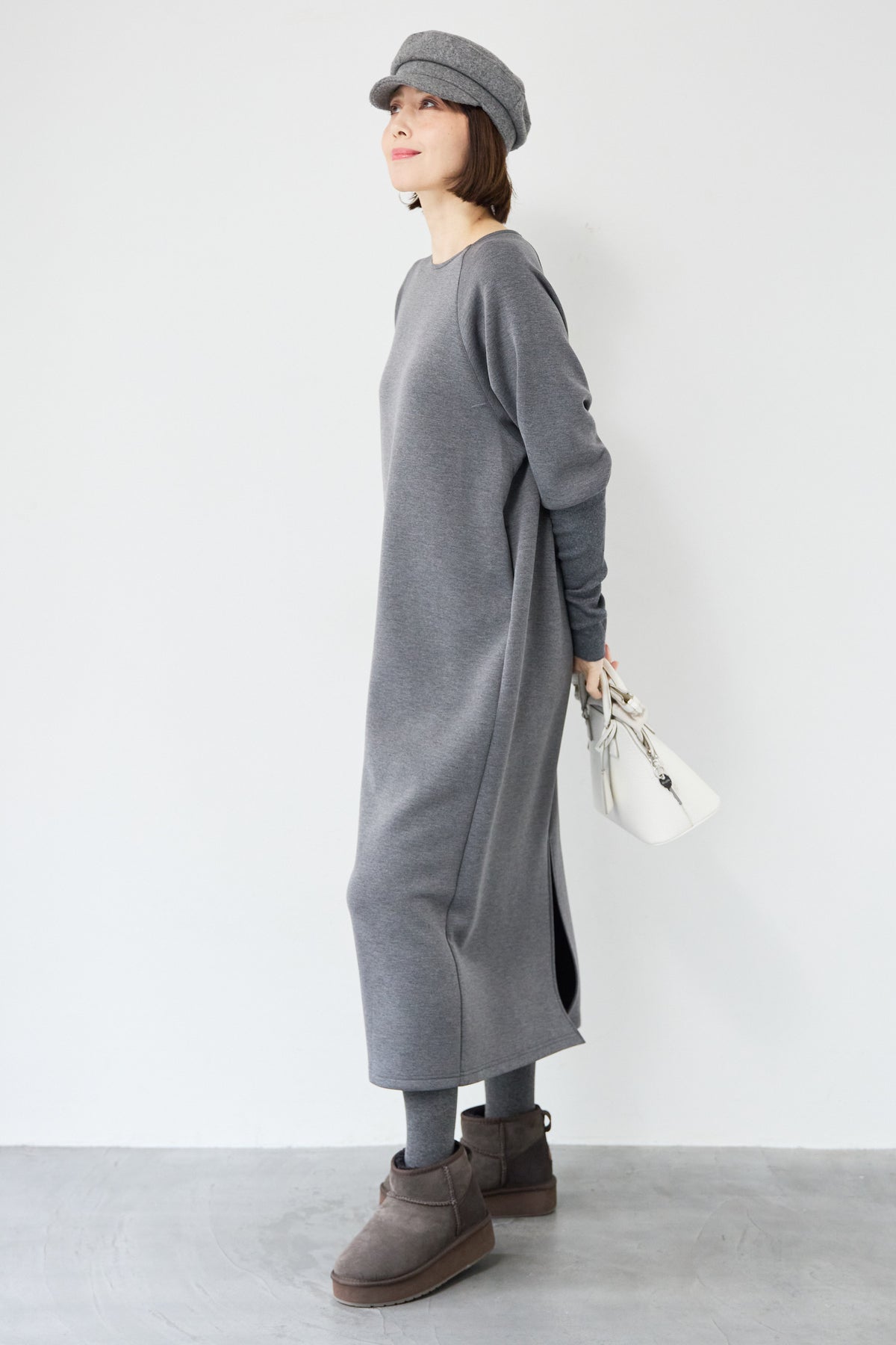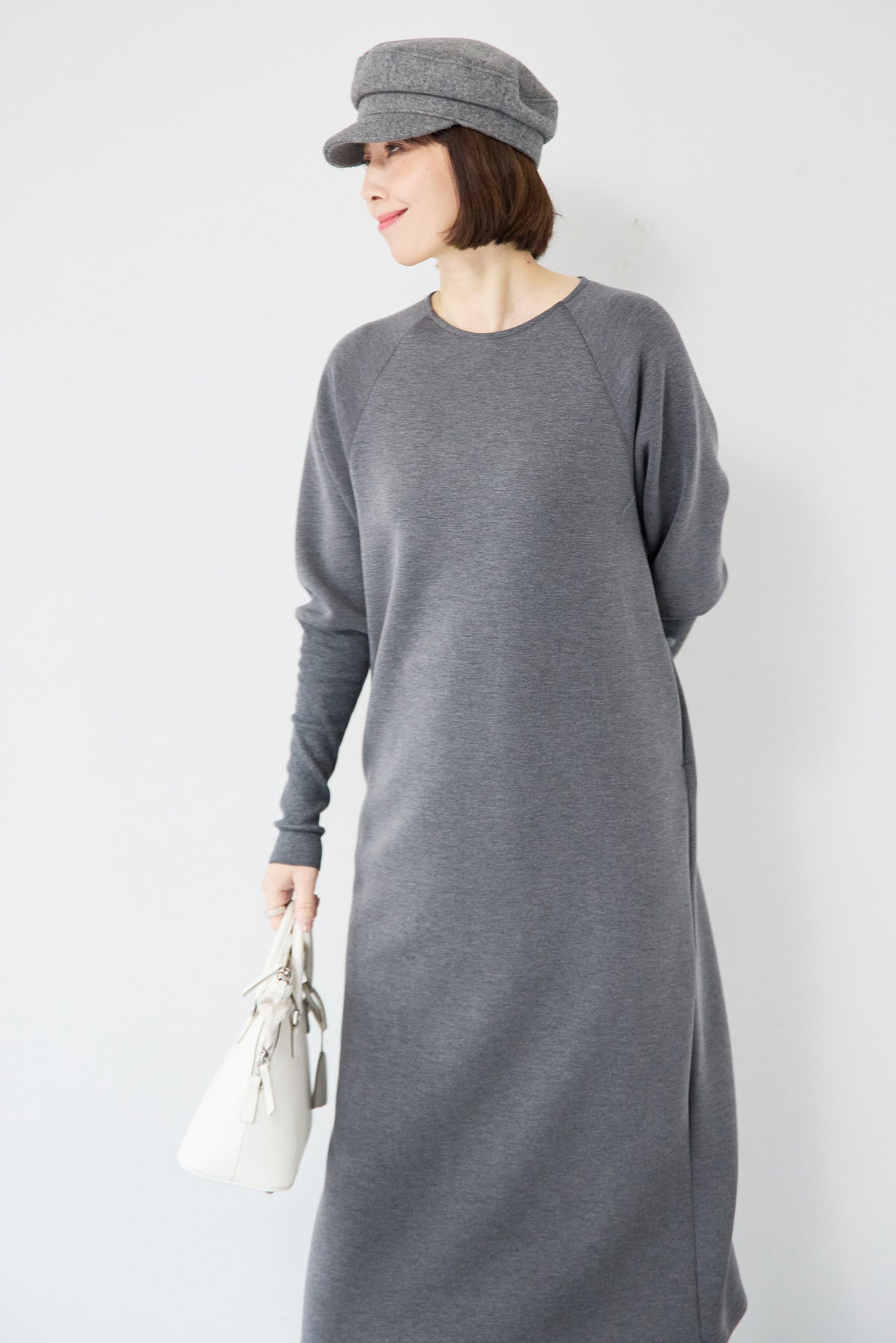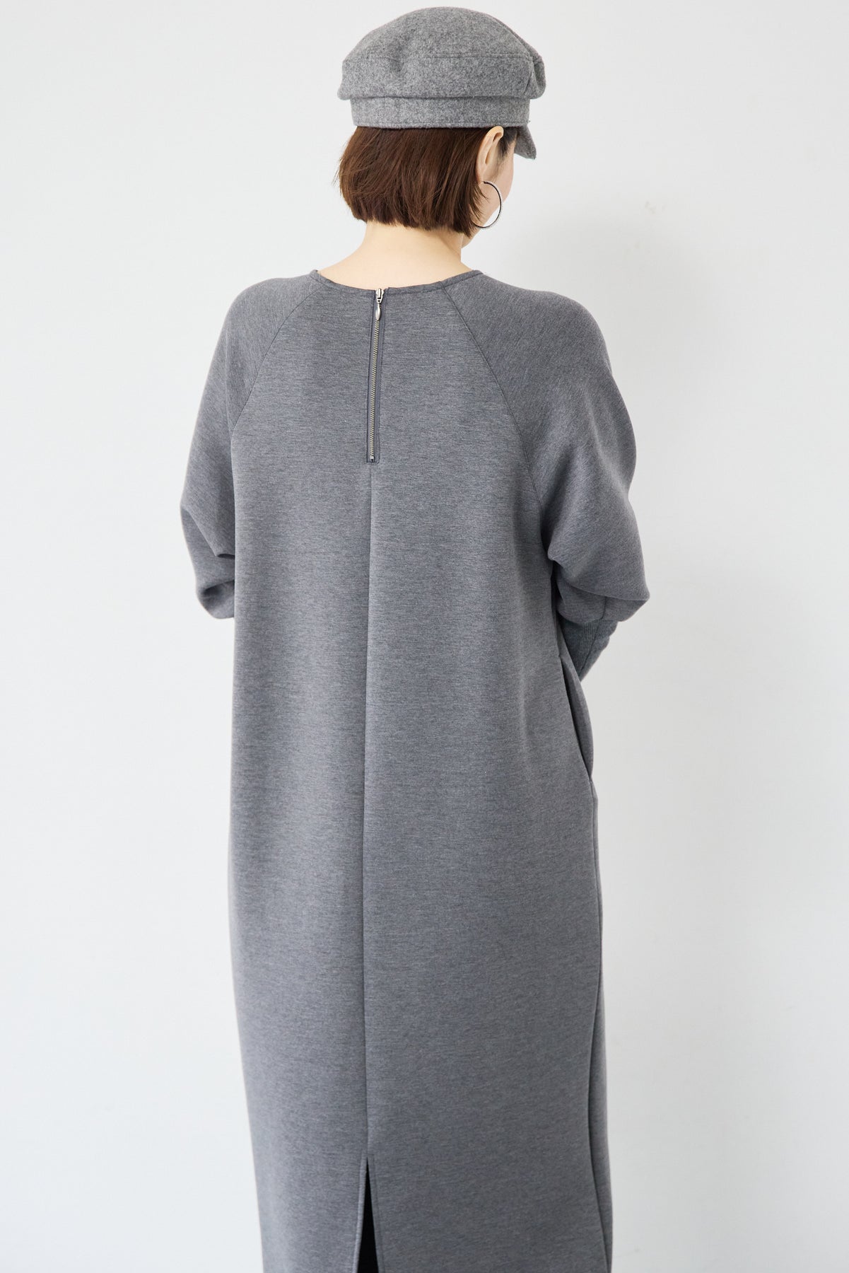 ミニマルなデザインと快適な着心地を兼ね備えた、バックジップダンボールワンピース。やや肉厚でハリのあるダンボールニット素材を使用し、シルエットを美しくキープしながらも軽やかな着用感を実現しました。シンプルなラウンドネックとラグランスリーブが、抜け感のあるリラックスした印象を演出。長めの袖丈とリブ切り替えが程よいアクセントとなり、モード感をプラスします。背面のミドル丈ファスナーは着脱をスムーズにしつつ、デザインポイントにも。バックにはスリットを配し、足さばきも快適です。両サイドにはポケット付きで実用性も◎。