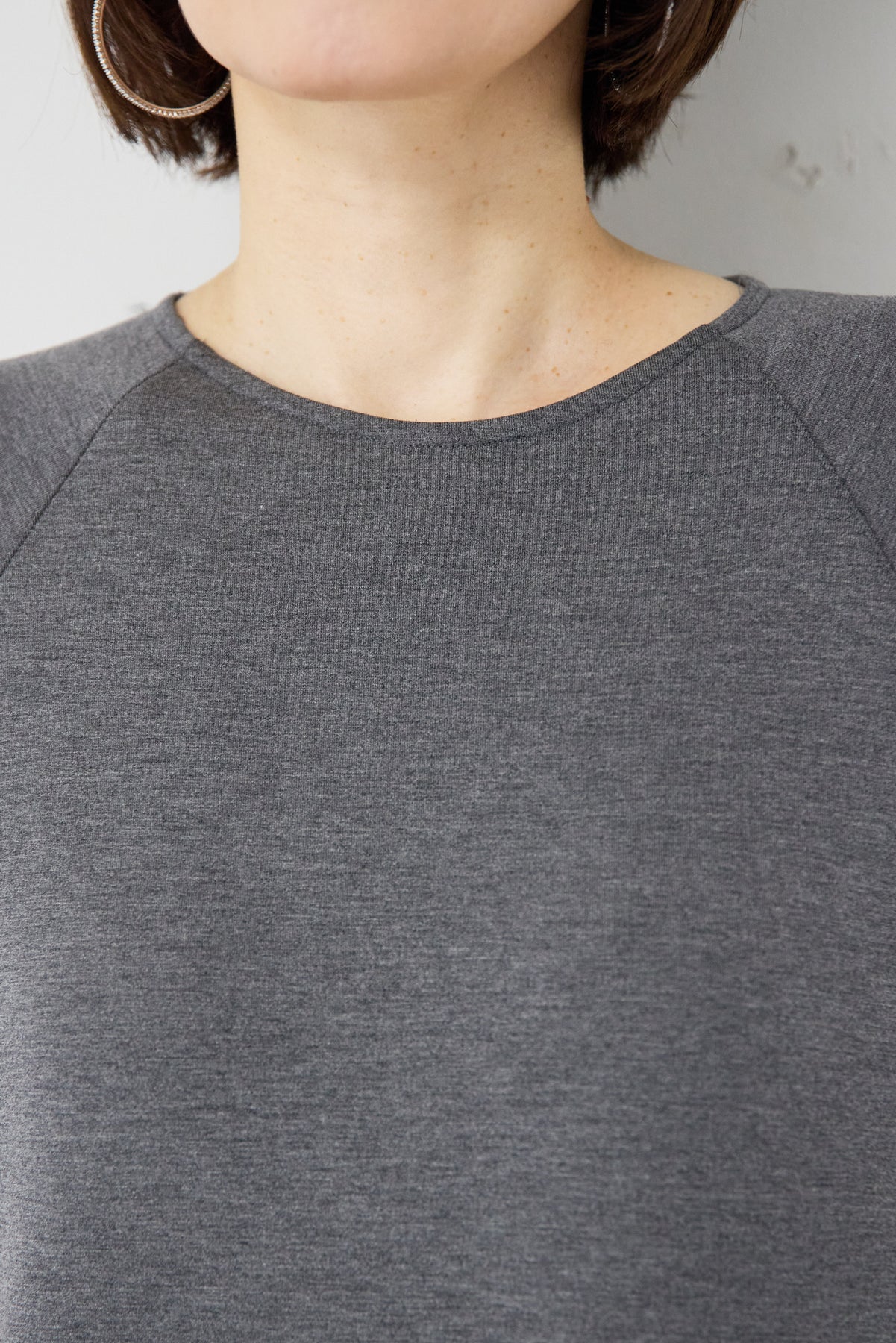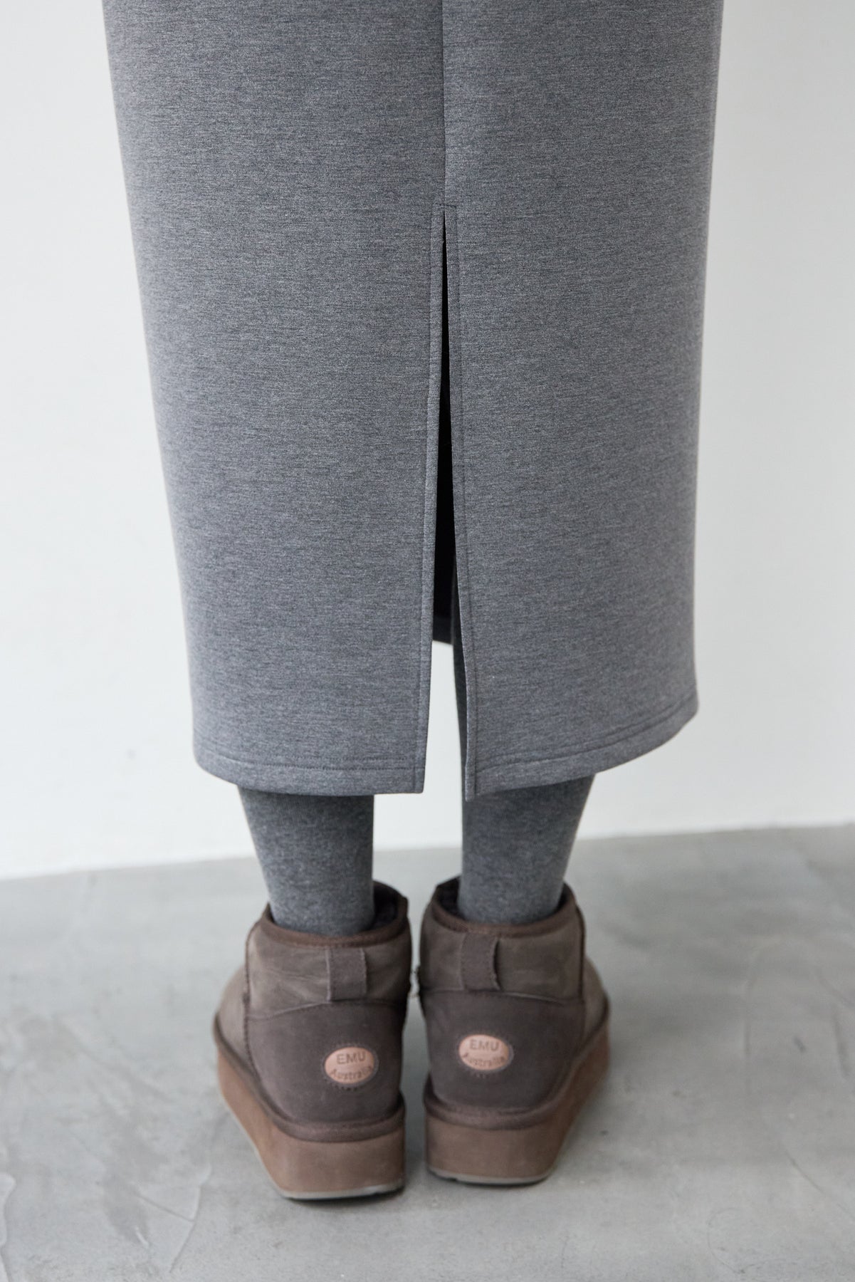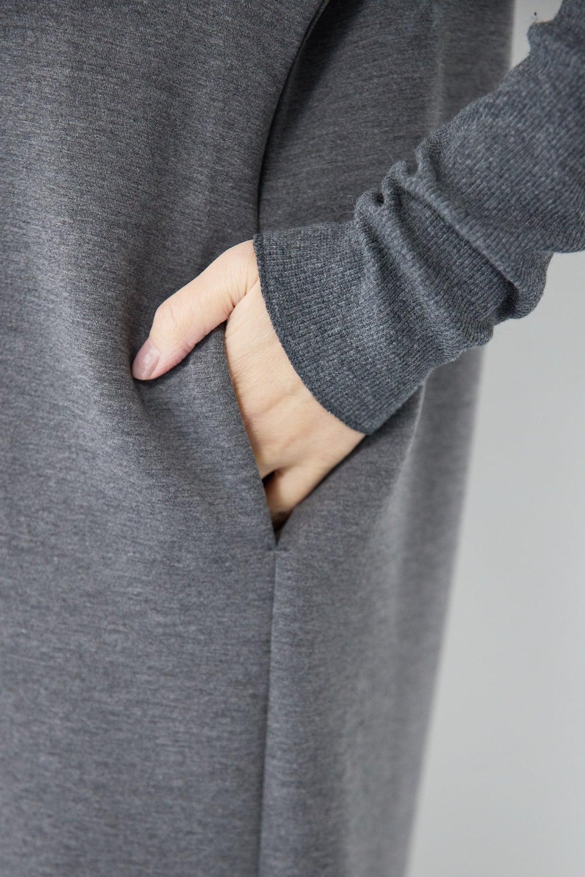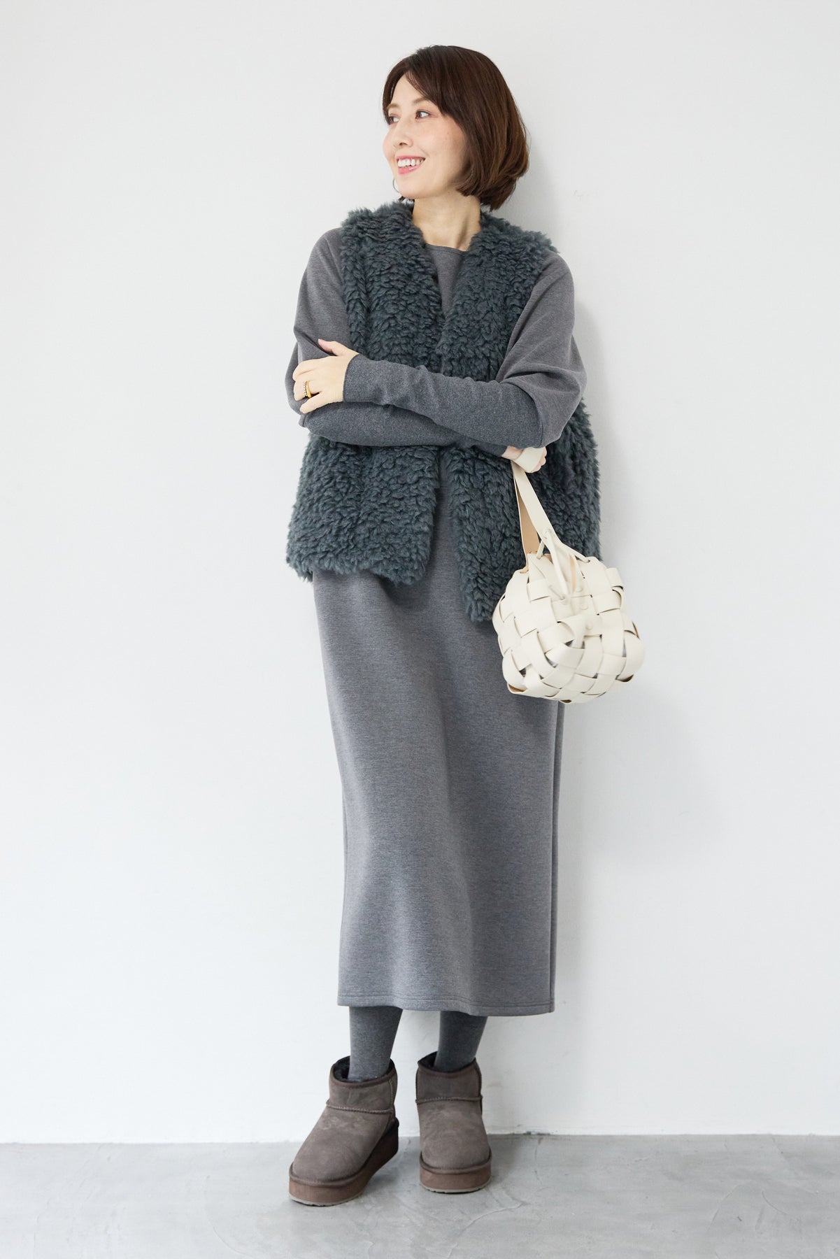 ミニマルなデザインと快適な着心地を兼ね備えた、バックジップダンボールワンピース。やや肉厚でハリのあるダンボールニット素材を使用し、シルエットを美しくキープしながらも軽やかな着用感を実現しました。シンプルなラウンドネックとラグランスリーブが、抜け感のあるリラックスした印象を演出。長めの袖丈とリブ切り替えが程よいアクセントとなり、モード感をプラスします。背面のミドル丈ファスナーは着脱をスムーズにしつつ、デザインポイントにも。バックにはスリットを配し、足さばきも快適です。両サイドにはポケット付きで実用性も◎。
