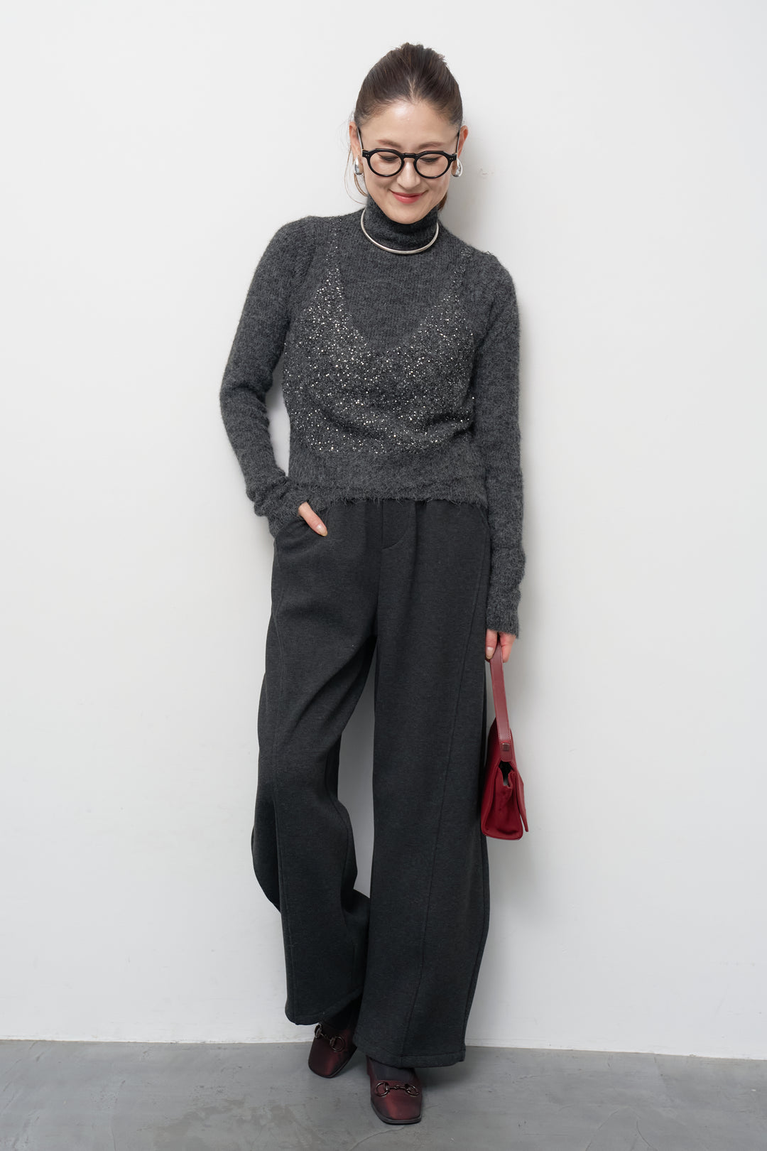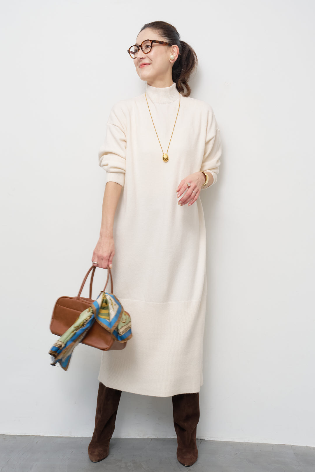 モックネックニットワンピース