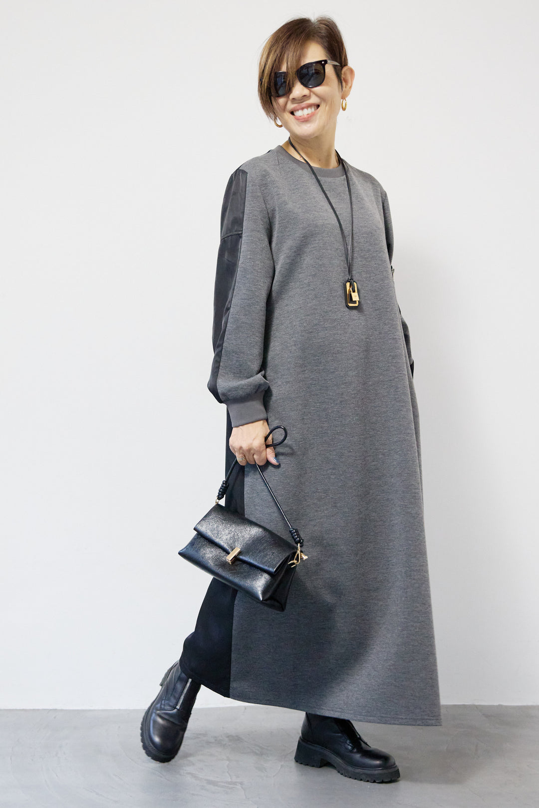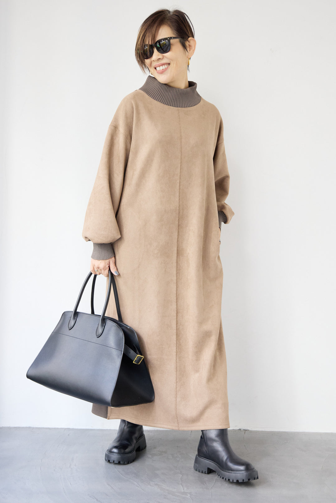 スエード×リブモックネックワンピース