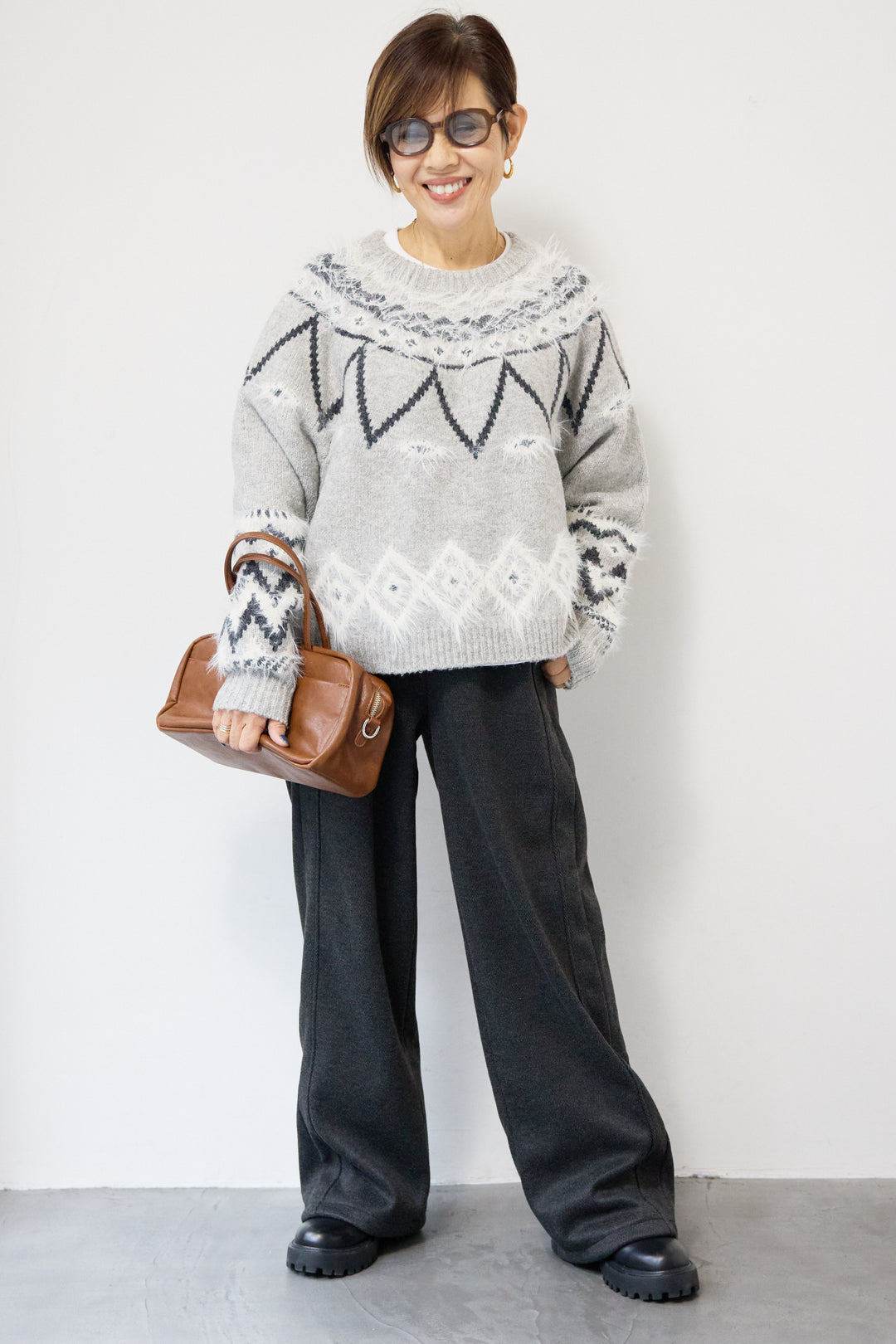 ノルディック柄フェザージャガードニット