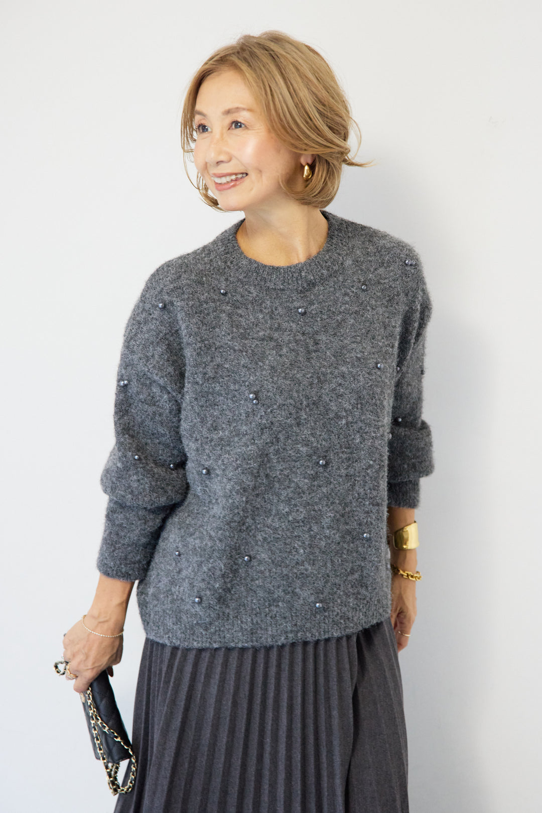 ボリュームスリーブ切替シャギーニット