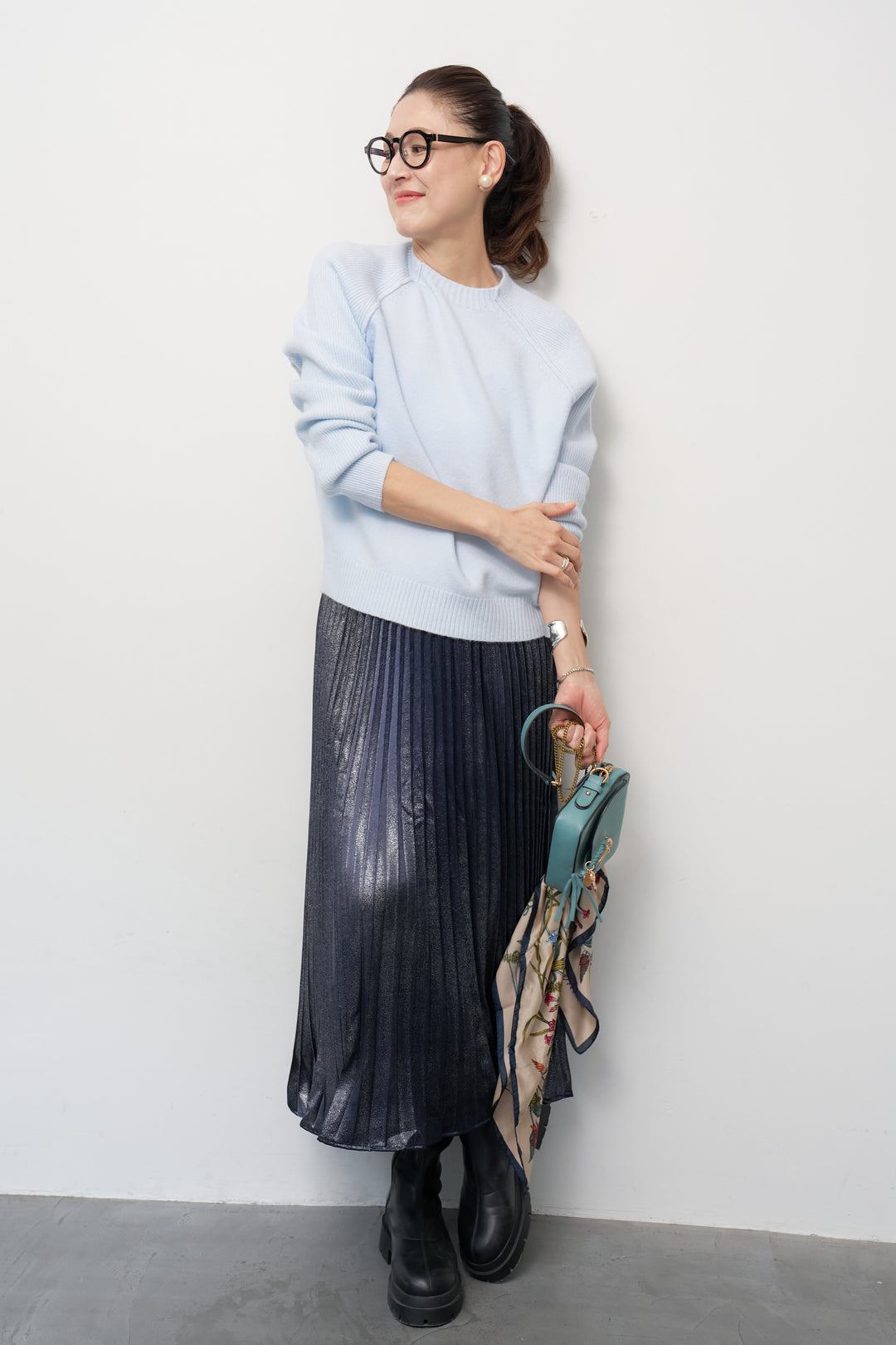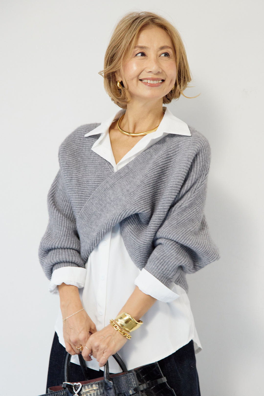 ツイストデザインニット+シャツアンサンブル