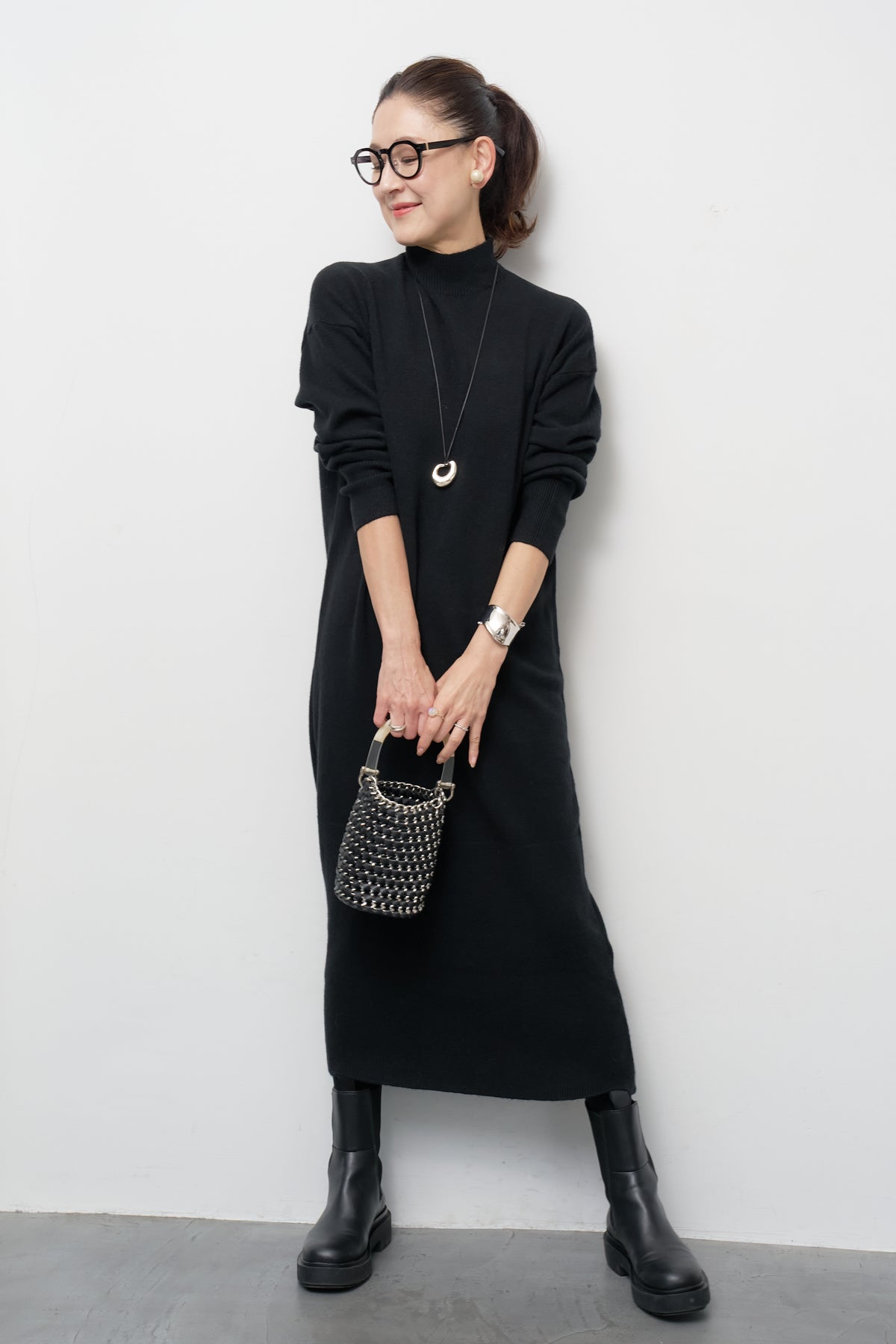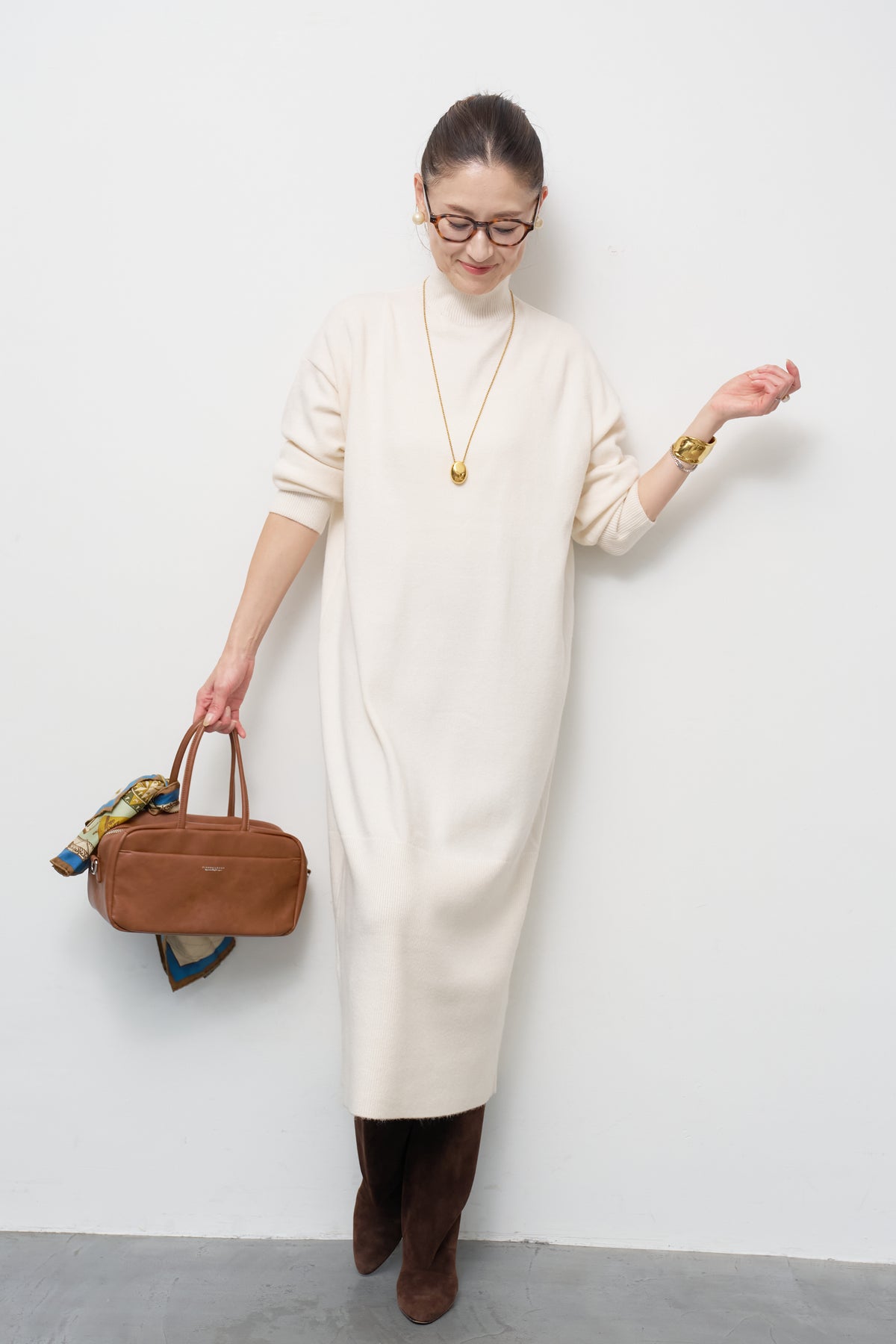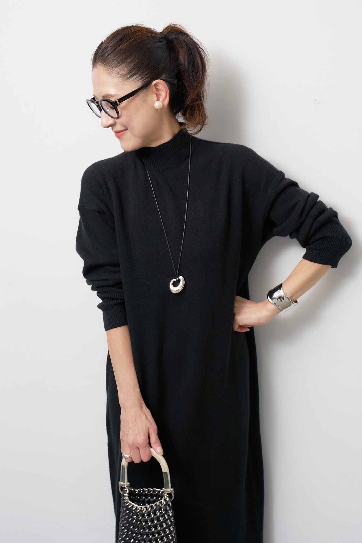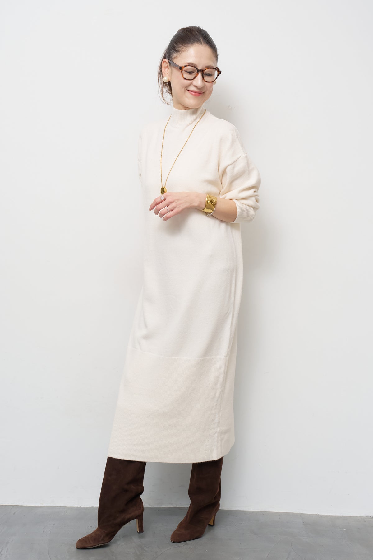 モックネックニットワンピース