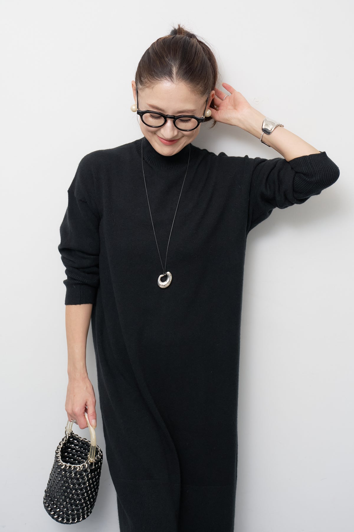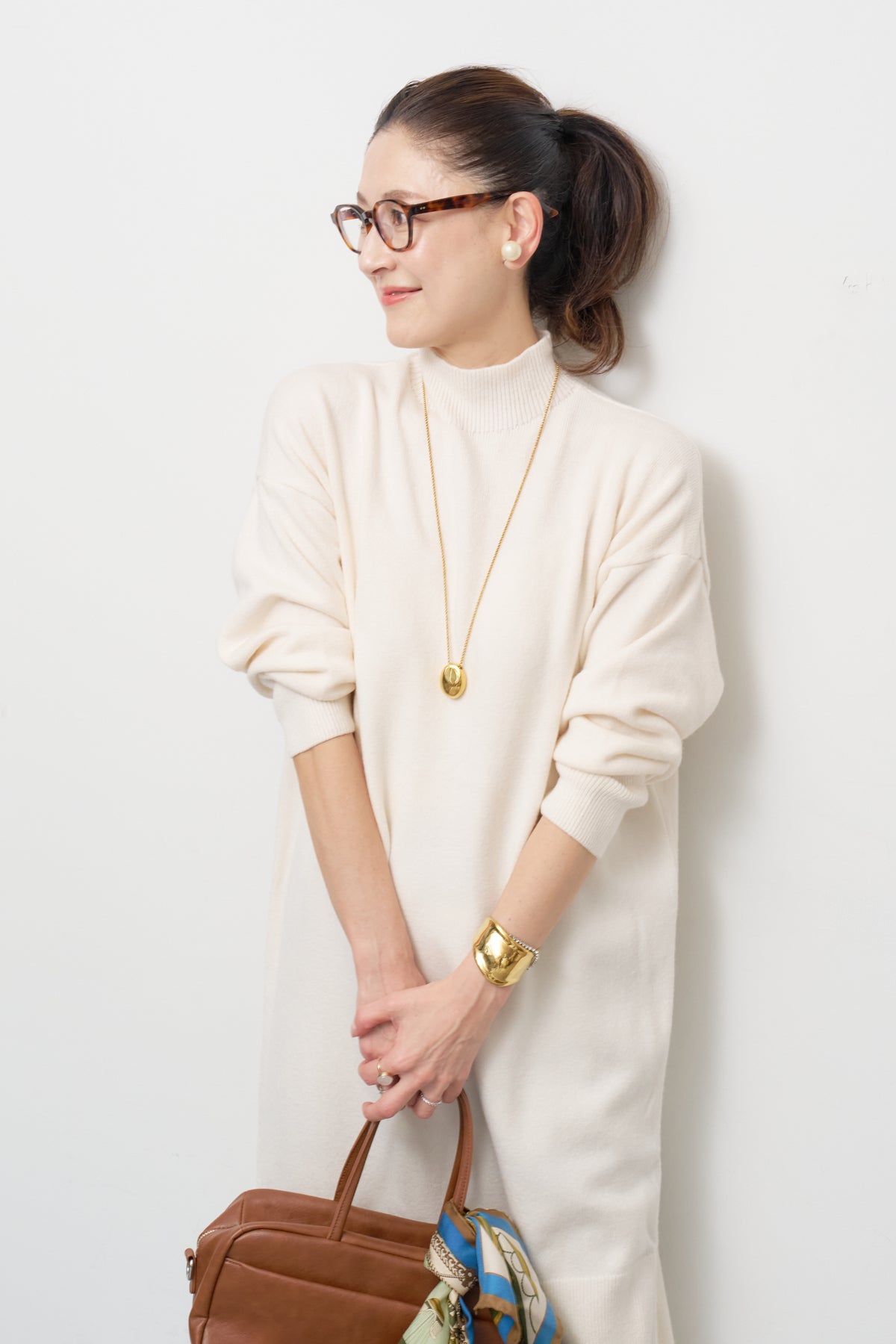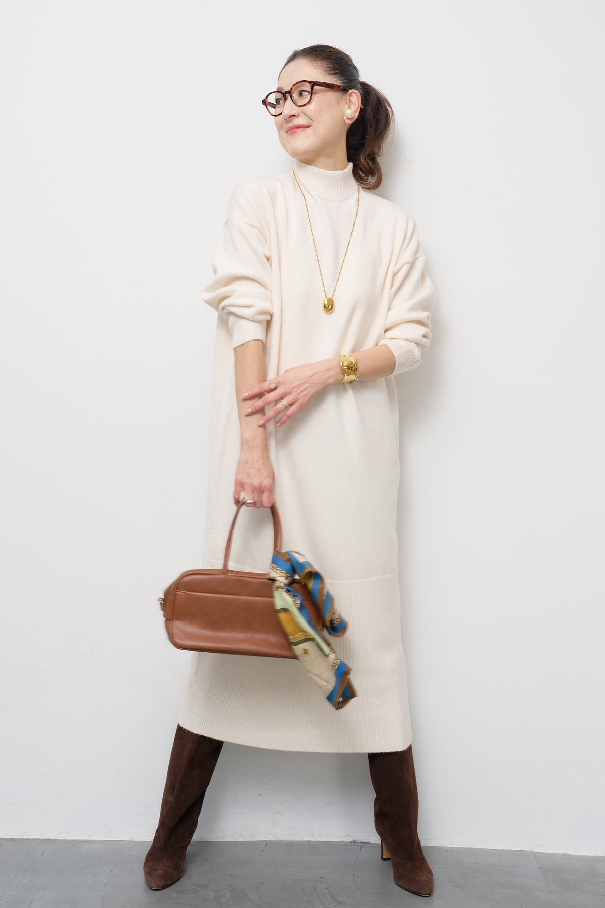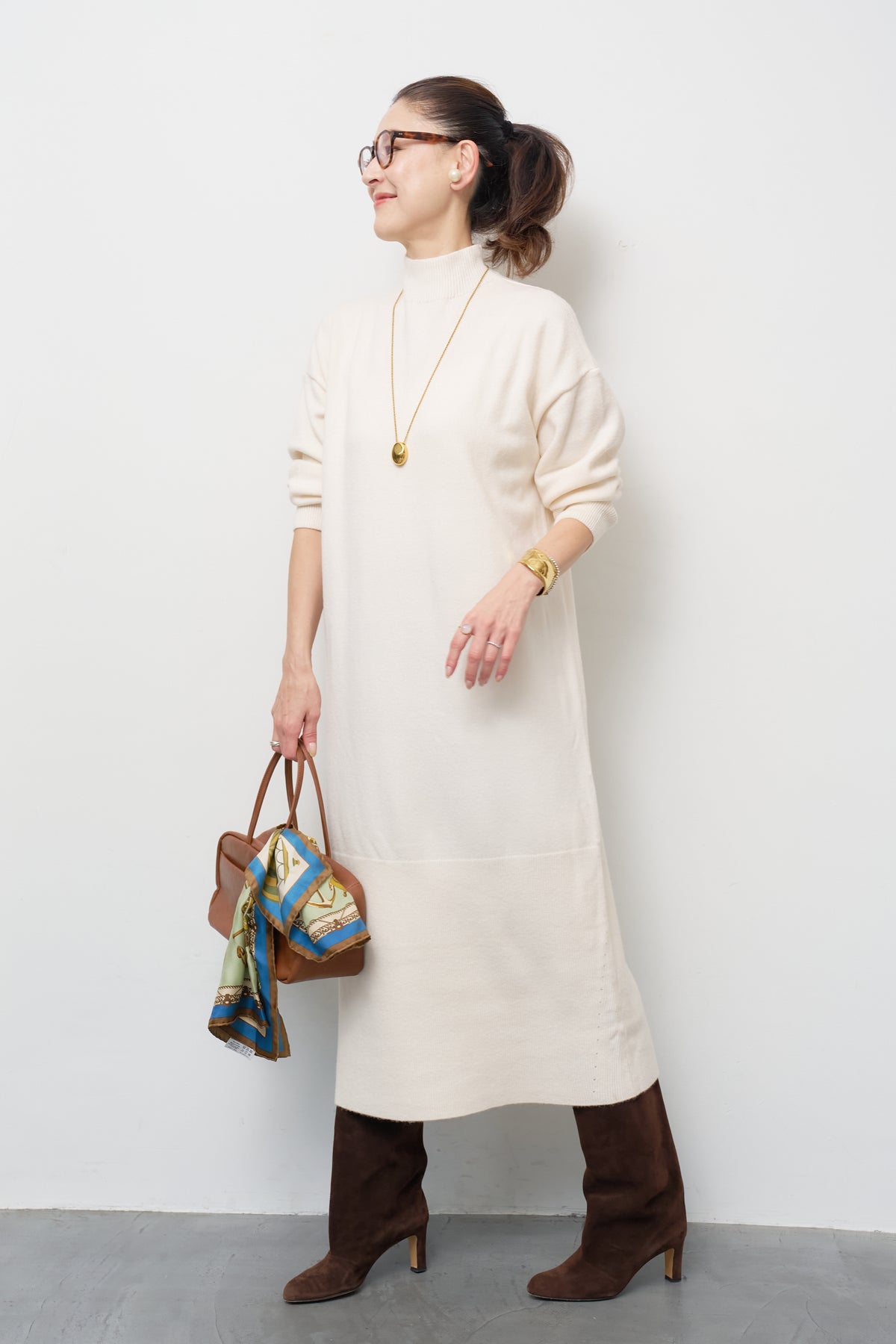 モックネックニットワンピース