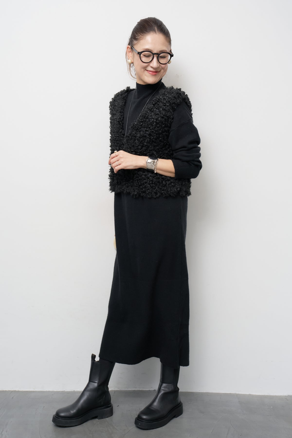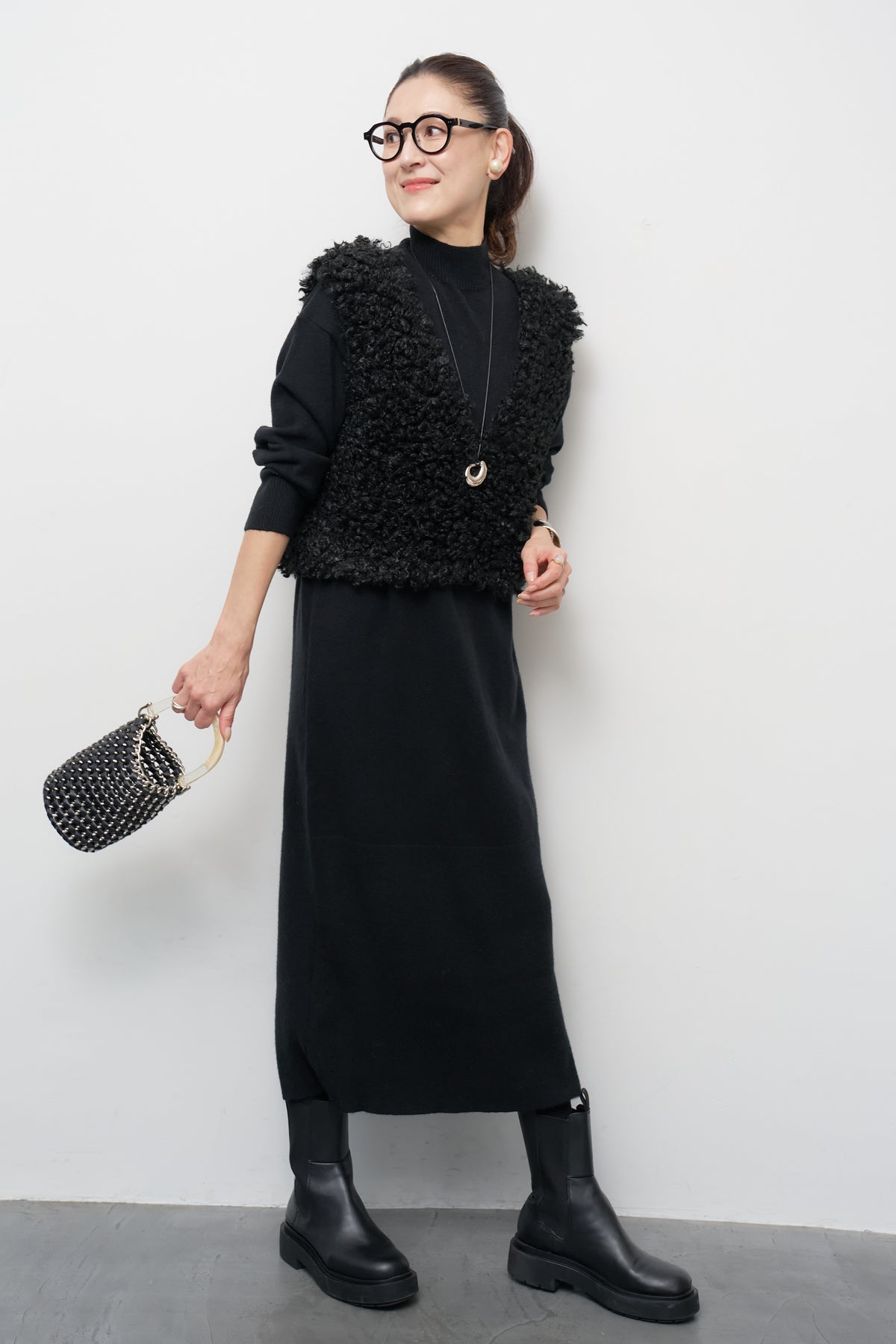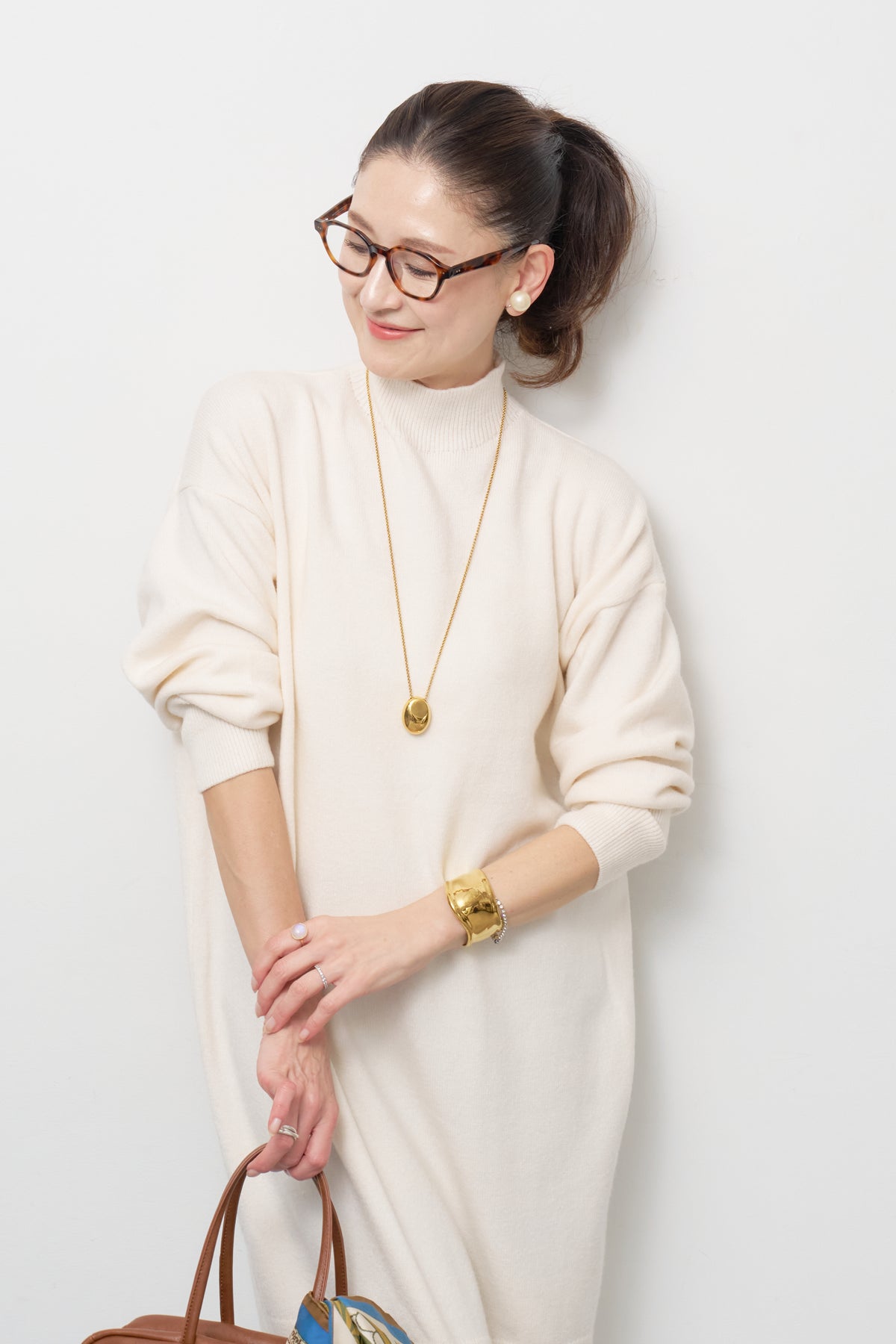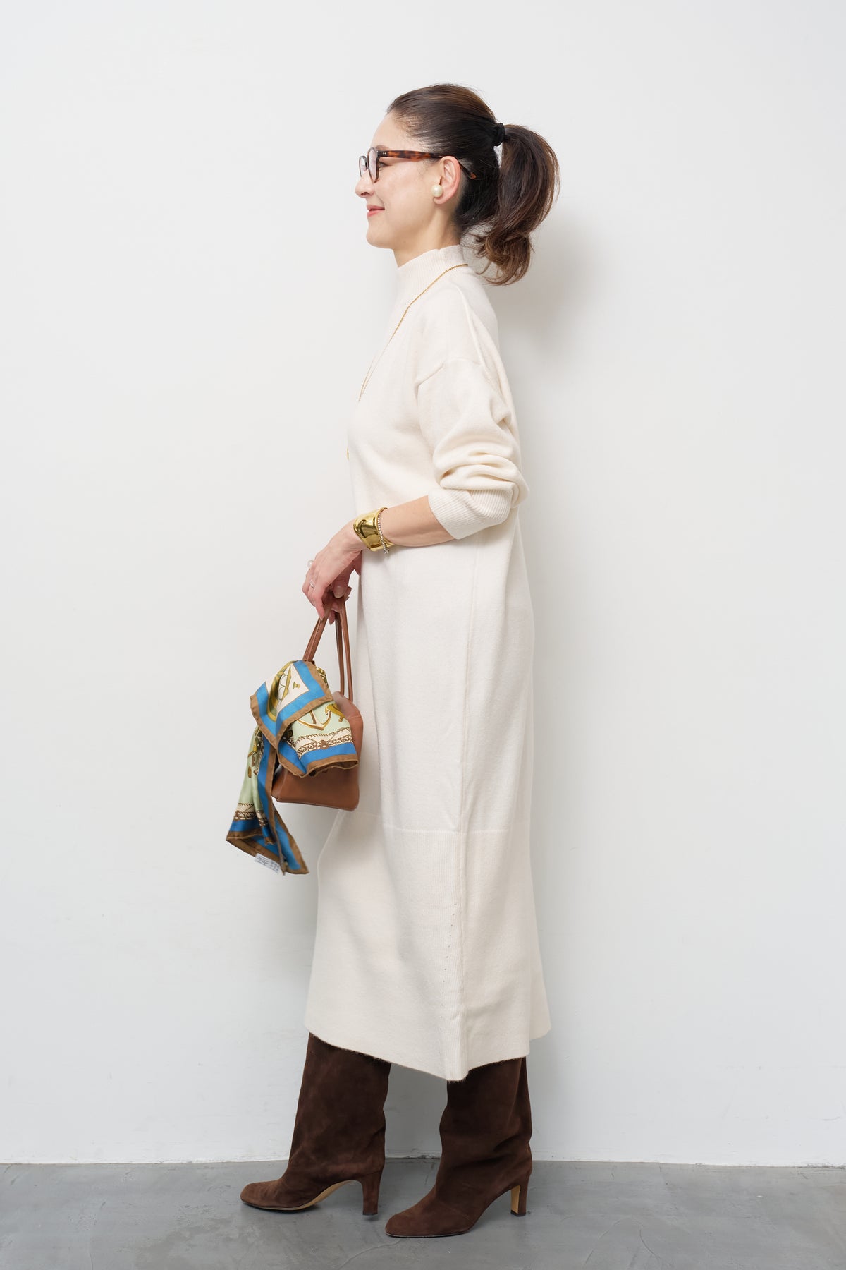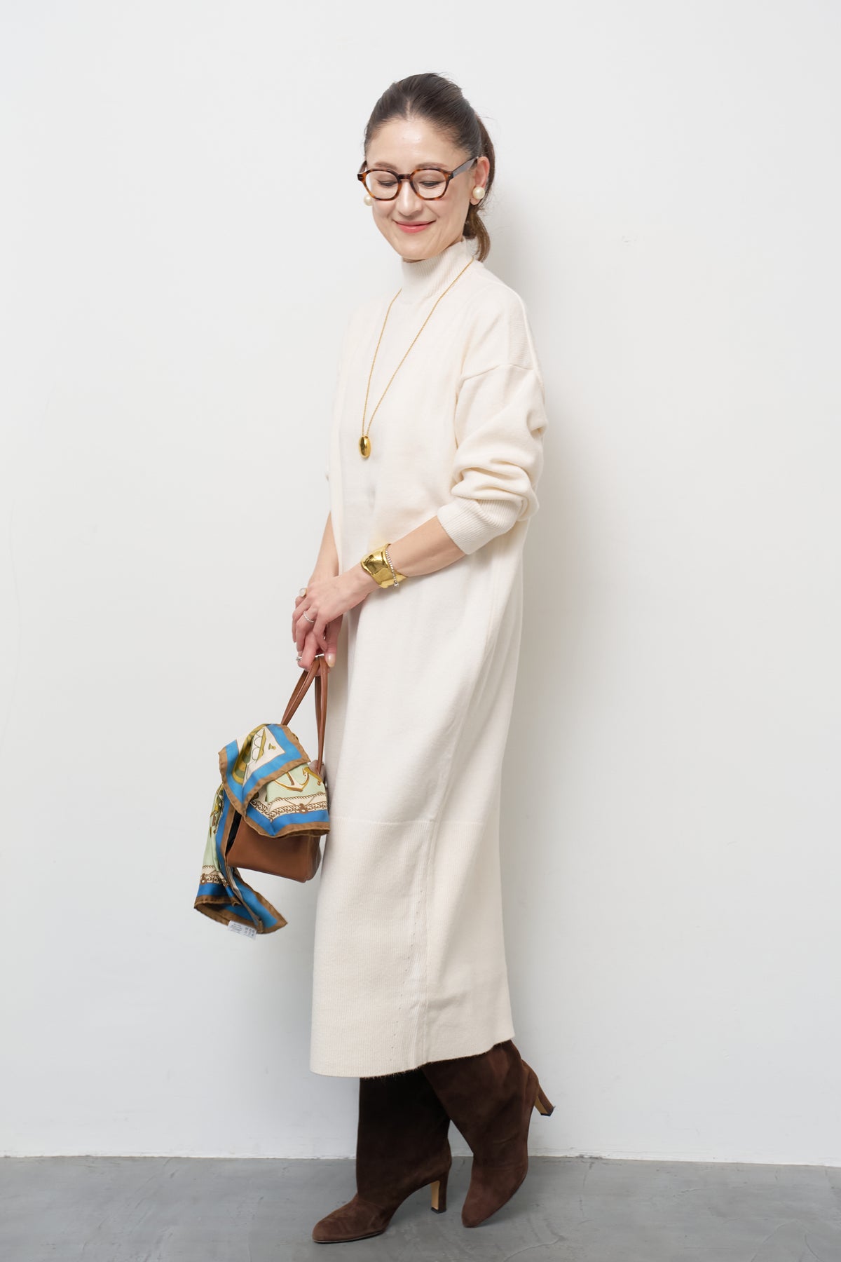 モックネックニットワンピース