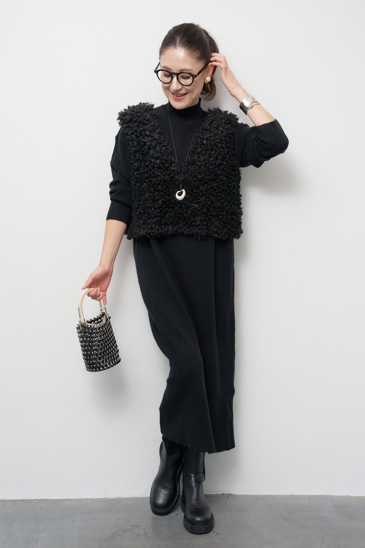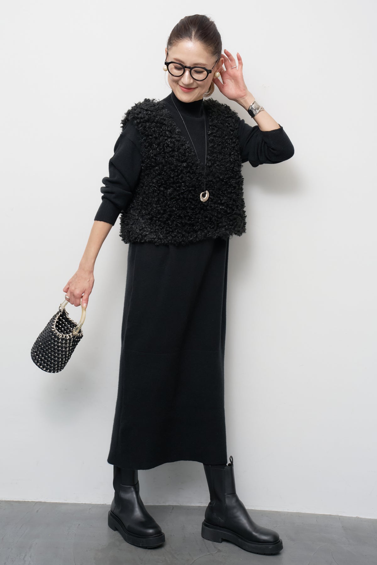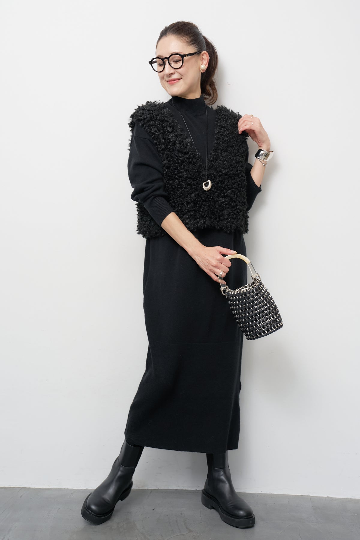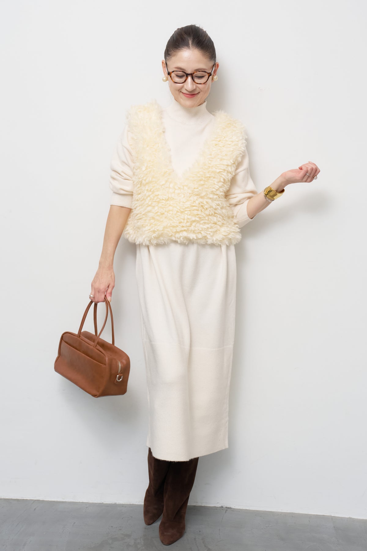 モックネックニットワンピース