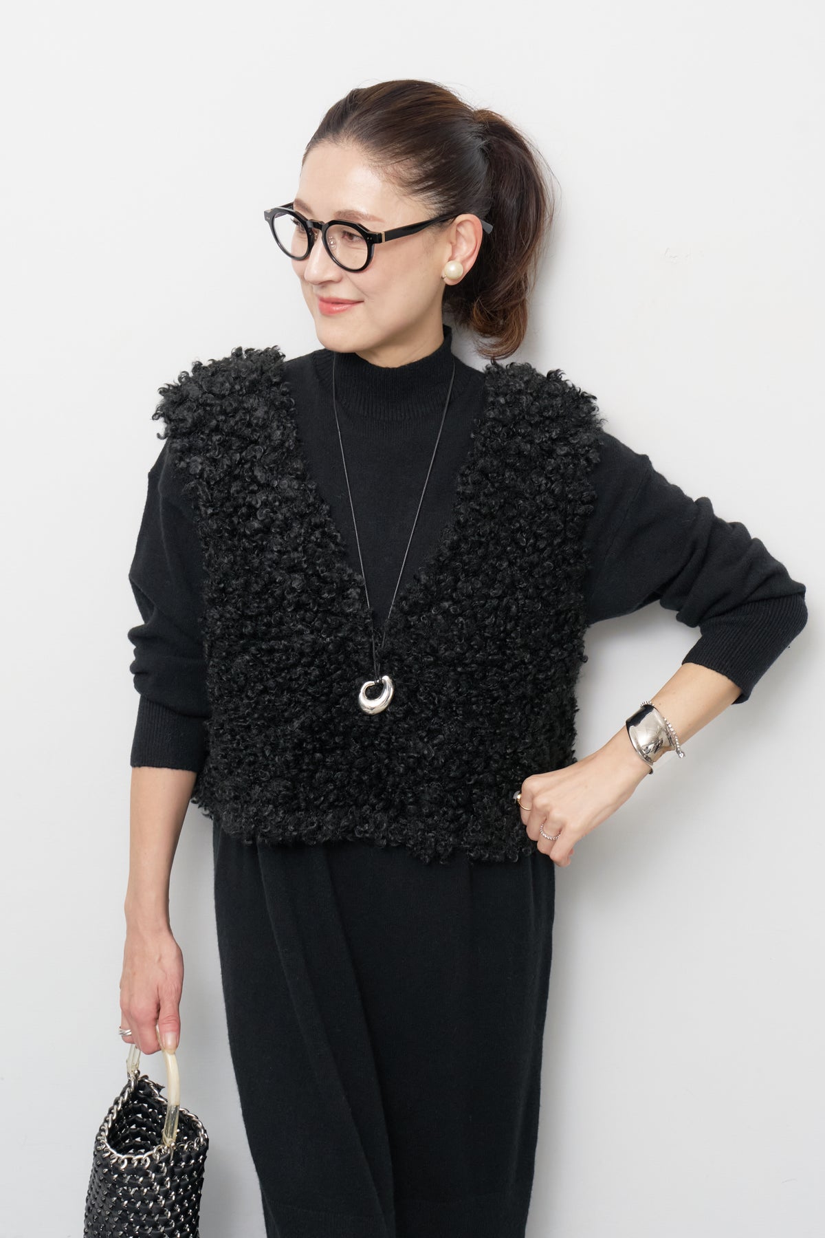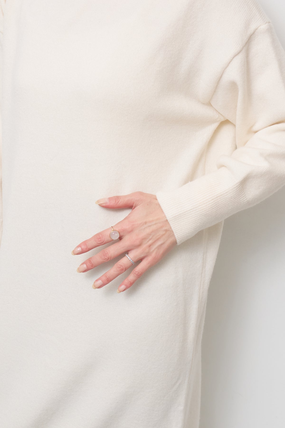 上品なミニマルデザインが魅力の、モックネックニットワンピース。柔らかく包み込むようなニット素材で仕立て、シンプルながらも洗練された大人の佇まいを叶えます。首元はほどよい高さのモックネックで、窮屈感のない優しいフィット感。肩のラインを落としたリラックスシルエットは、体のラインを拾いすぎず、すっきりと着こなせます。ポイントは、裾にかけてさりげなく表情を変える編地切替。縦のラインを強調し、シンプルな中にも奥行きを感じるデザインです。ブーツとの相性も抜群で、パンプスを合わせれば一段とエレガントに。