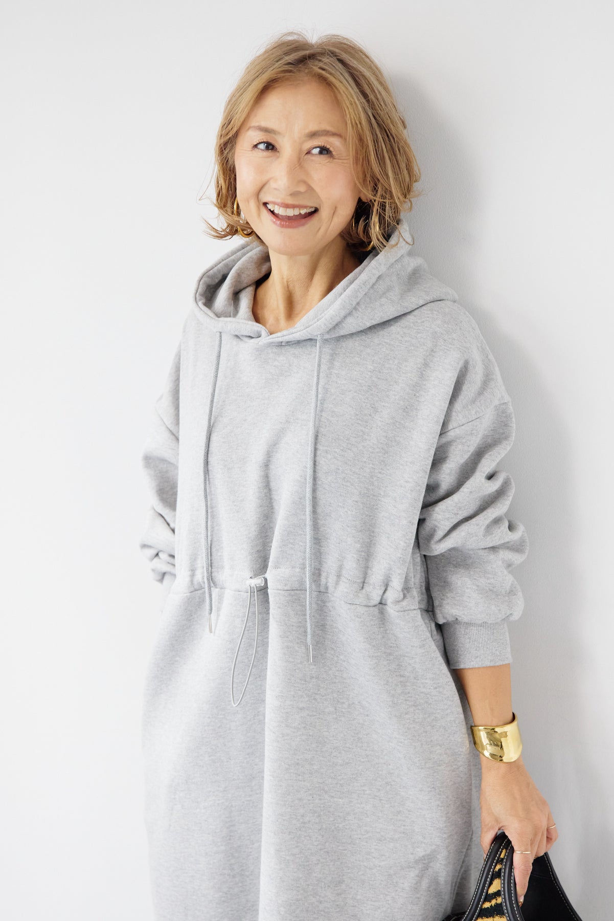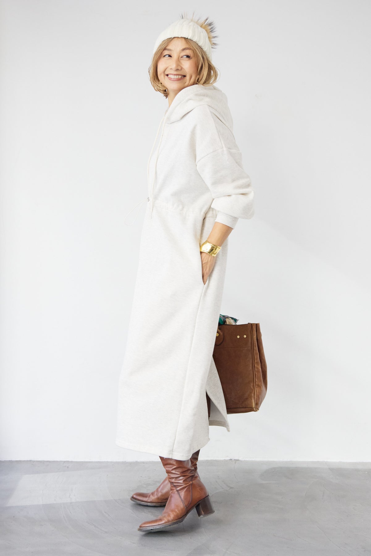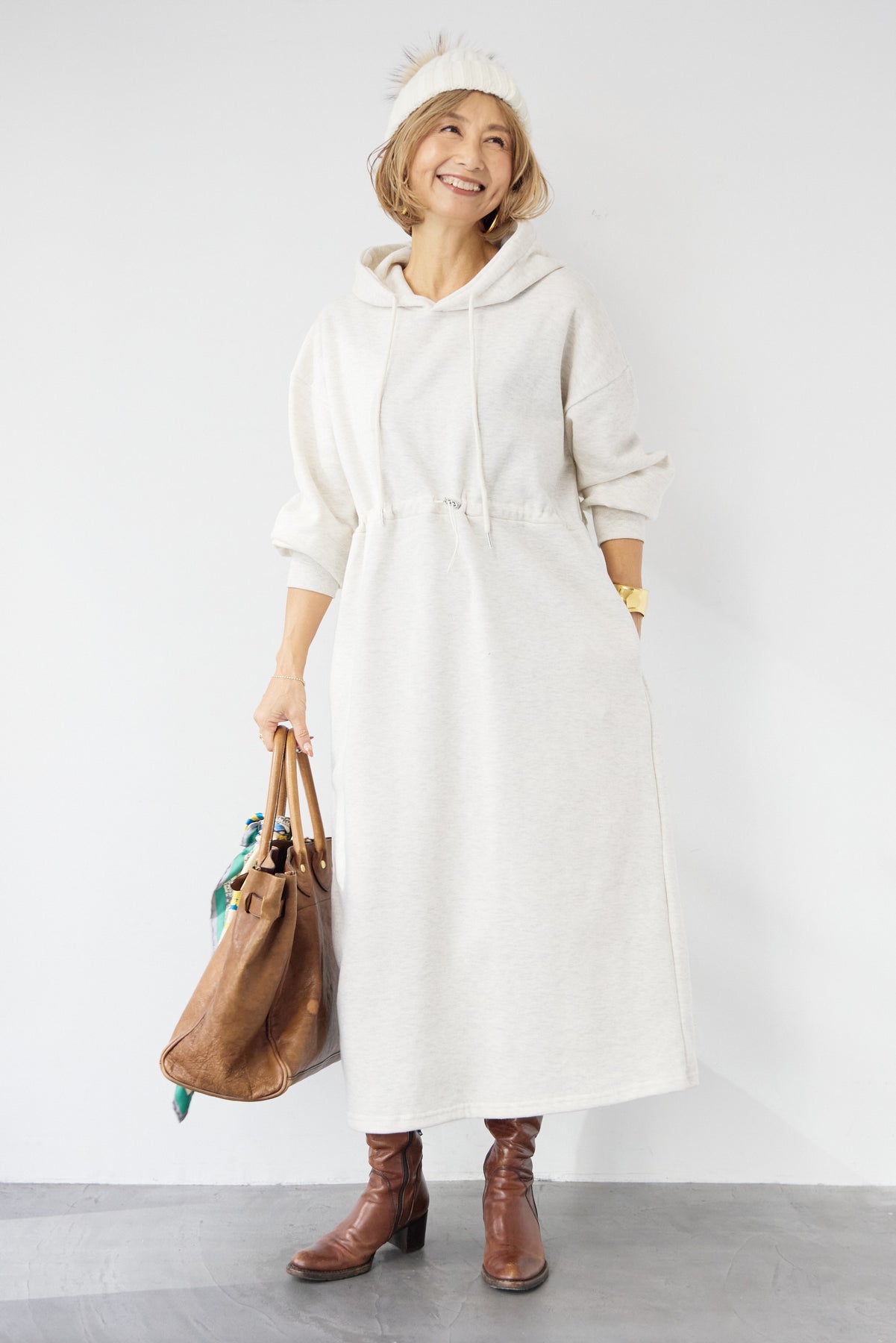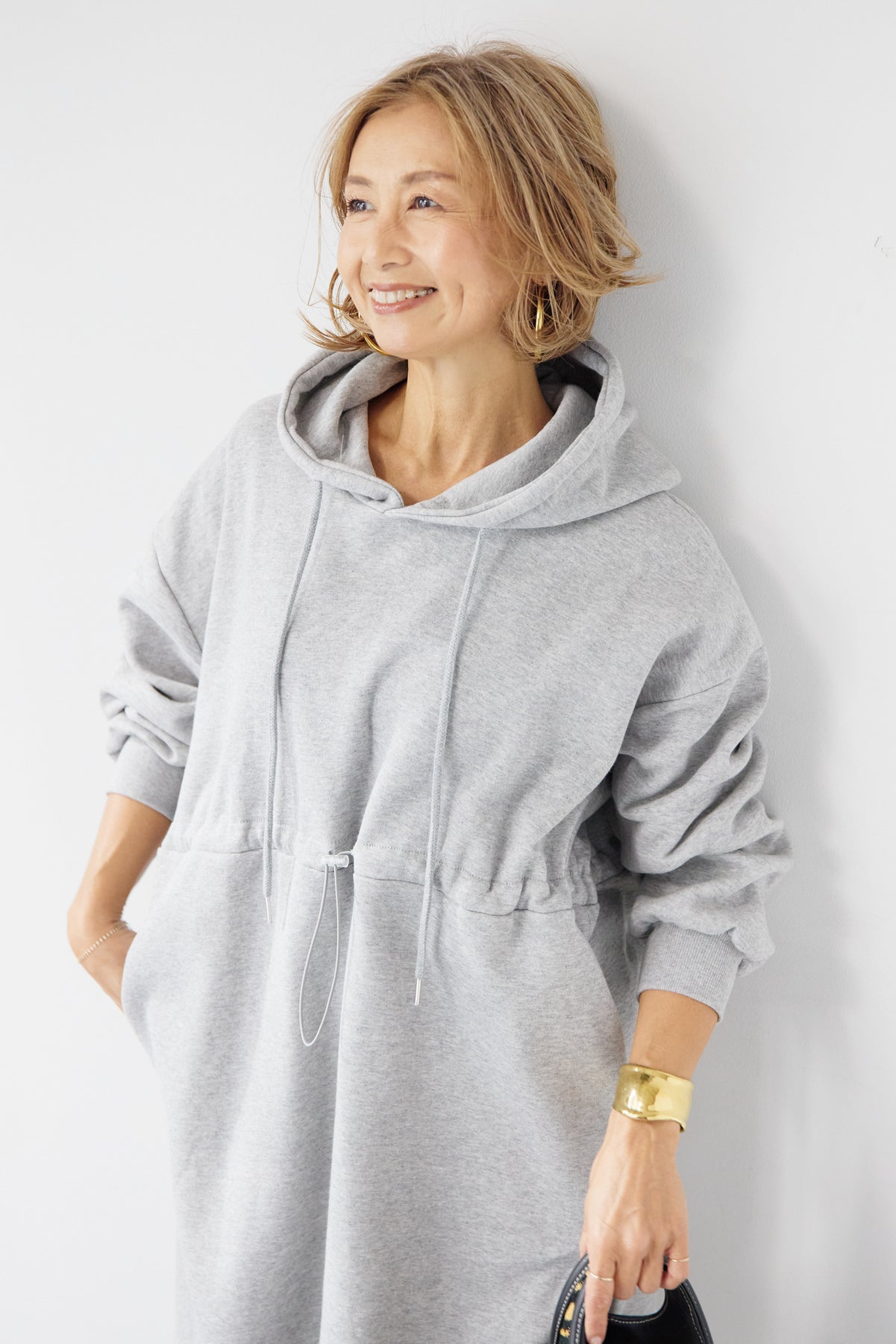 シンプルでありながら、リラックス感とスタイルを兼ね備えた裏起毛ドロストロングフーディーワンピース。肌触りが良く、暖かさが感じられる裏起毛素材を使用し、季節感を演出。ウエスト部分にはドロスト仕様を取り入れ、着る人のシルエットに合わせて調整可能なデザインです。柔らかなフードとドロストコードで、カジュアルながらもこなれ感を演出。どんなシーンにも合わせやすい、エフォートレスな一着です。