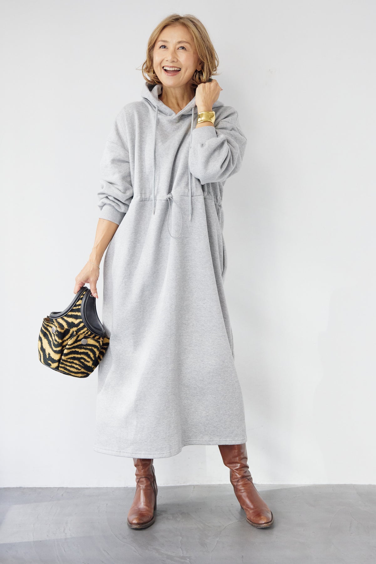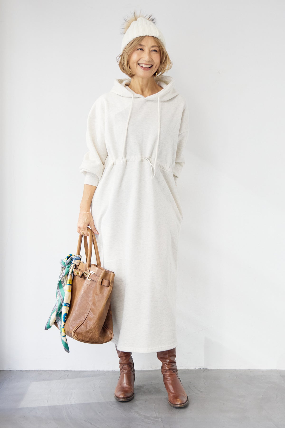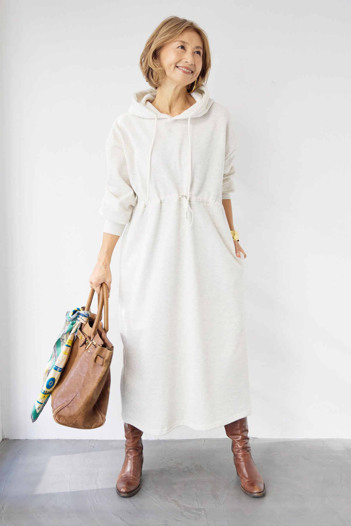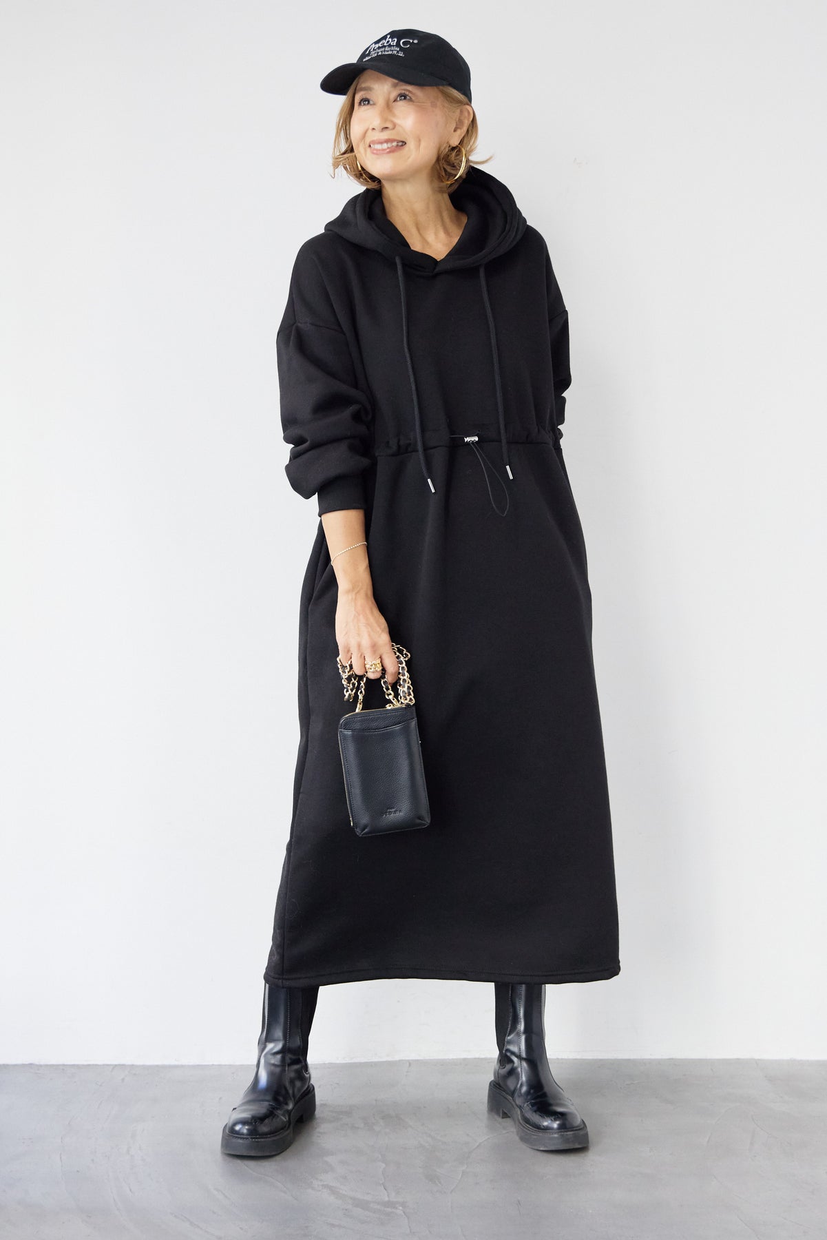 シンプルでありながら、リラックス感とスタイルを兼ね備えた裏起毛ドロストロングフーディーワンピース。肌触りが良く、暖かさが感じられる裏起毛素材を使用し、季節感を演出。ウエスト部分にはドロスト仕様を取り入れ、着る人のシルエットに合わせて調整可能なデザインです。柔らかなフードとドロストコードで、カジュアルながらもこなれ感を演出。どんなシーンにも合わせやすい、エフォートレスな一着です。
