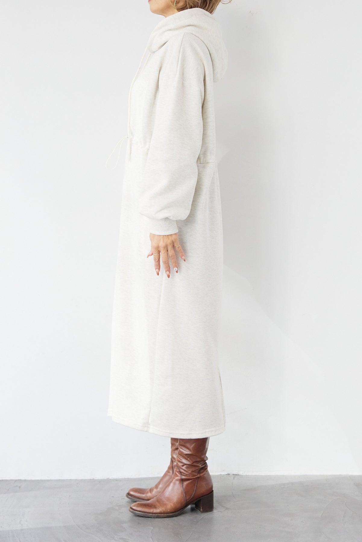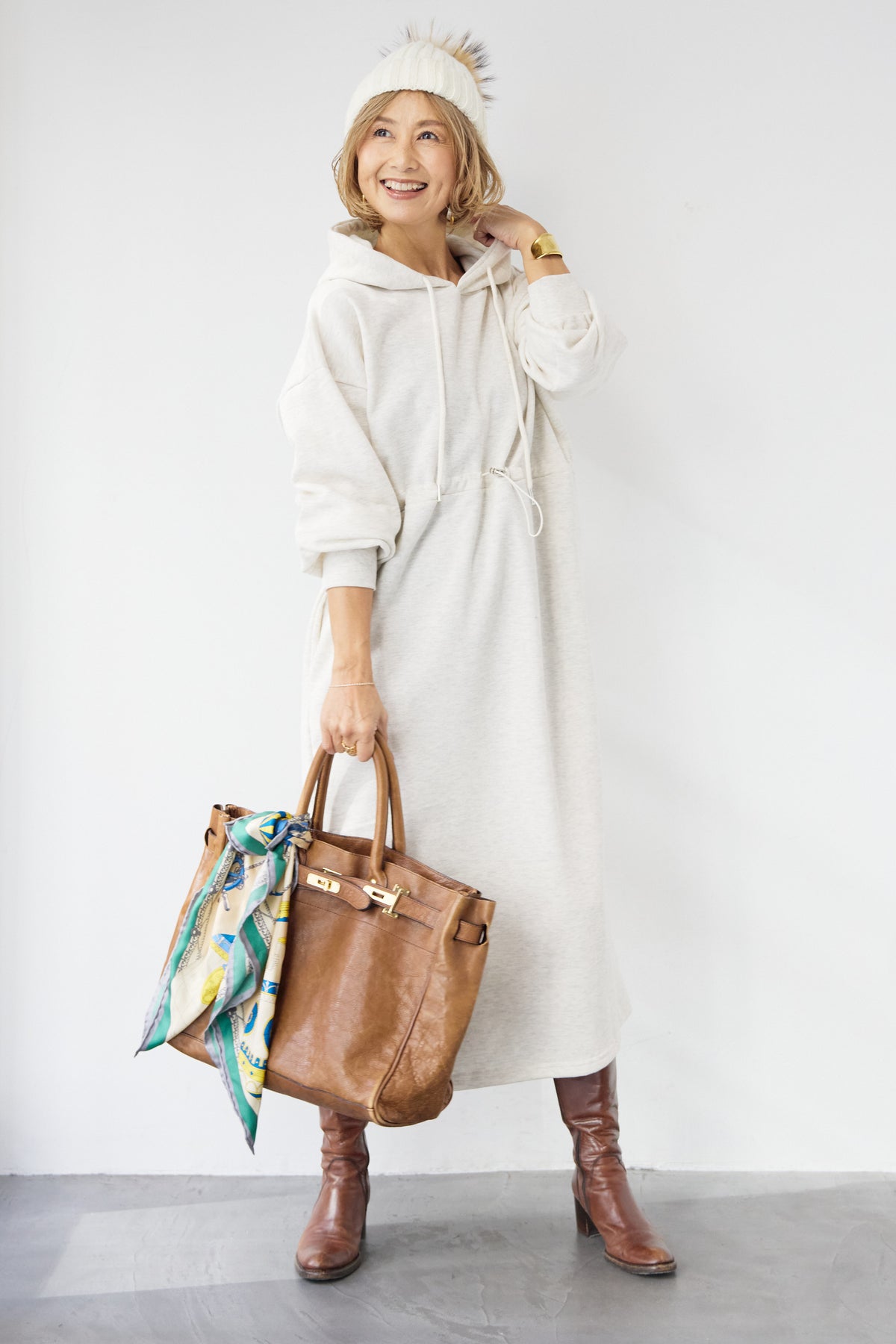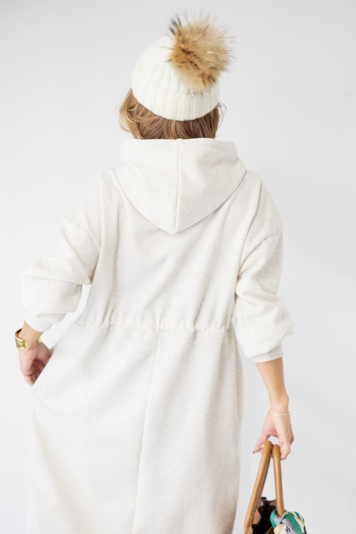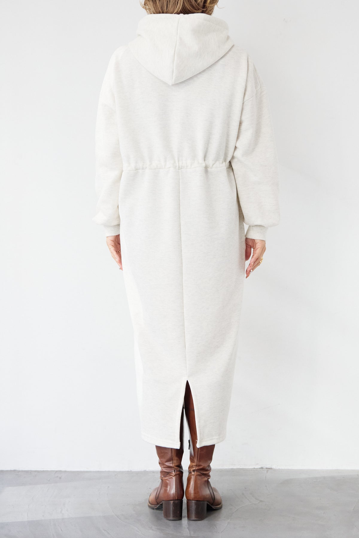 シンプルでありながら、リラックス感とスタイルを兼ね備えた裏起毛ドロストロングフーディーワンピース。肌触りが良く、暖かさが感じられる裏起毛素材を使用し、季節感を演出。ウエスト部分にはドロスト仕様を取り入れ、着る人のシルエットに合わせて調整可能なデザインです。柔らかなフードとドロストコードで、カジュアルながらもこなれ感を演出。どんなシーンにも合わせやすい、エフォートレスな一着です。