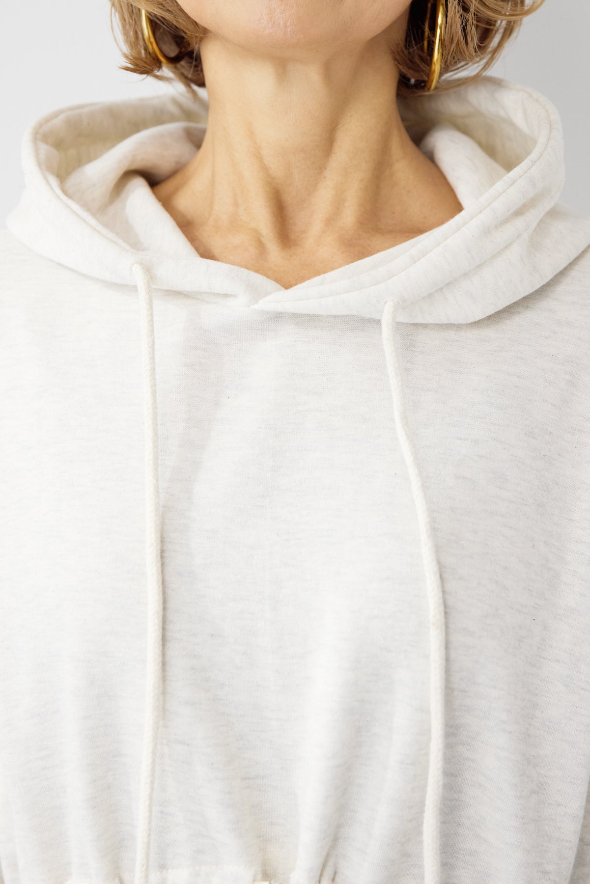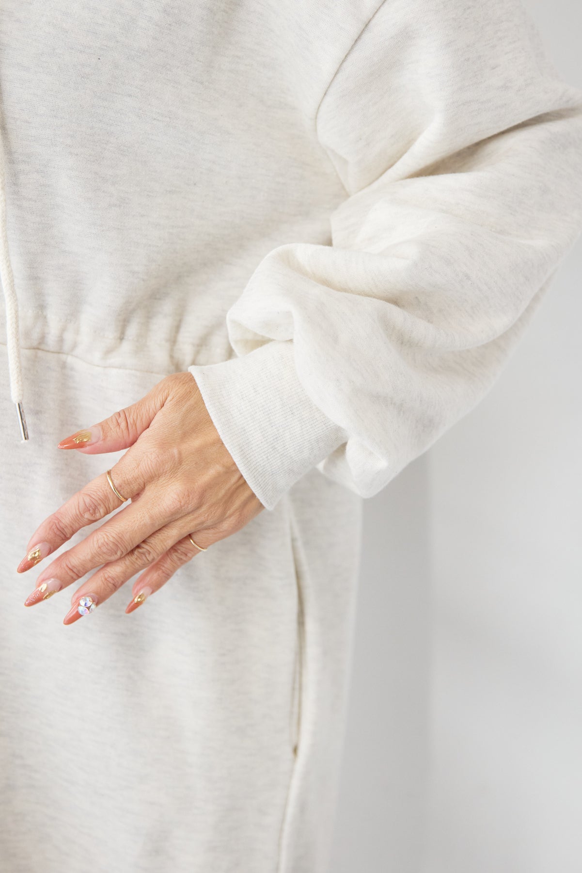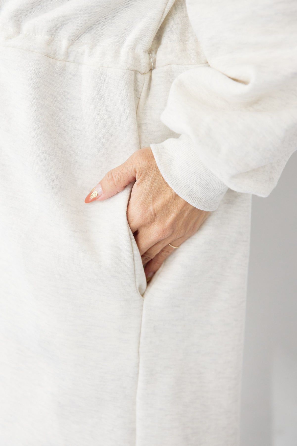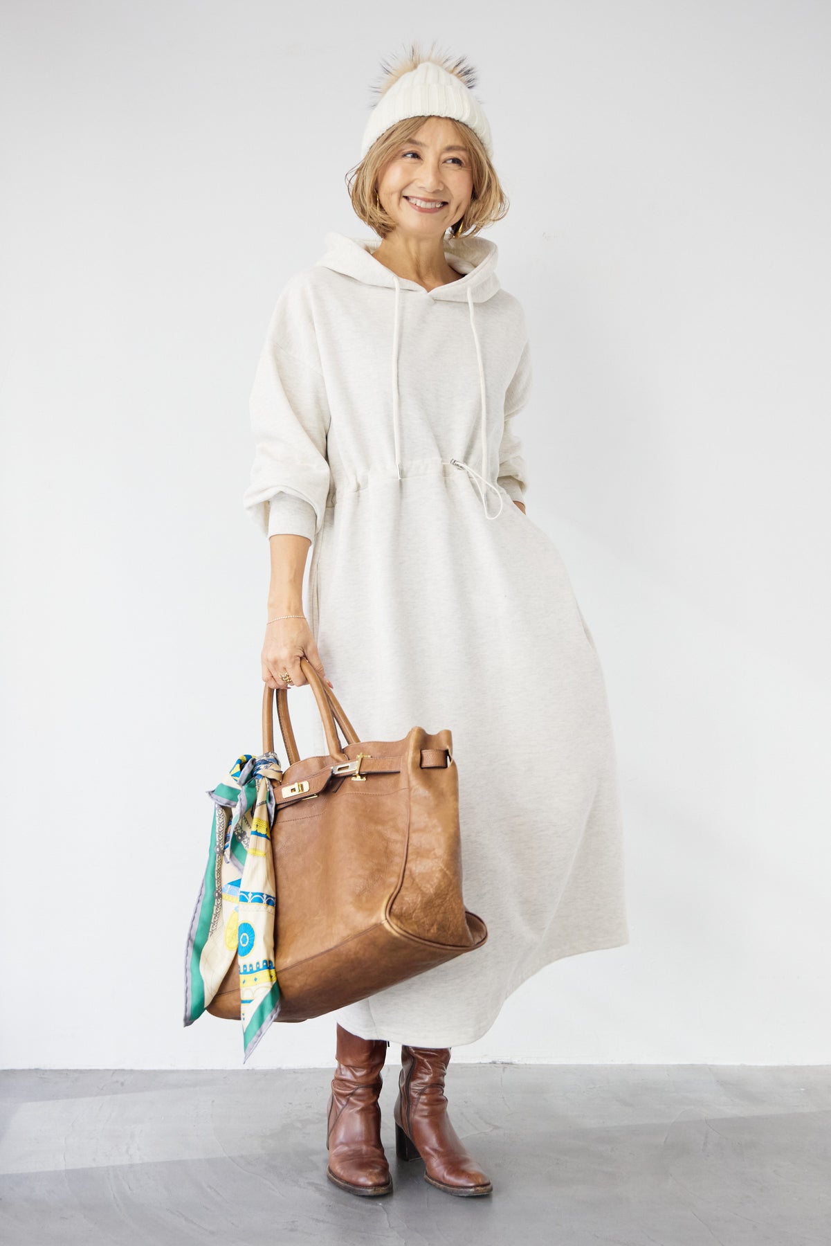 シンプルでありながら、リラックス感とスタイルを兼ね備えた裏起毛ドロストロングフーディーワンピース。肌触りが良く、暖かさが感じられる裏起毛素材を使用し、季節感を演出。ウエスト部分にはドロスト仕様を取り入れ、着る人のシルエットに合わせて調整可能なデザインです。柔らかなフードとドロストコードで、カジュアルながらもこなれ感を演出。どんなシーンにも合わせやすい、エフォートレスな一着です。