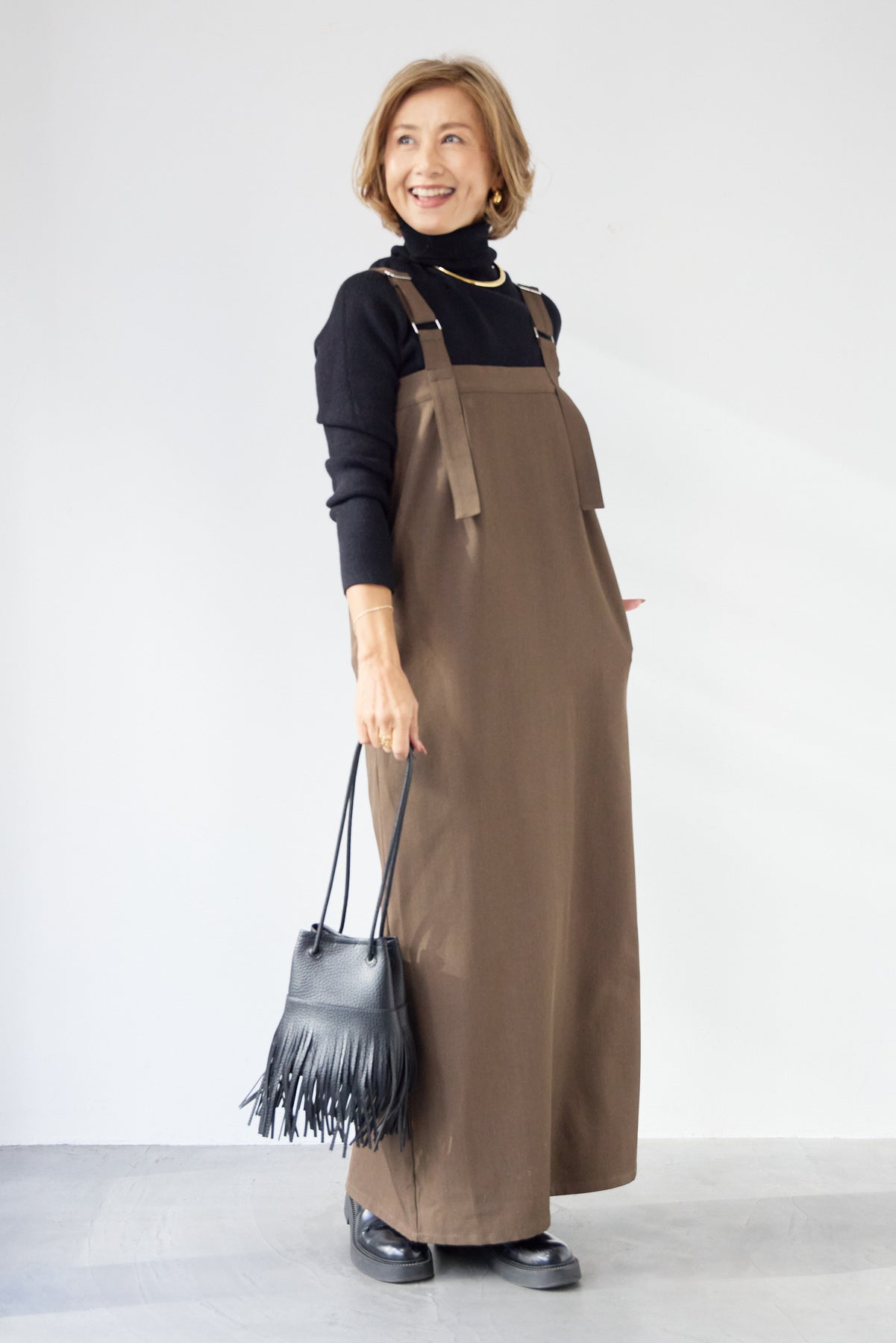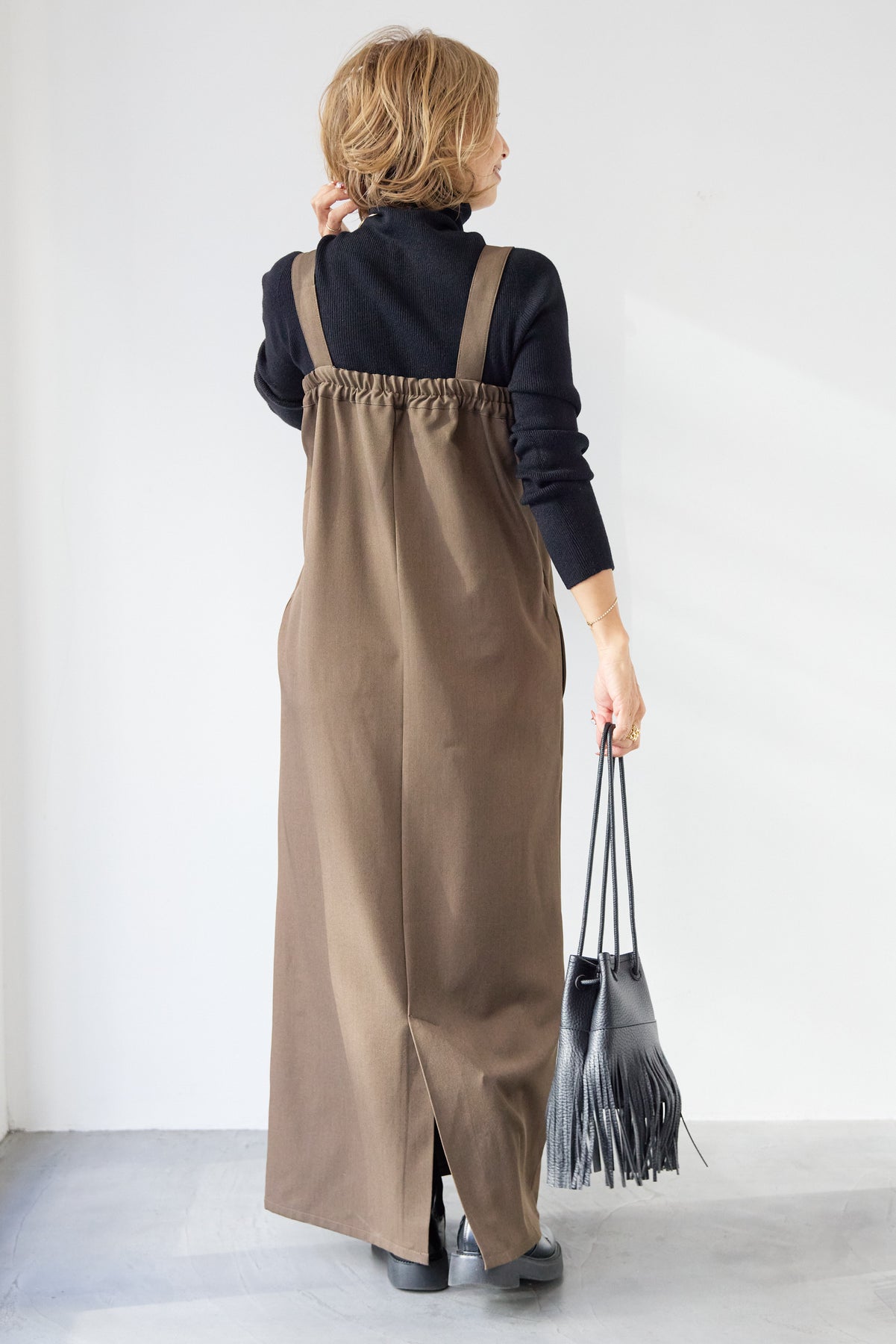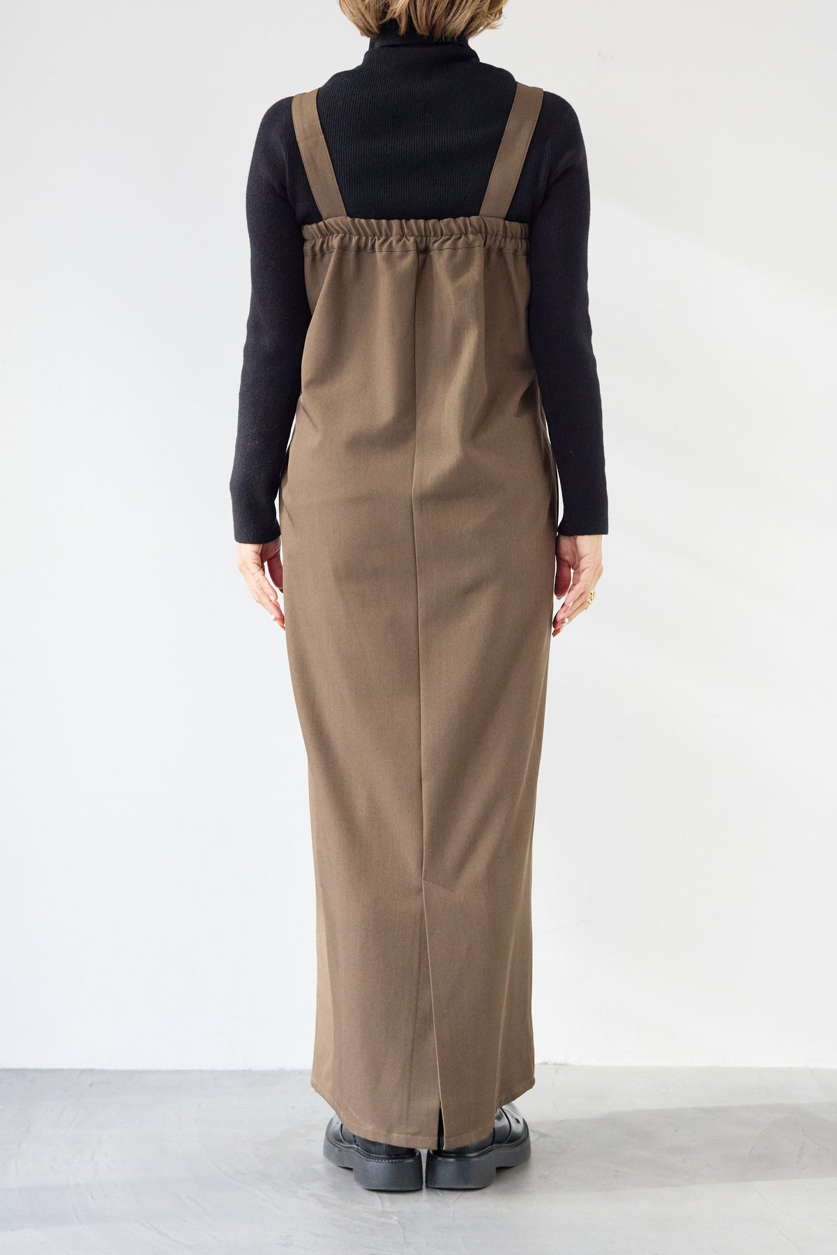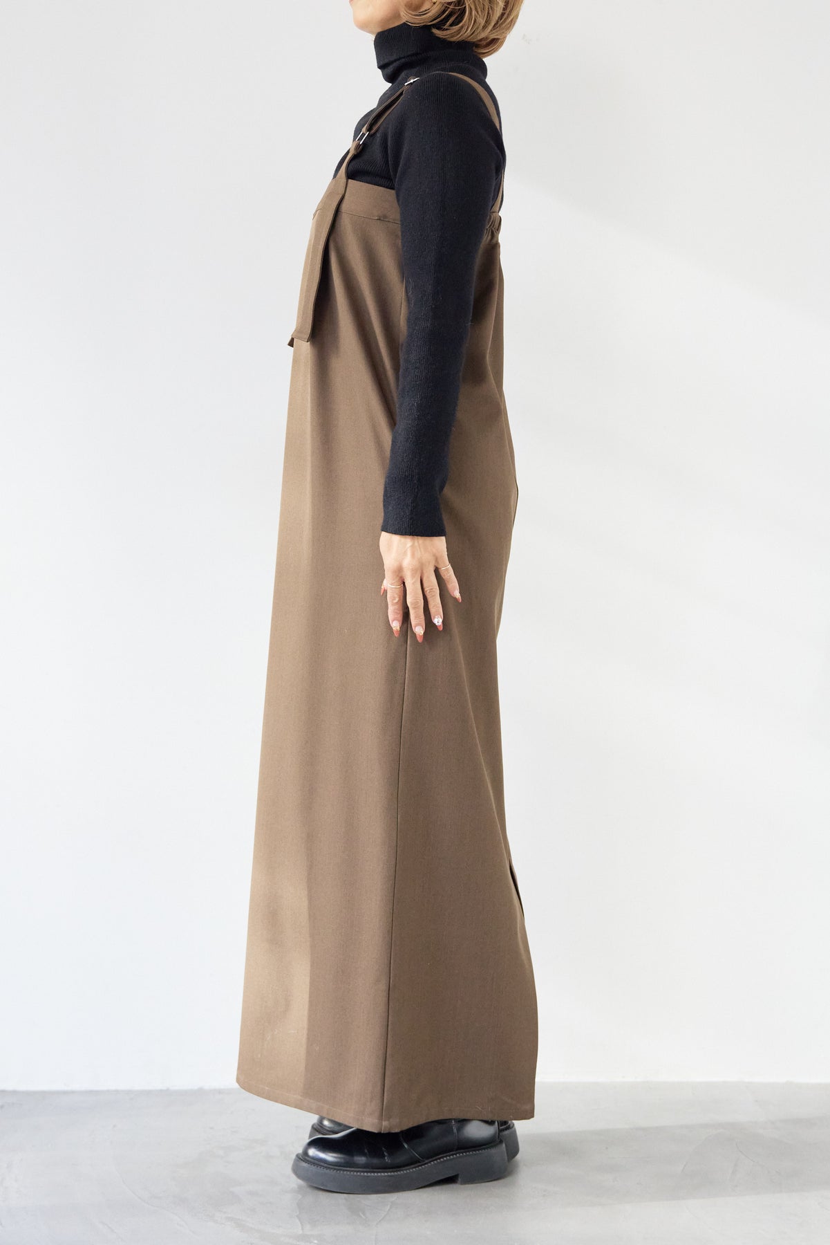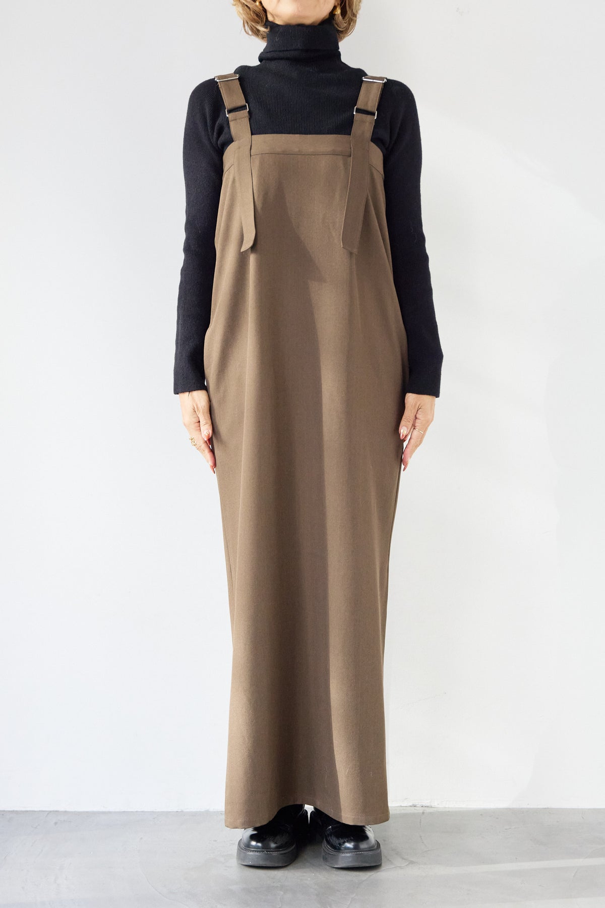 [SET]ホールガーメントタートルリブニット+ベルトストラップジャンスカ(2set)