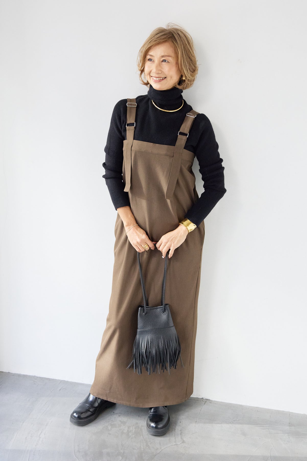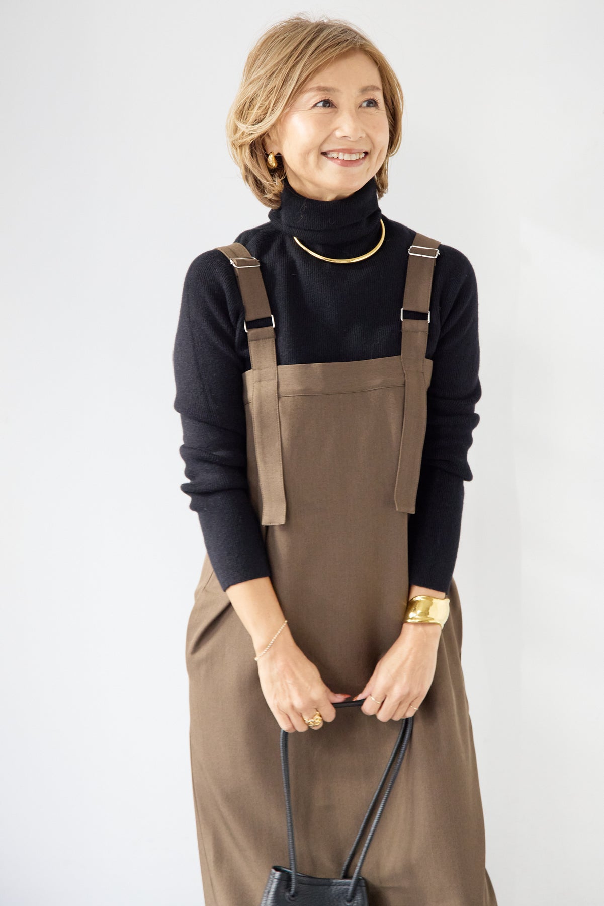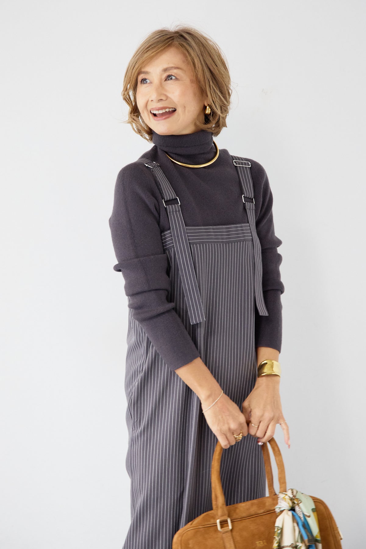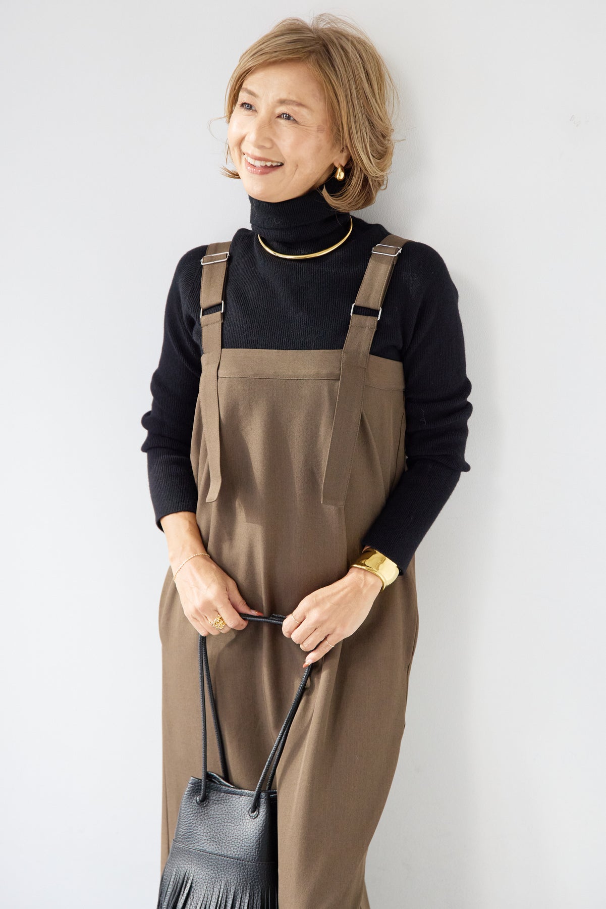 [SET]ホールガーメントタートルリブニット+ベルトストラップジャンスカ(2set)