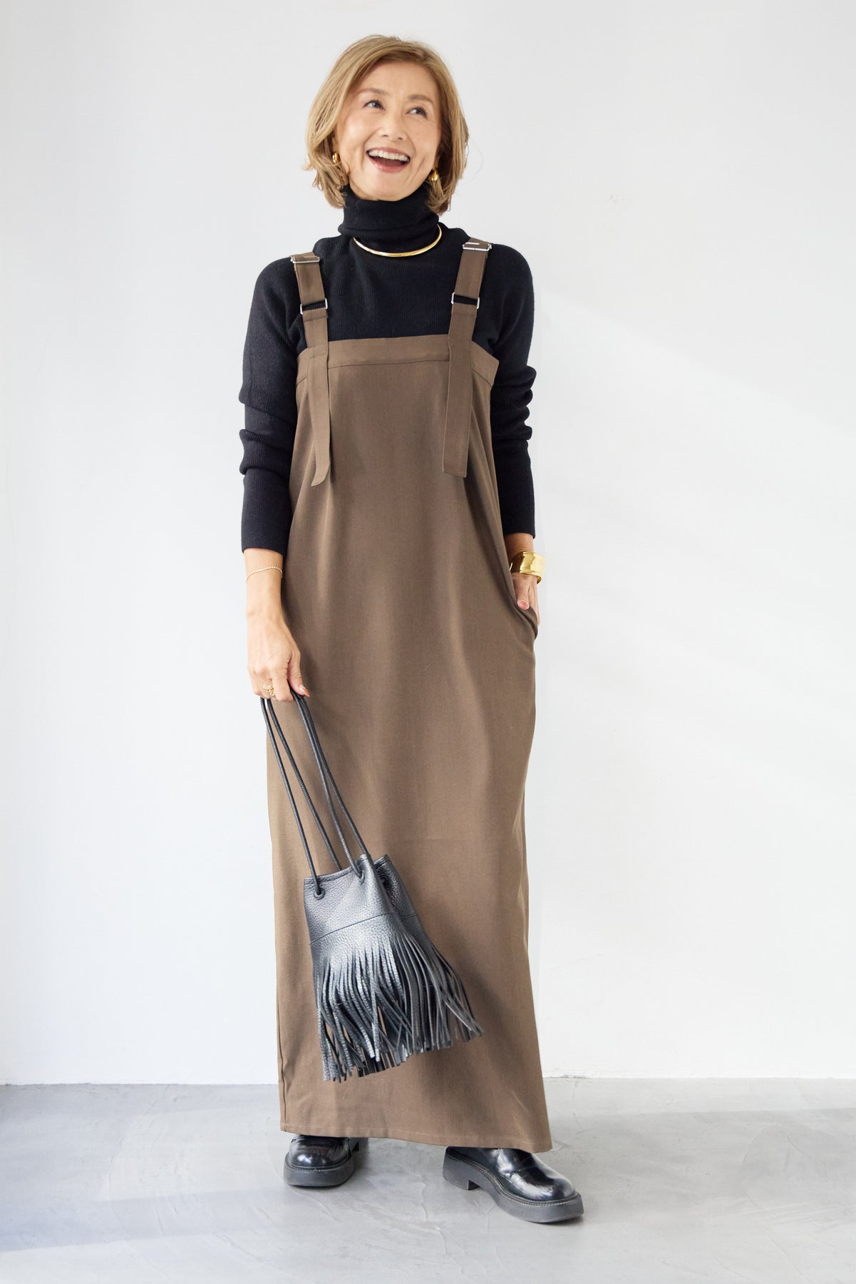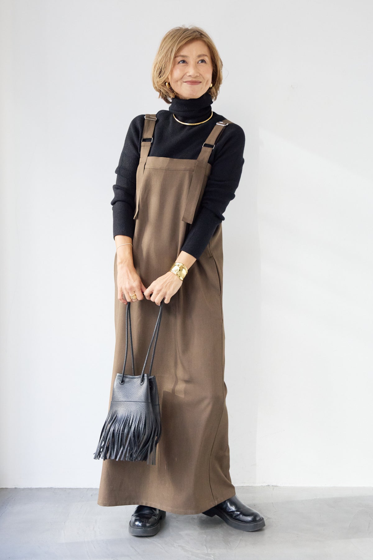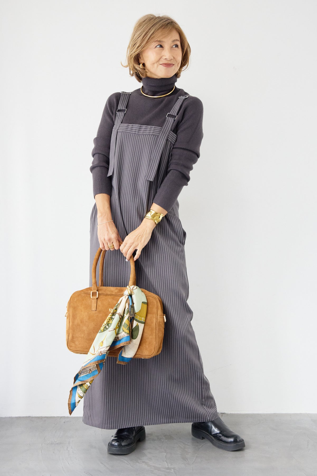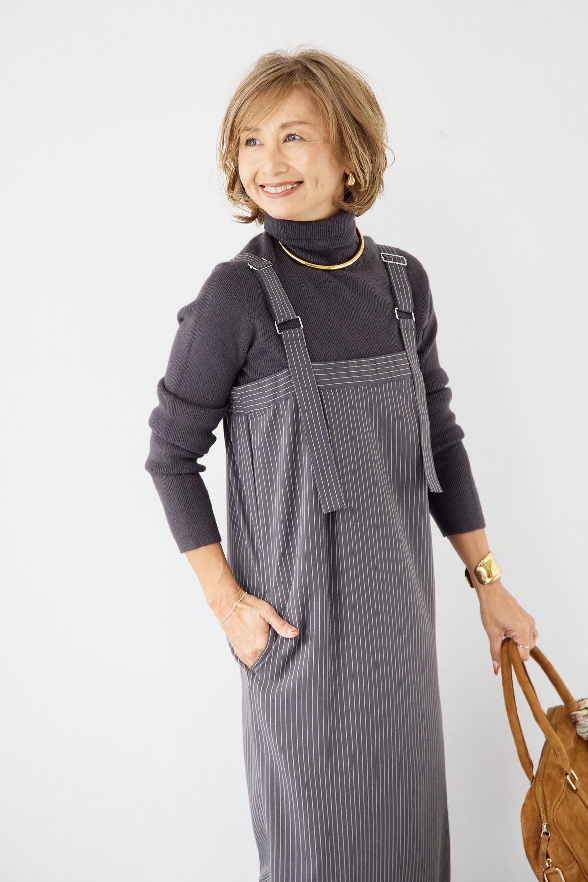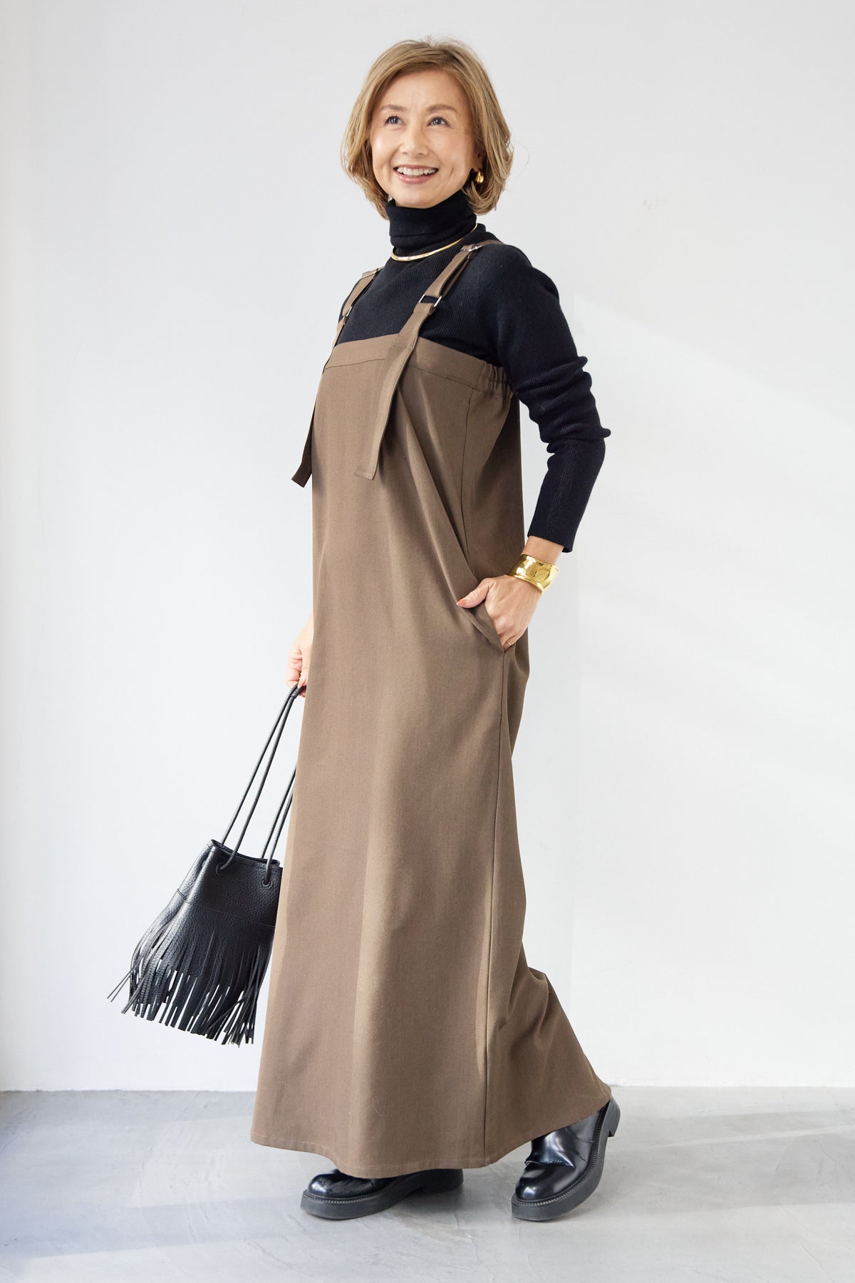 [SET]ホールガーメントタートルリブニット+ベルトストラップジャンスカ(2set)
