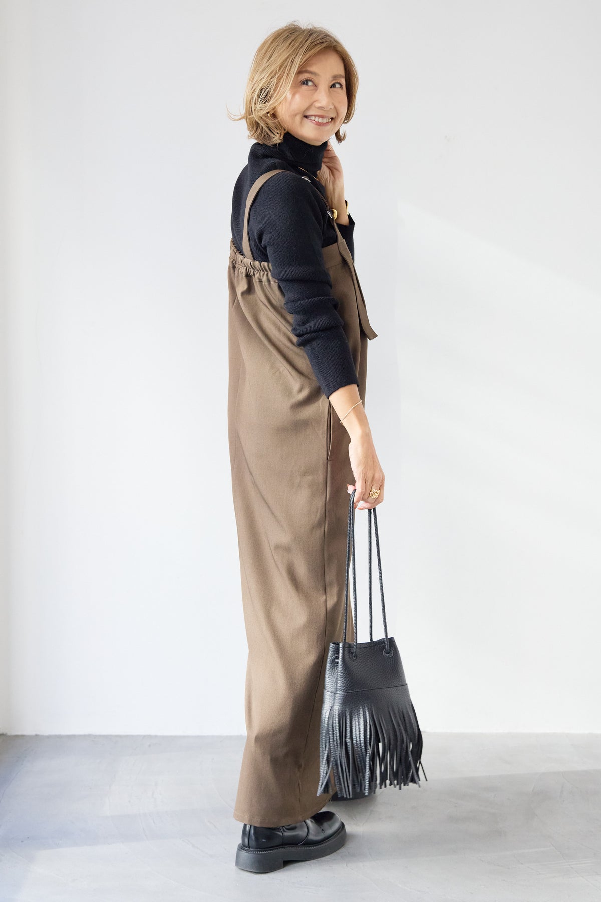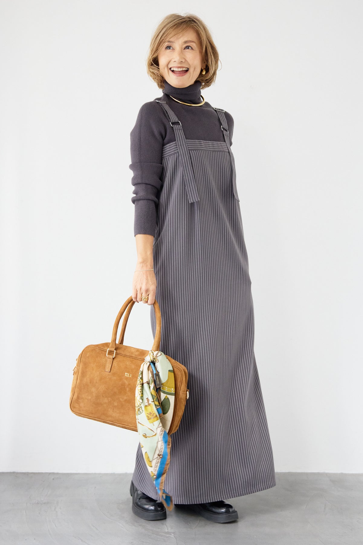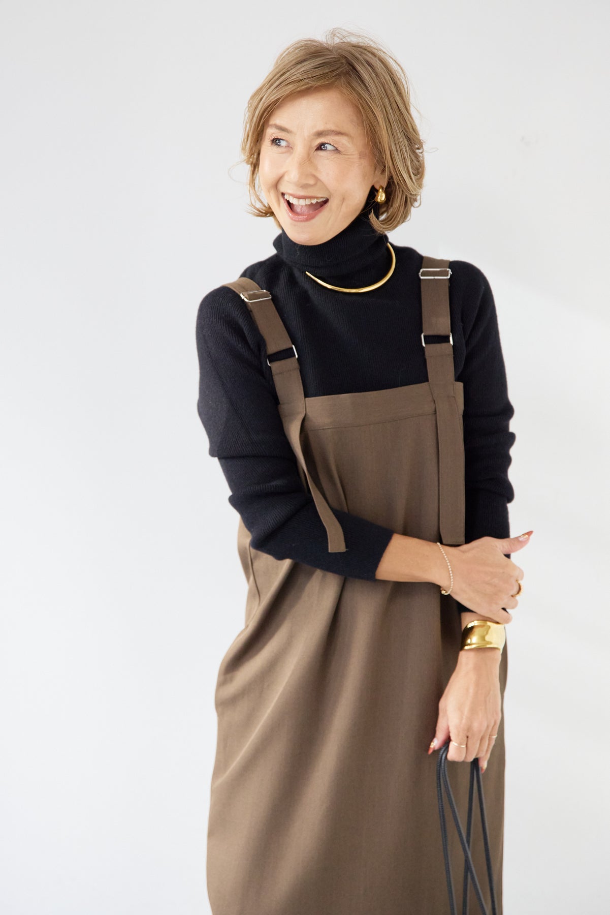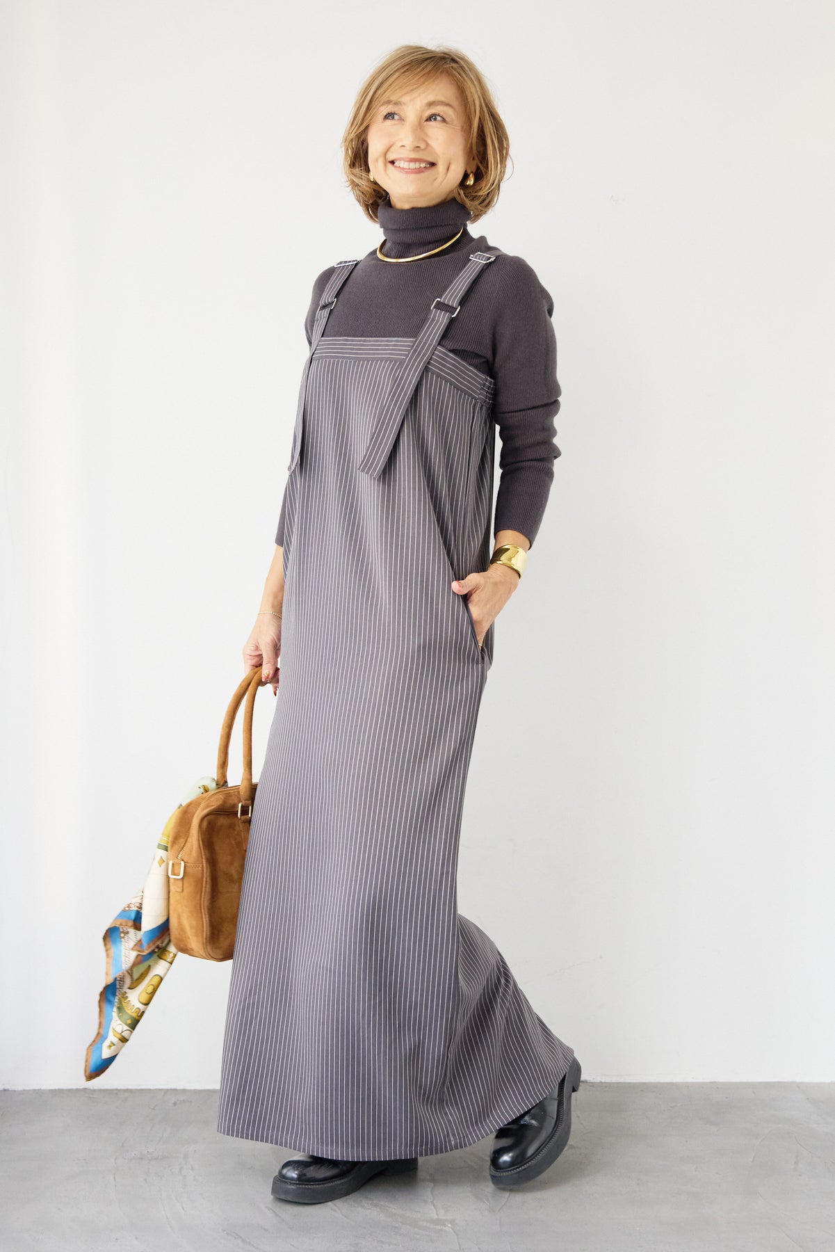 [SET]ホールガーメントタートルリブニット+ベルトストラップジャンスカ(2set)
