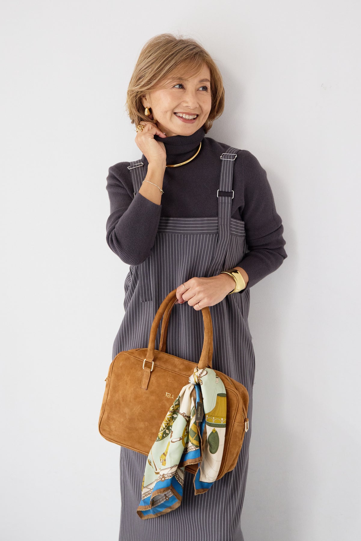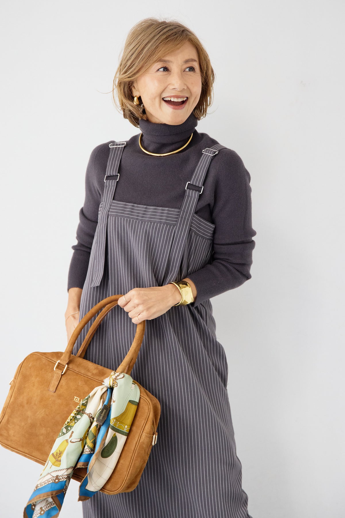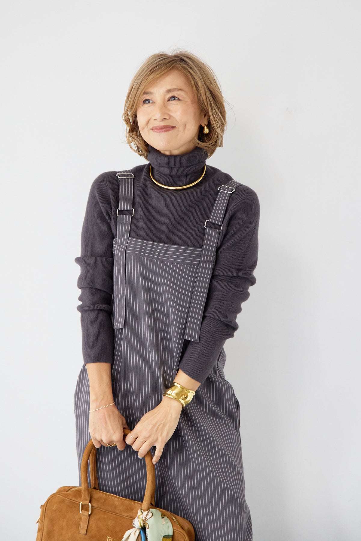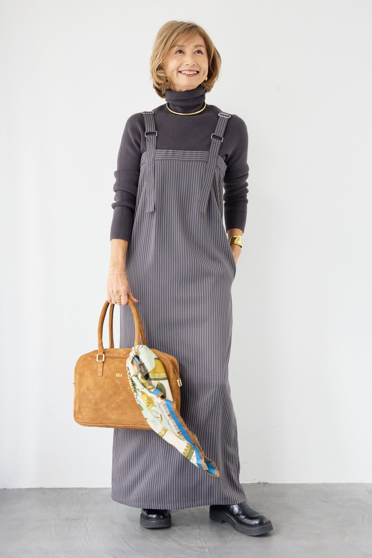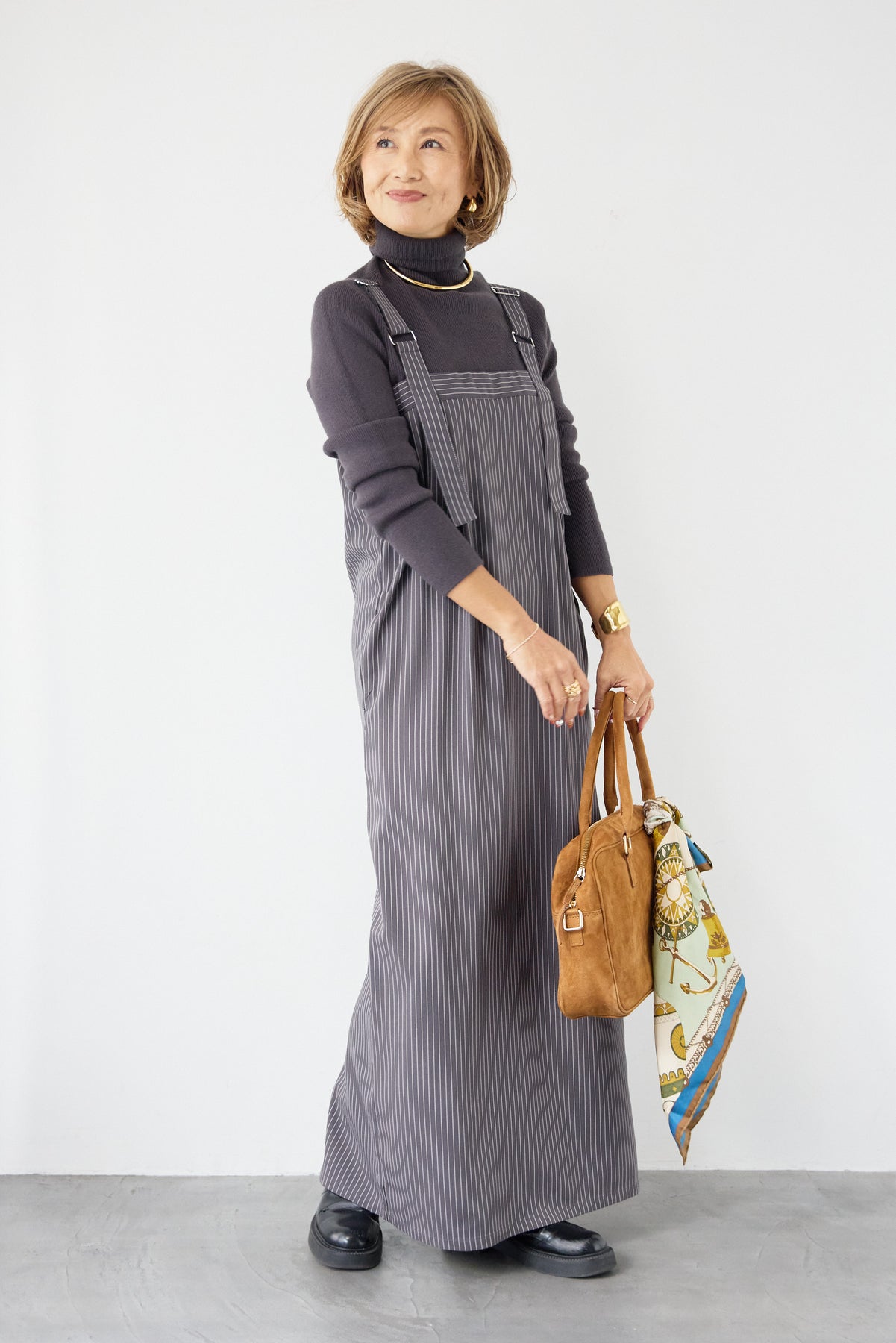 [SET]ホールガーメントタートルリブニット+ベルトストラップジャンスカ(2set)