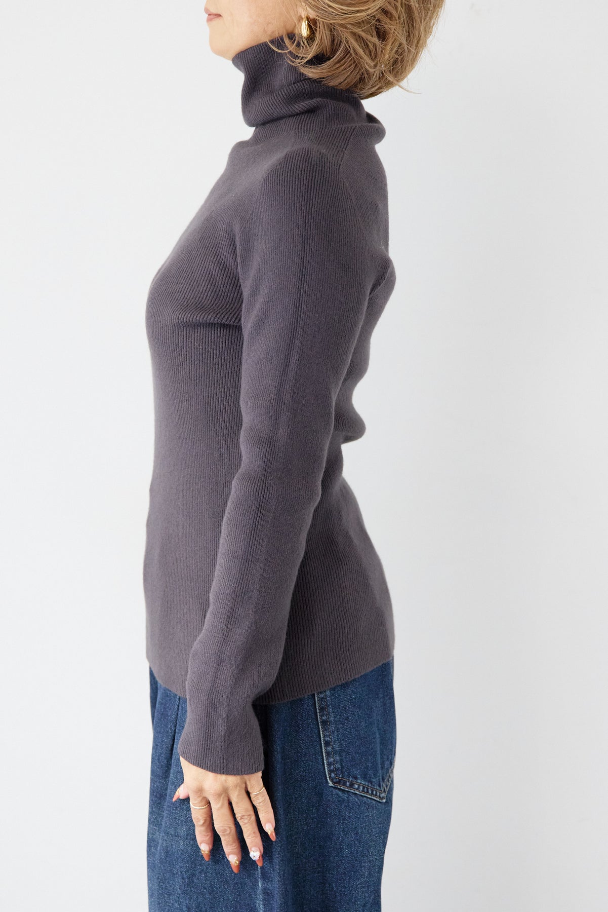 ホールガーメントタートルリブニット