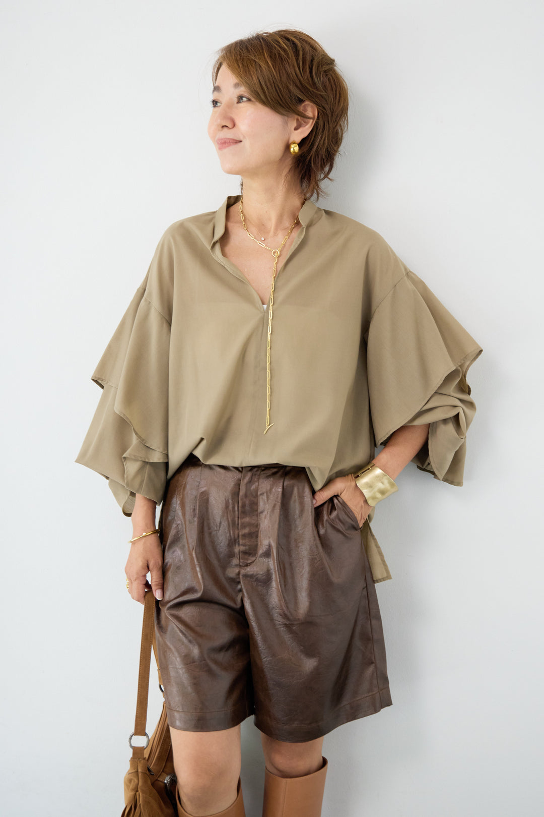 【吸水速乾・防シワ】ラッフルスリーブブラウス