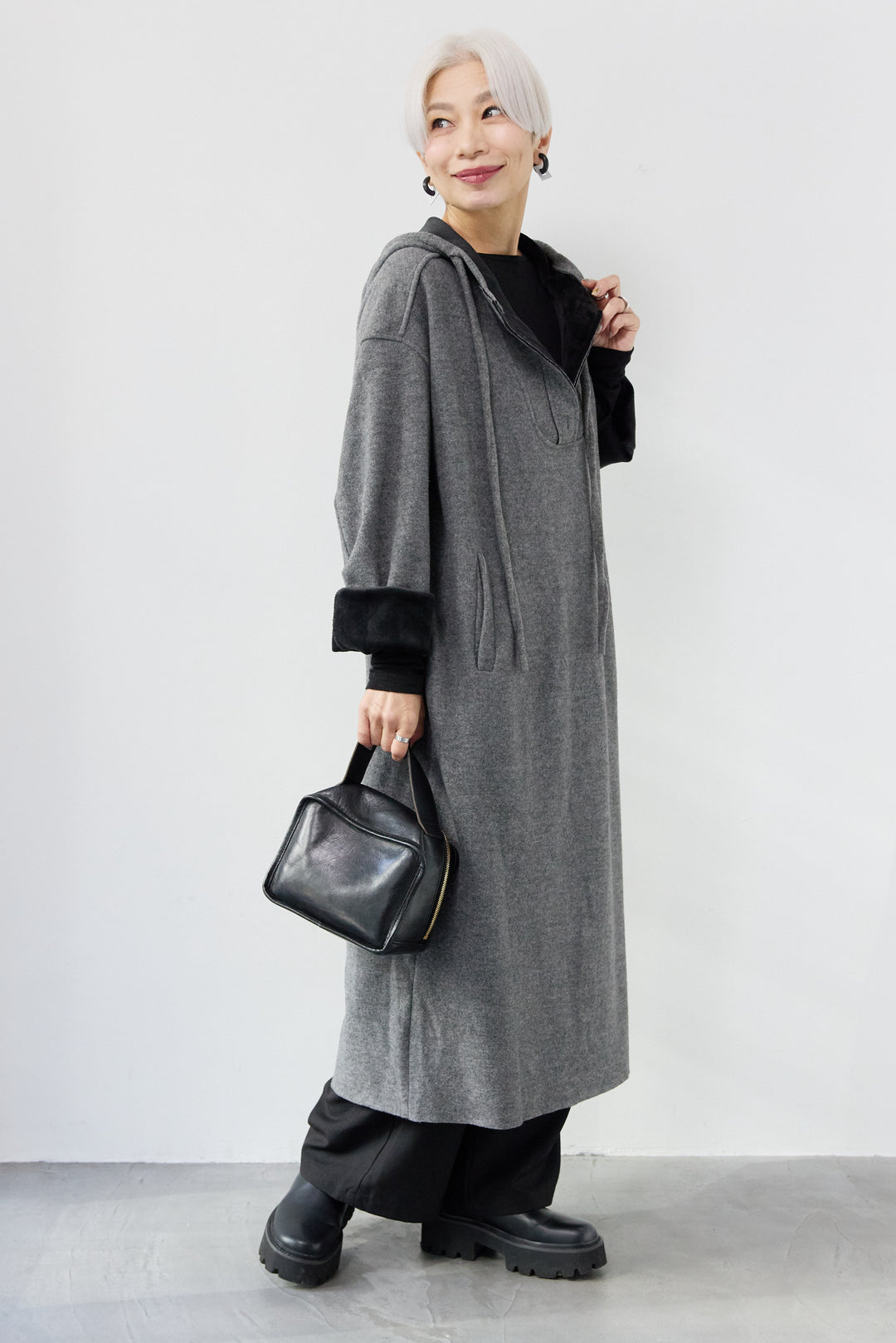 【防静電気】前後2WAY配色ラインやわもちニットワンピース