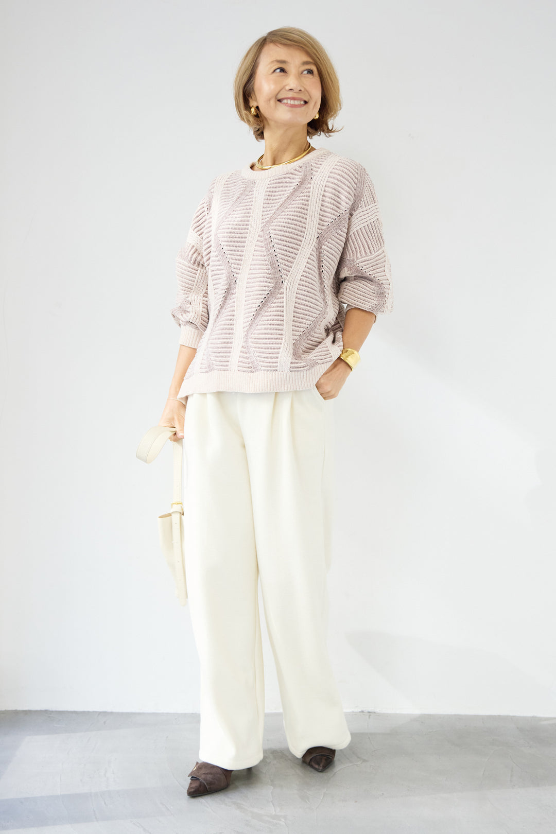 [SET]シルク混ビジューカーディガン+裏起毛イージーワイドパンツ(2set)