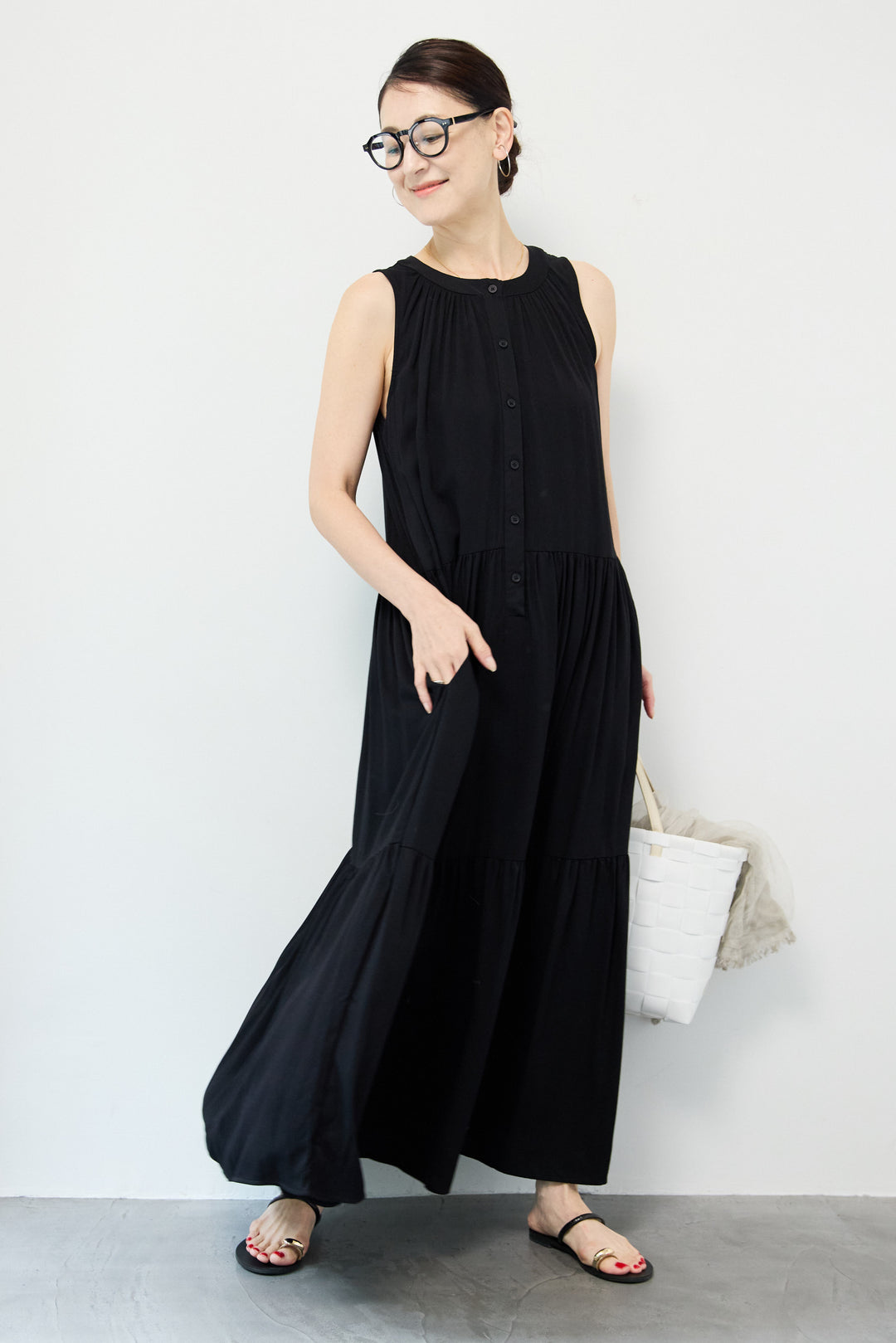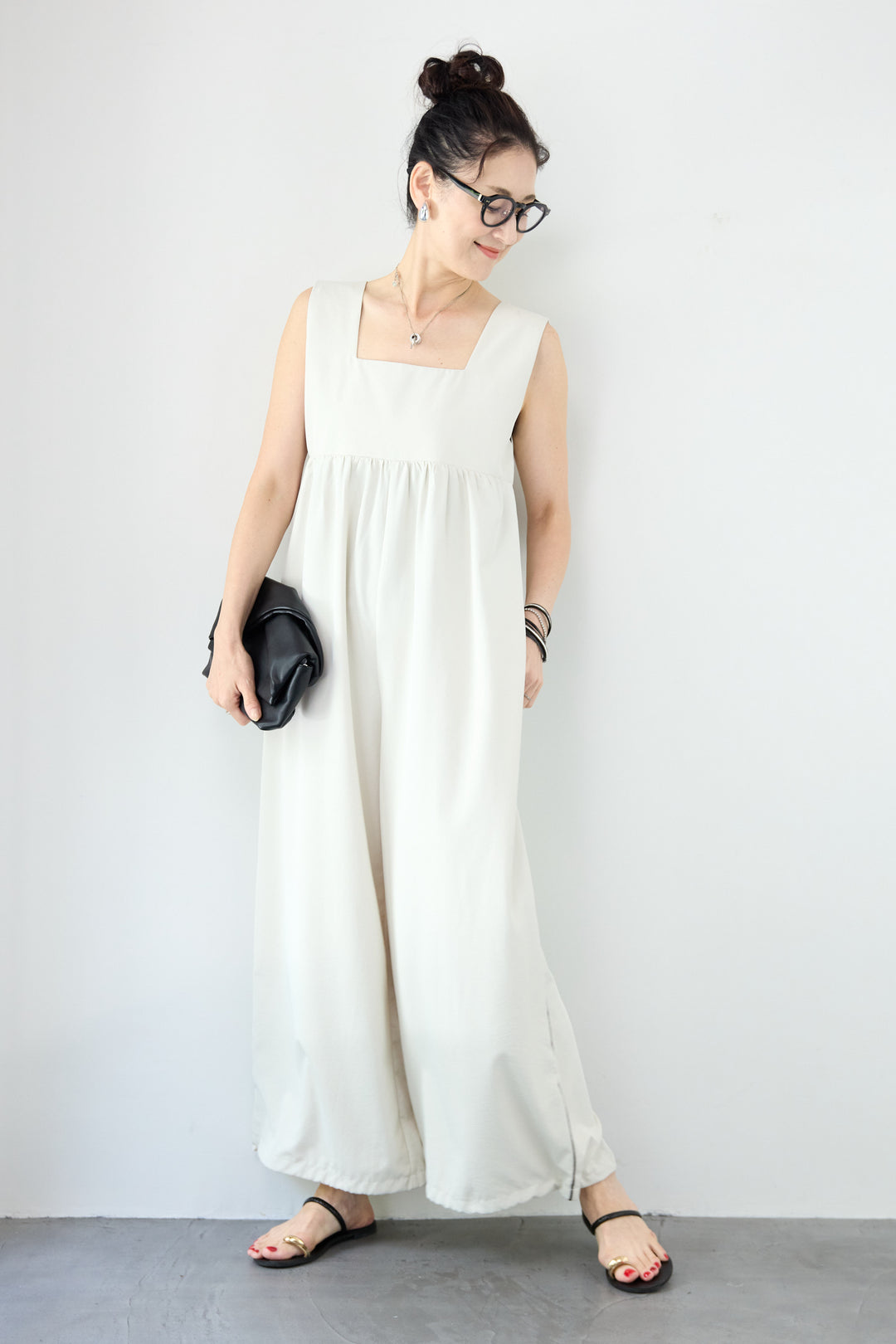 [SET]ハイウエストタックサロペット+パフスリーブタートルネックニット(2set)