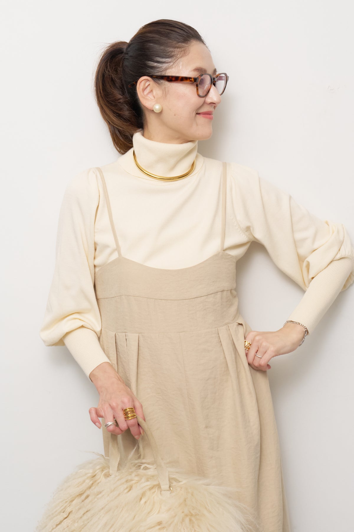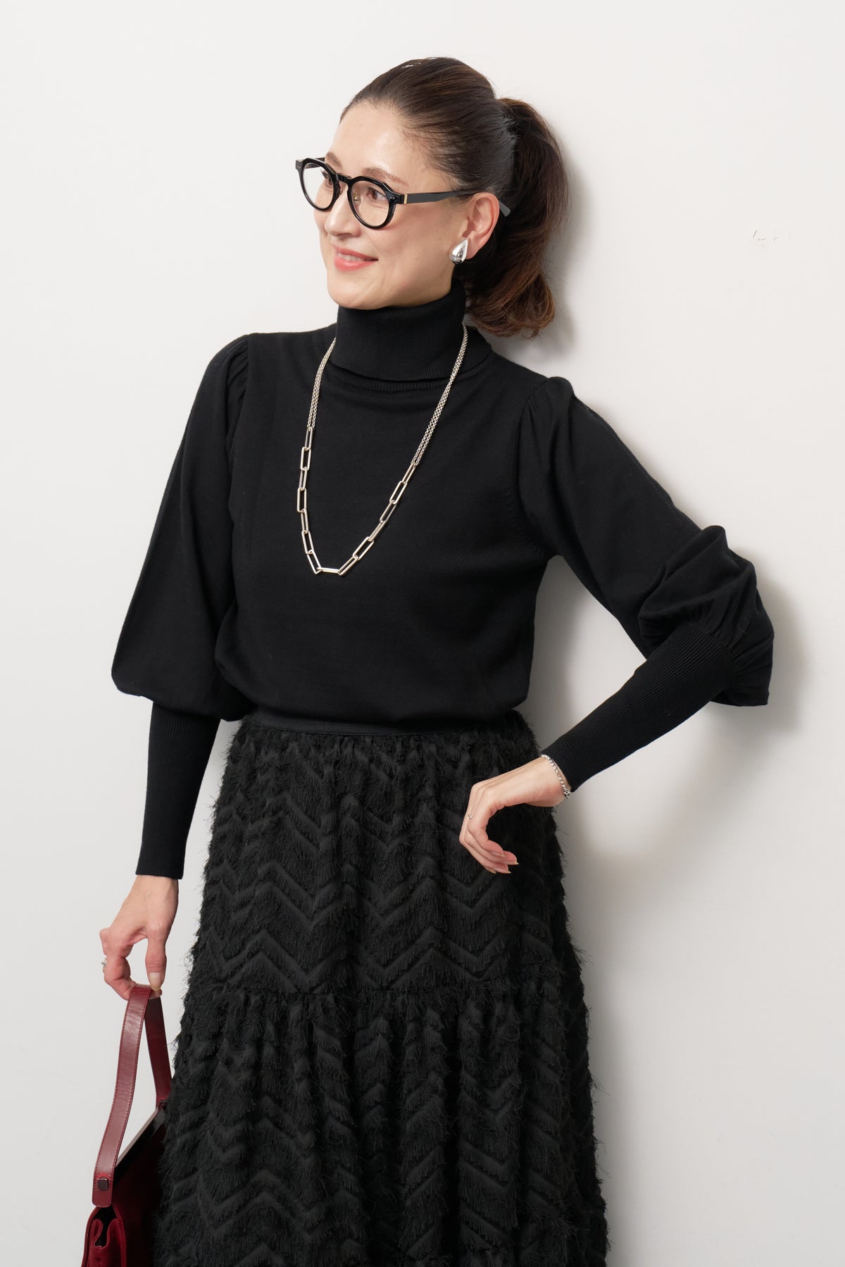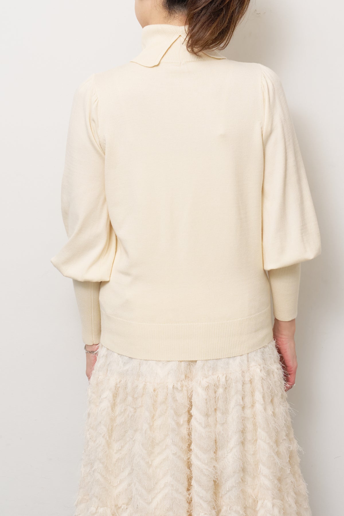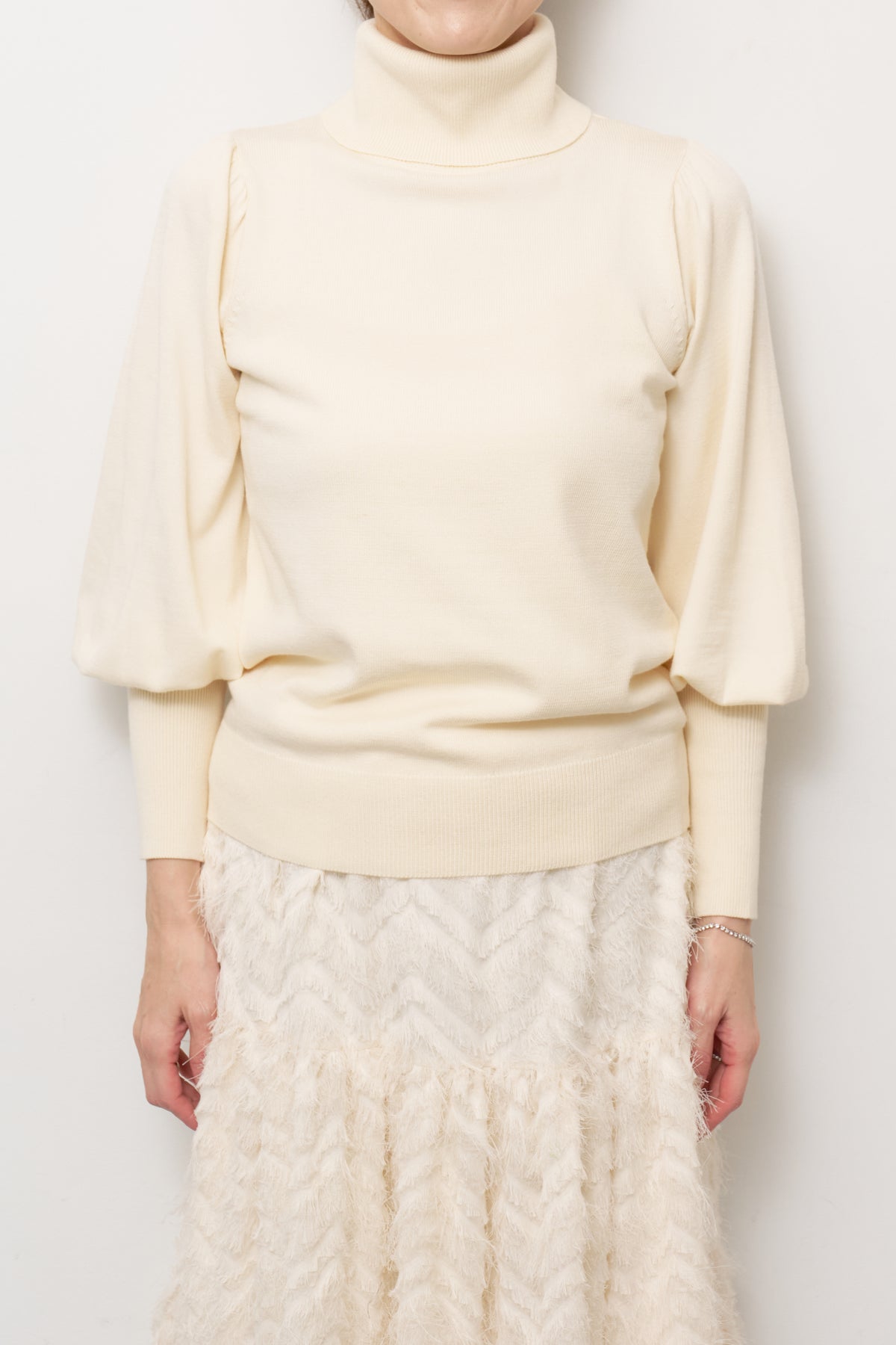 パフスリーブタートルネックニット