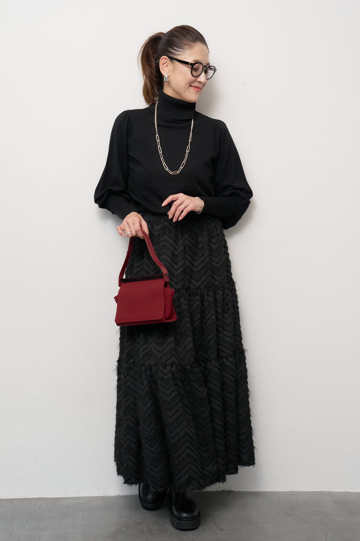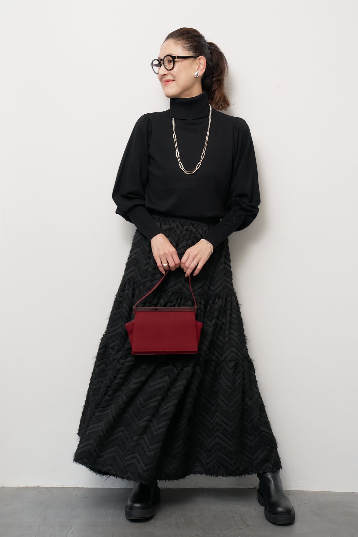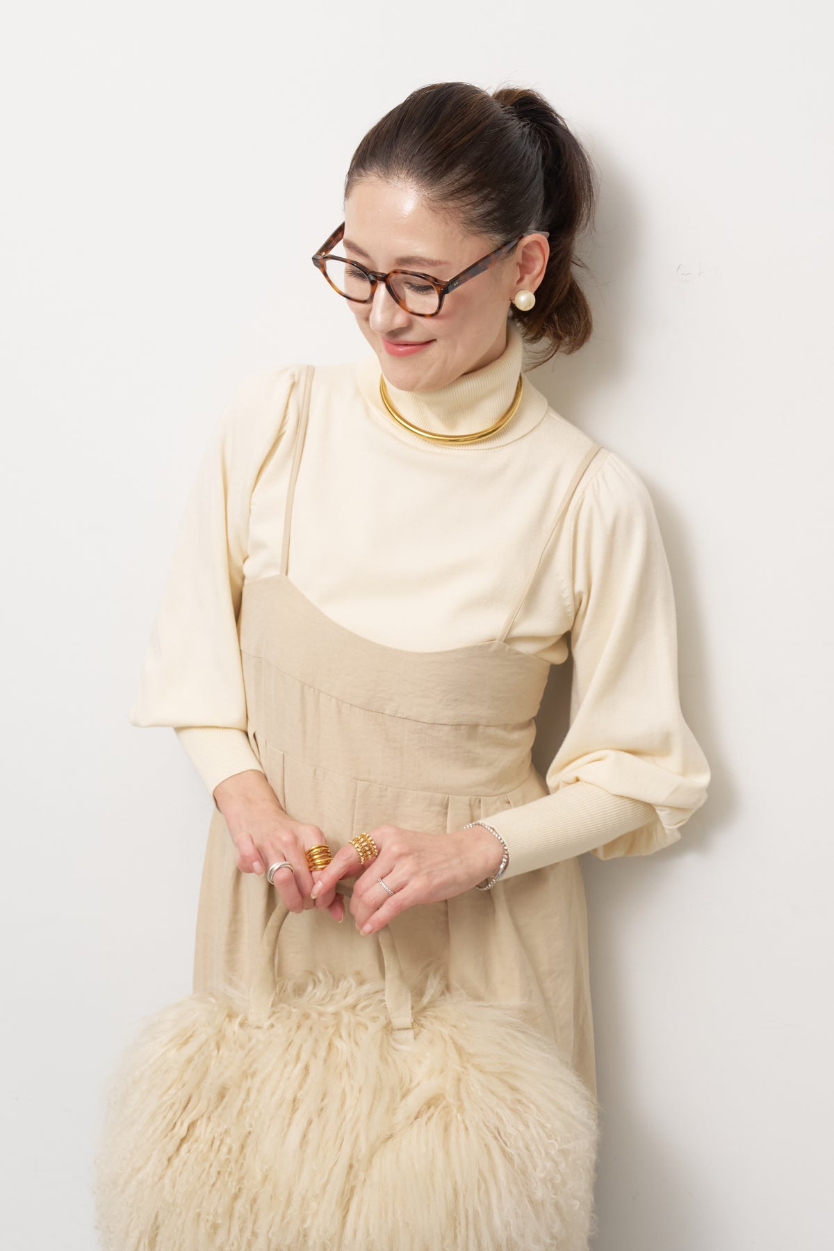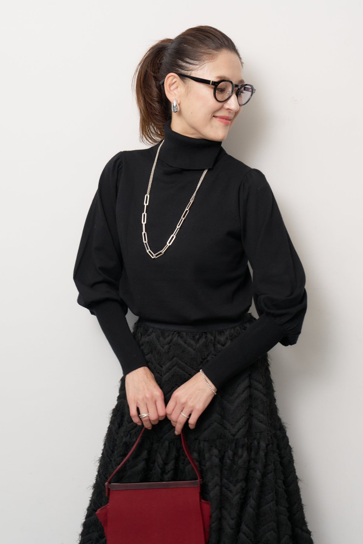 パフスリーブタートルネックニット