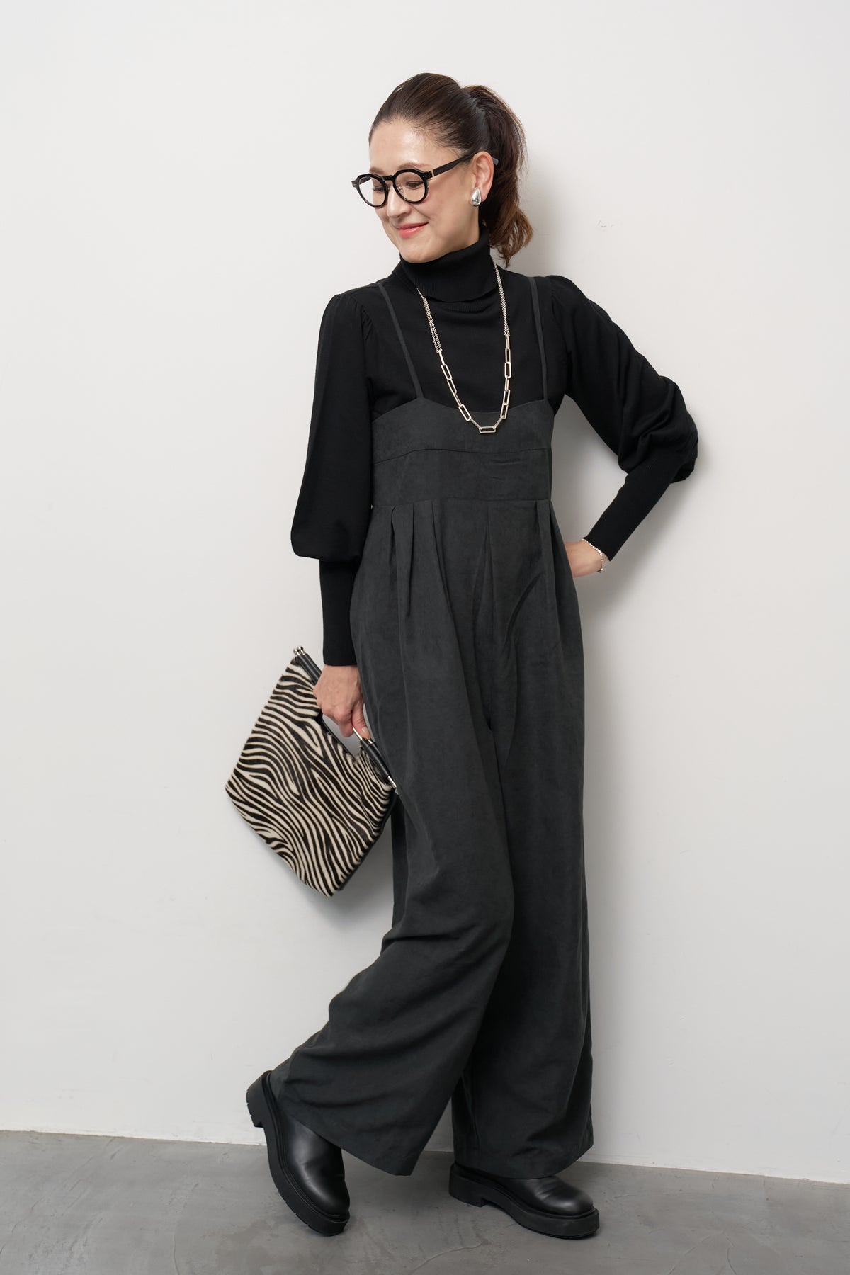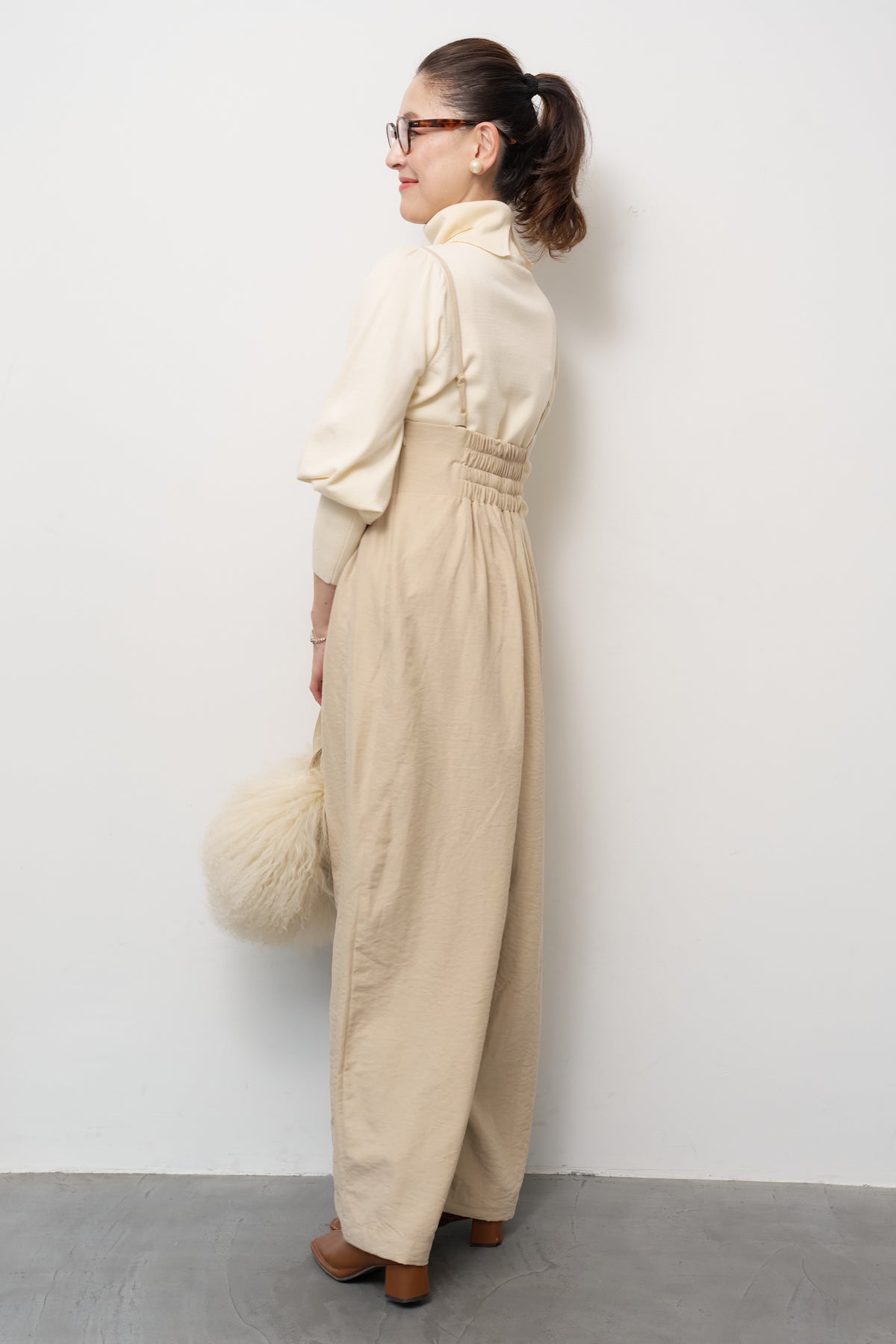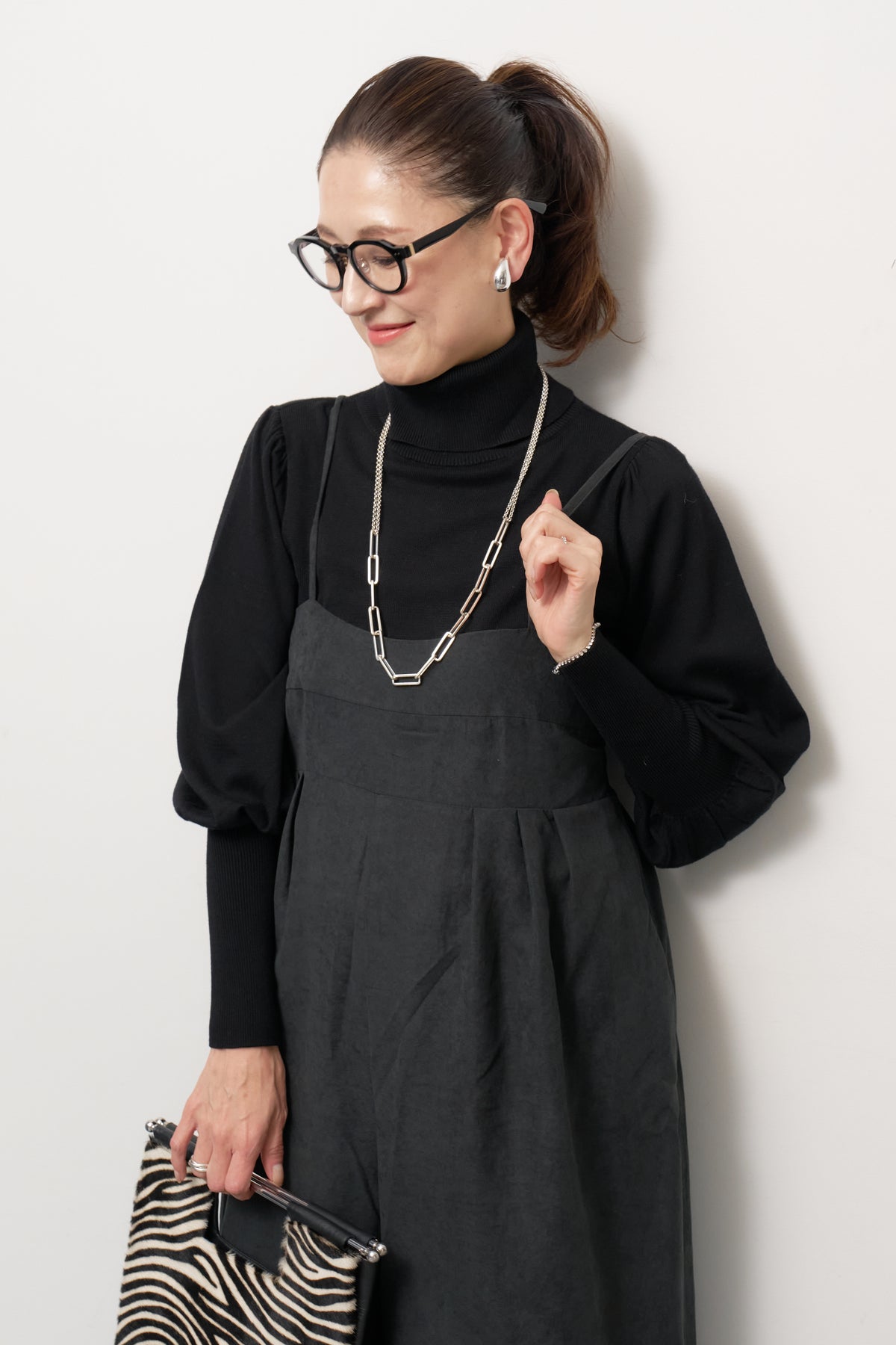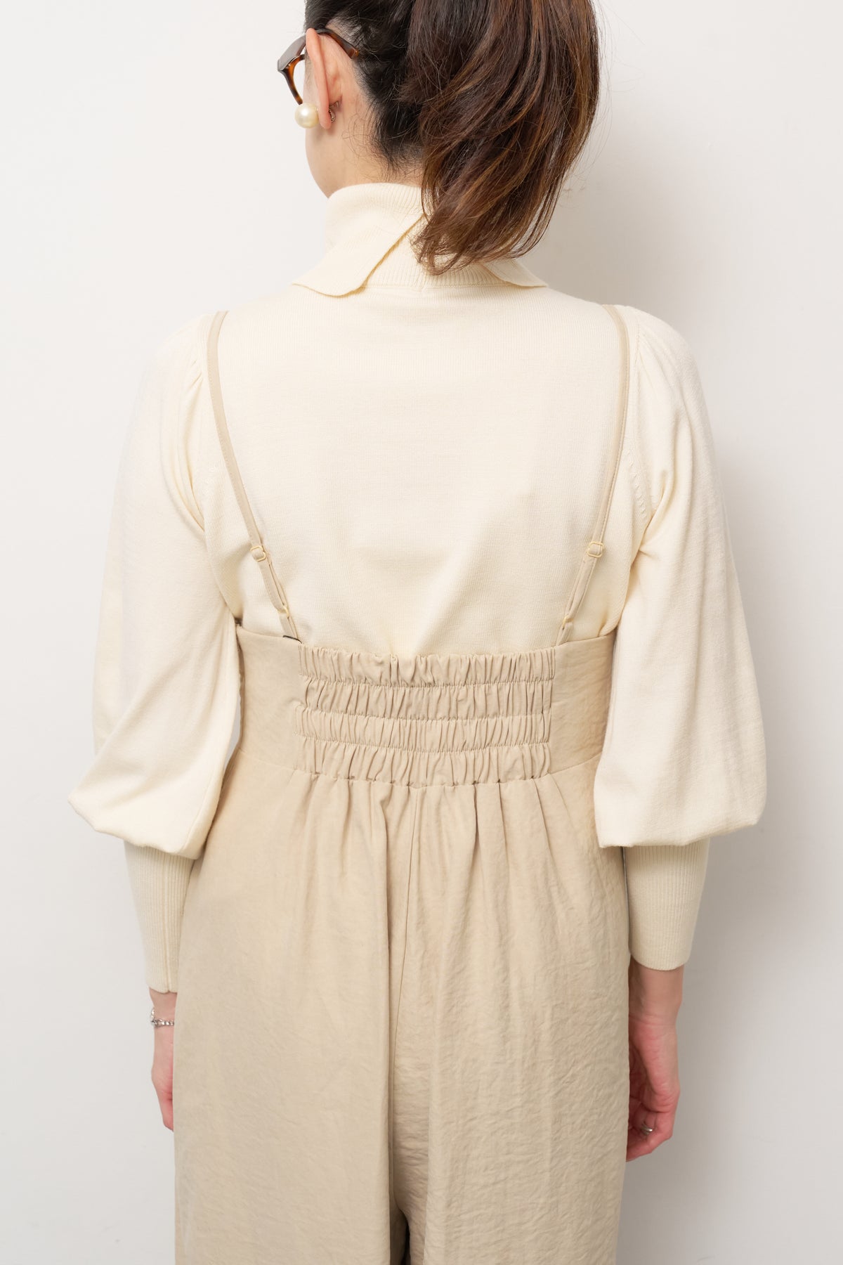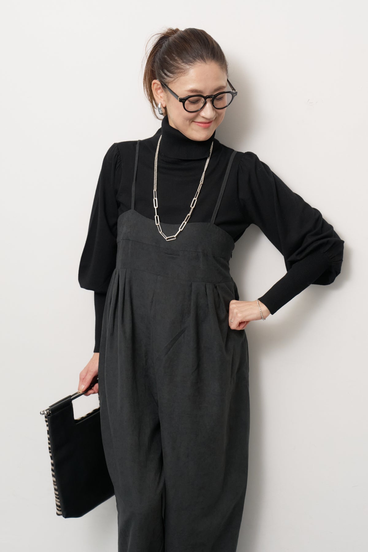 ハイウエストタックサロペット/パフスリーブタートルネックニット