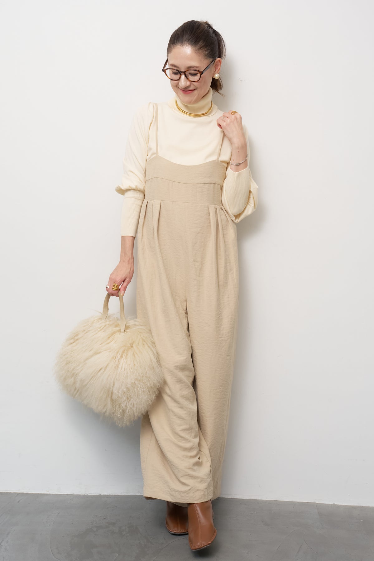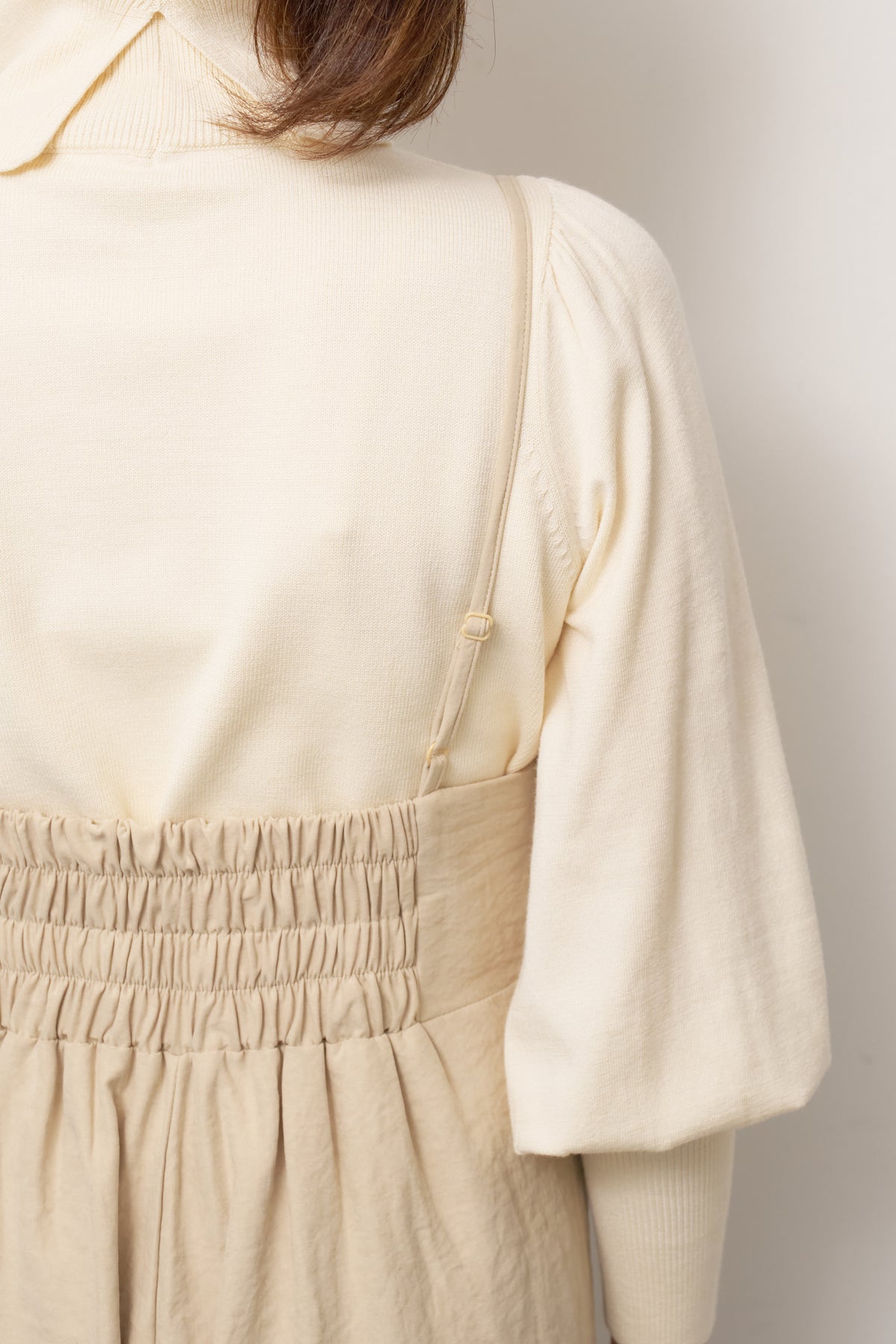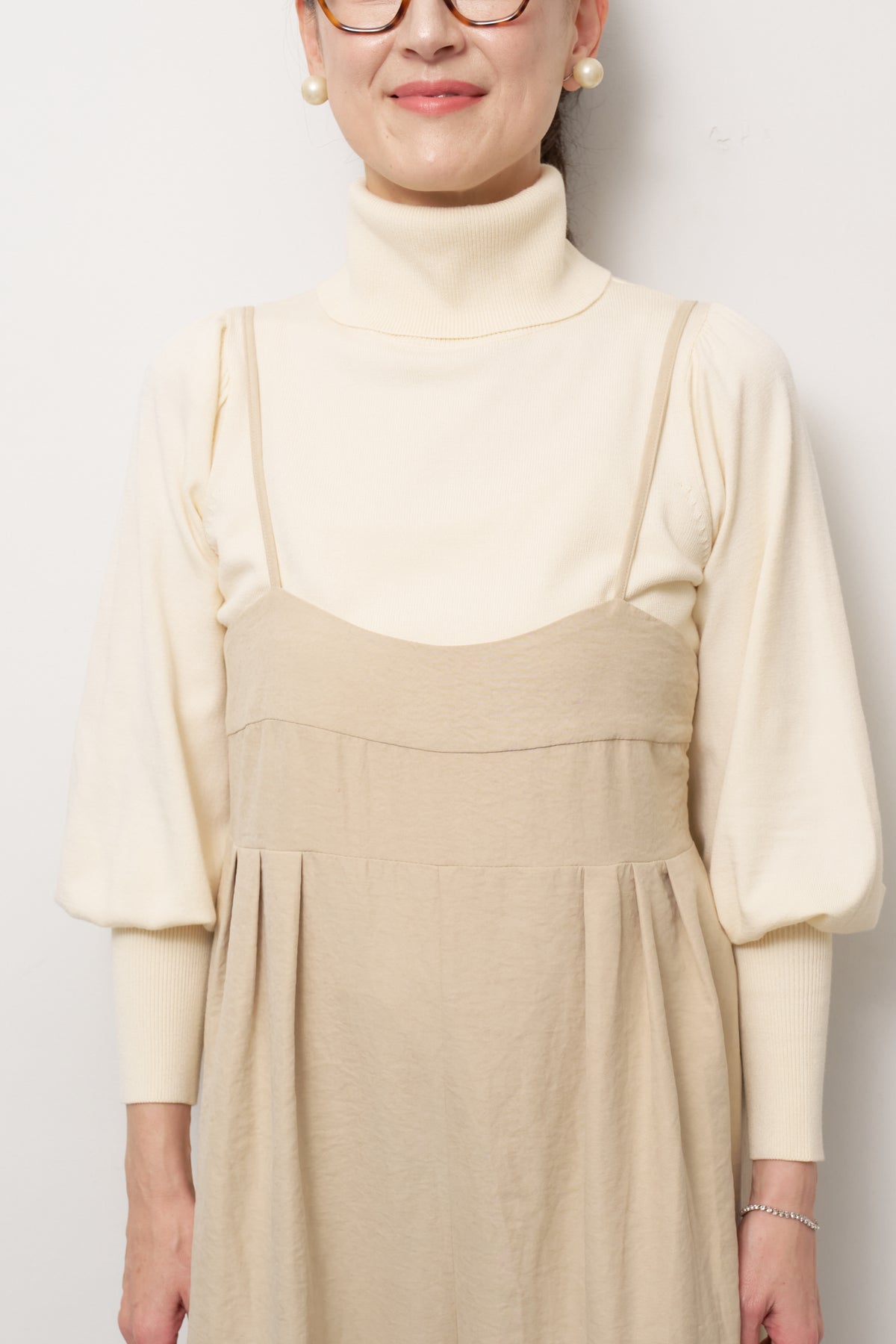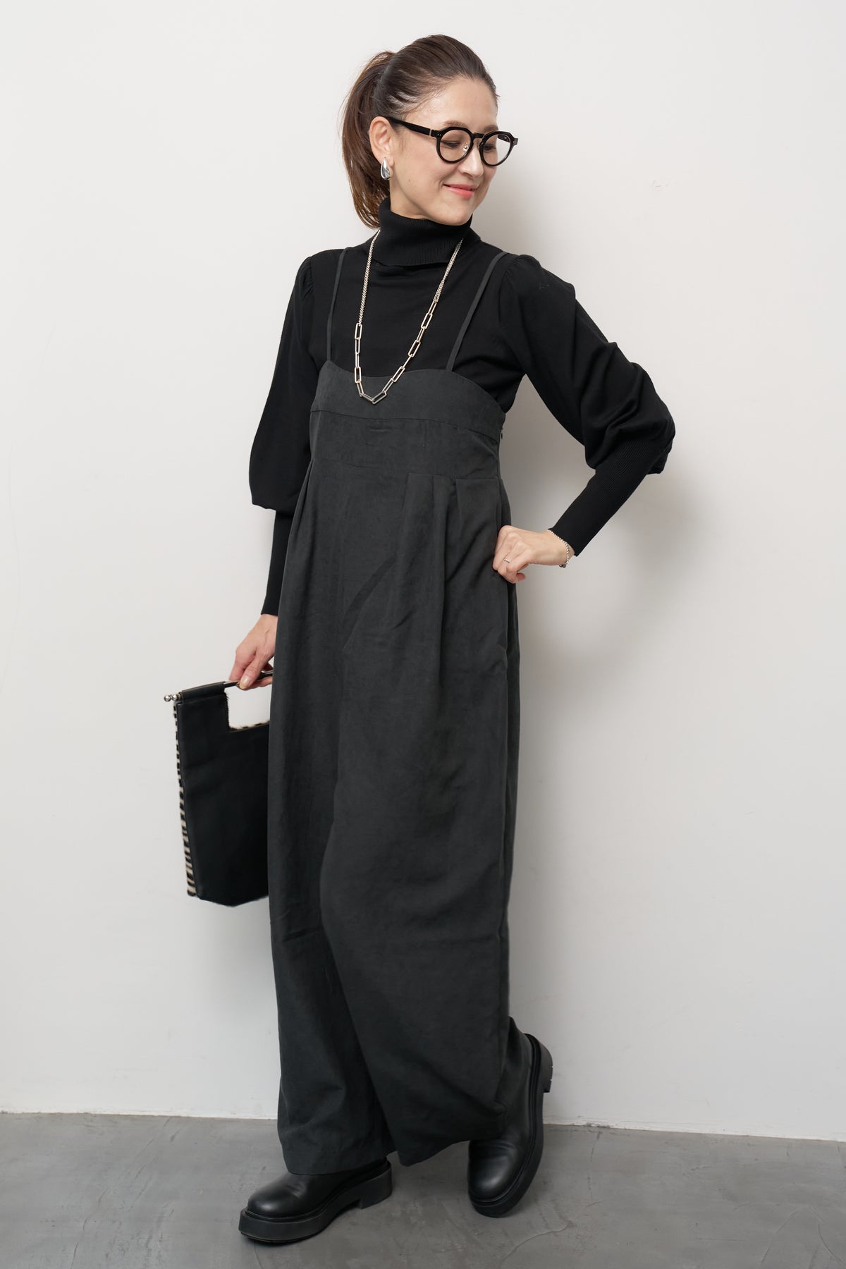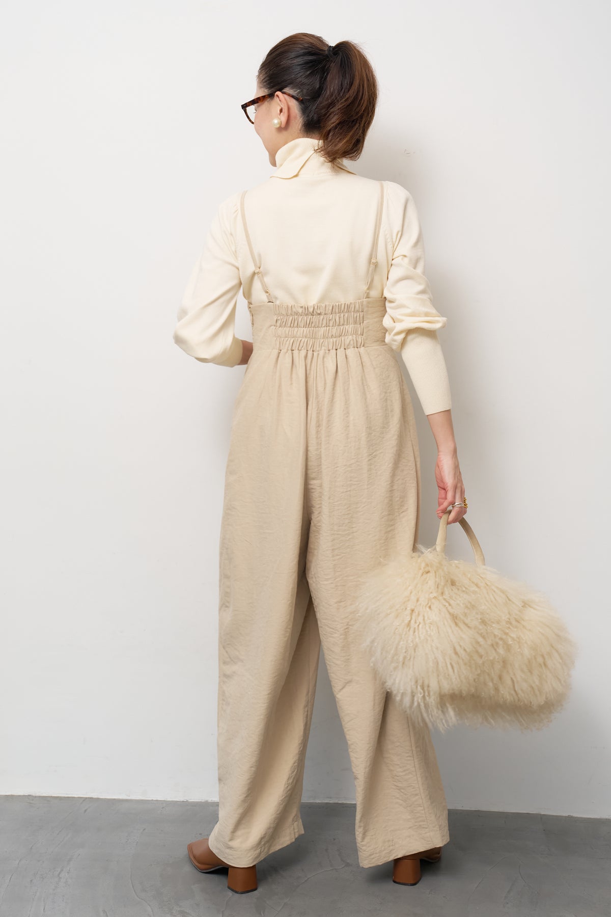 ハイウエストタックサロペット/パフスリーブタートルネックニット