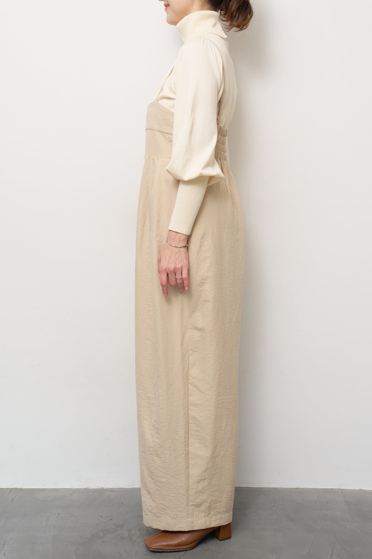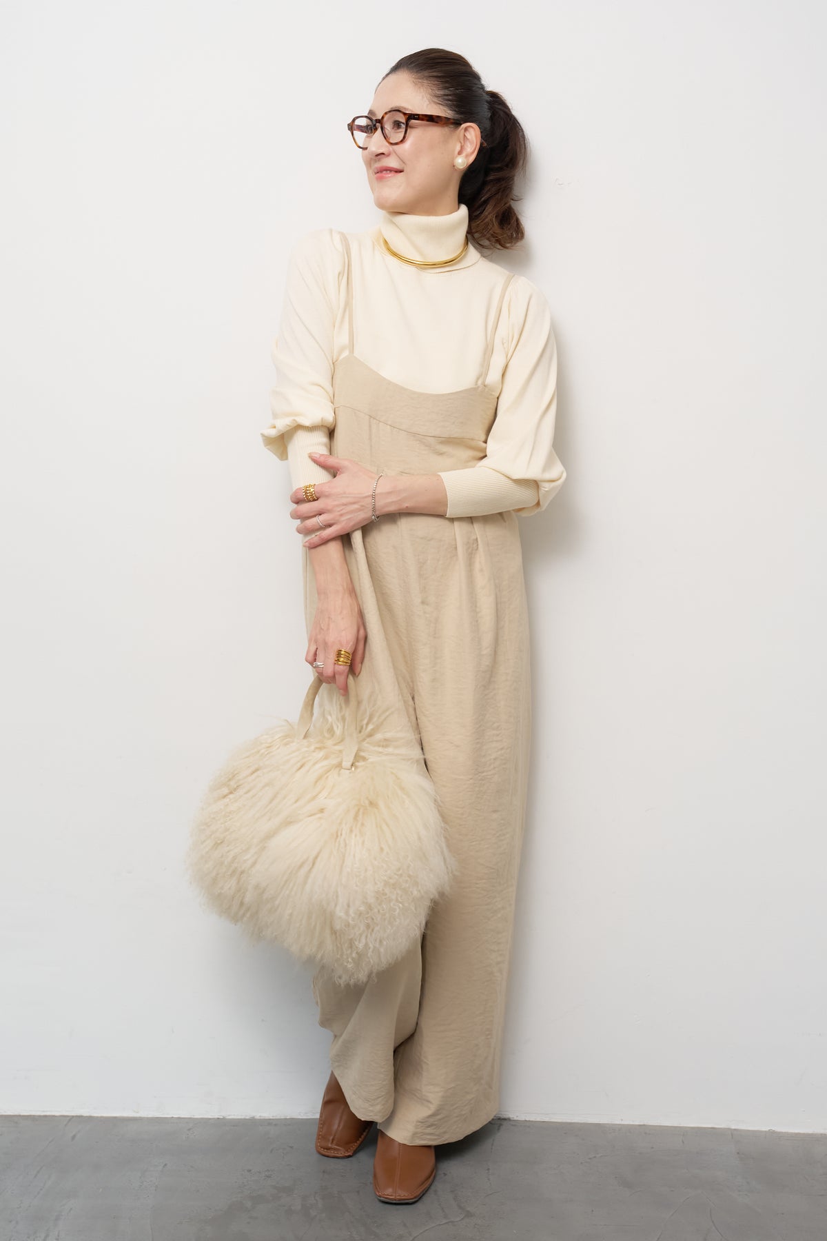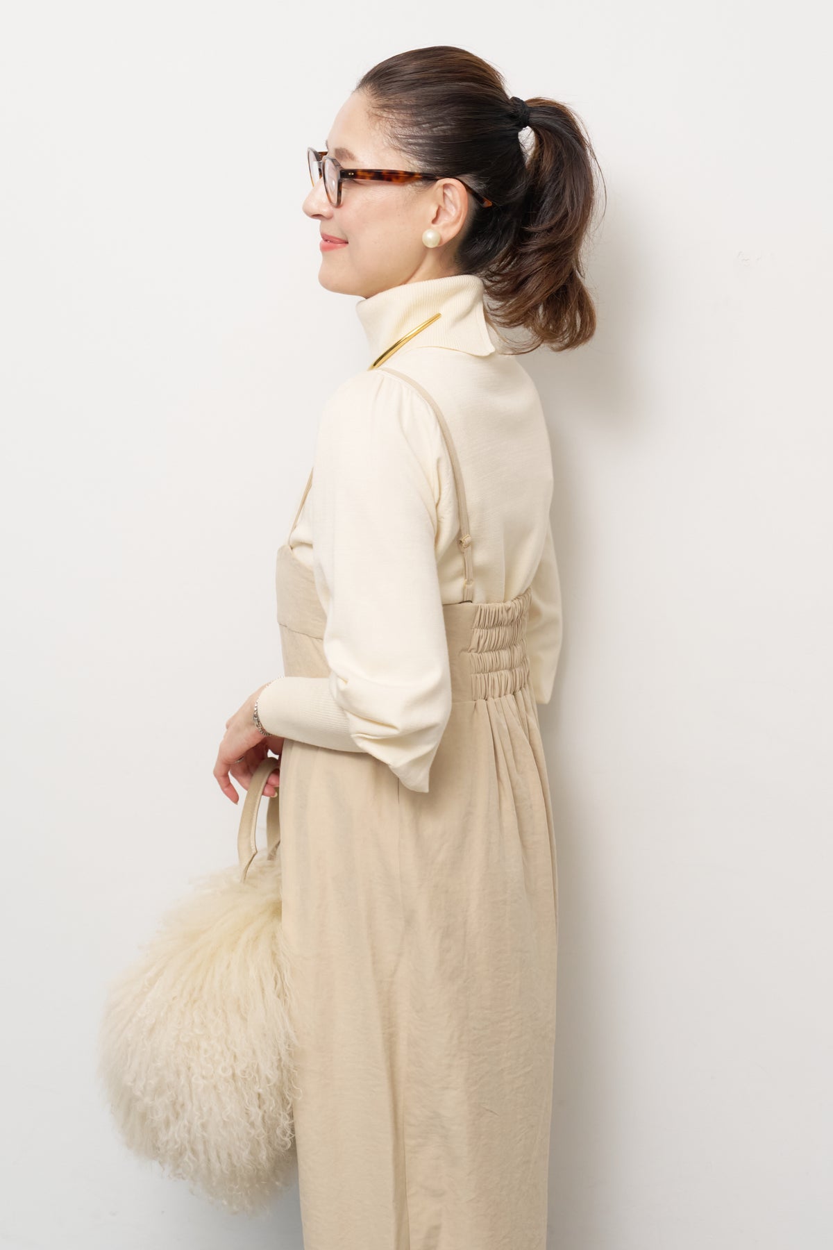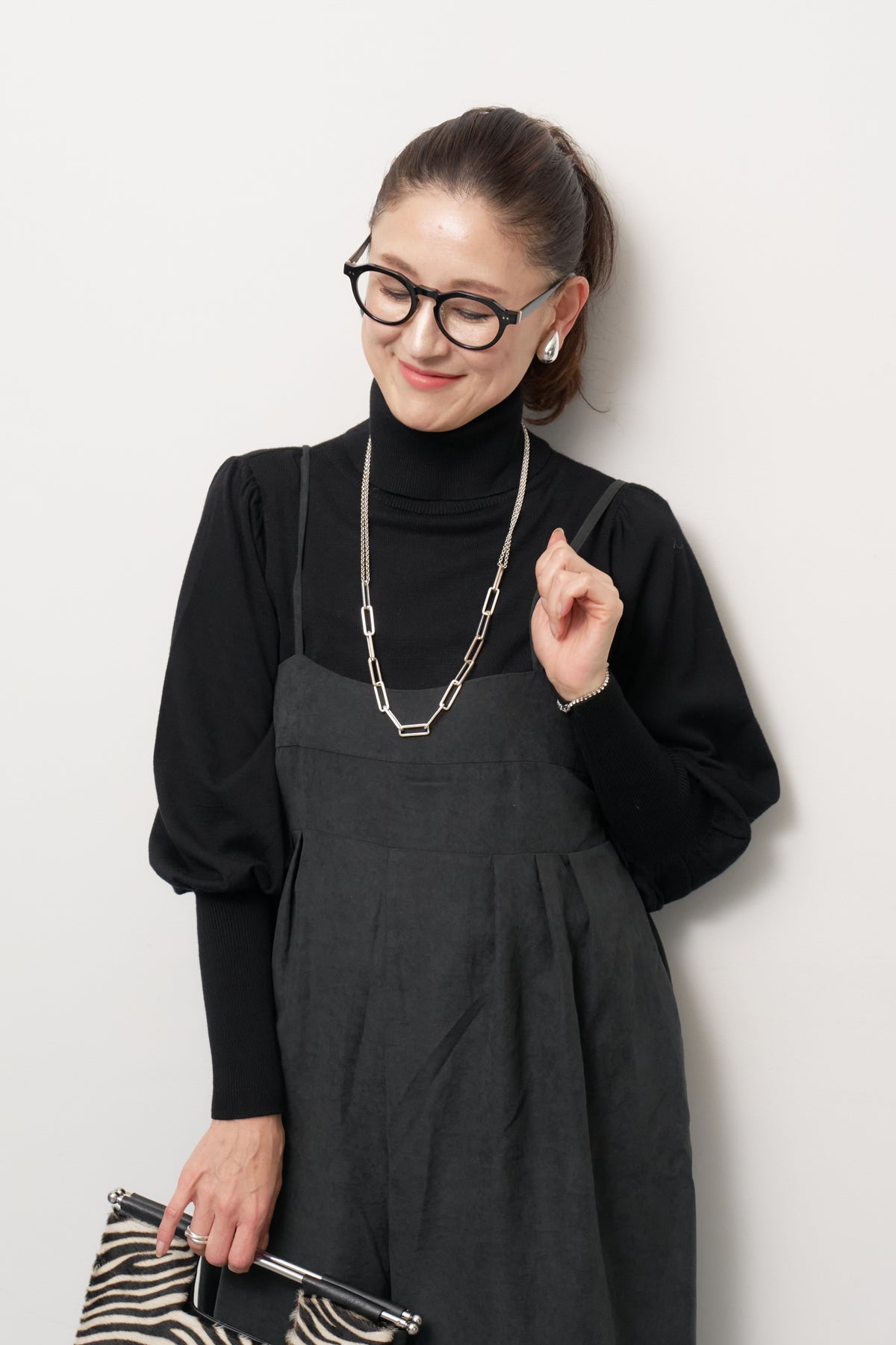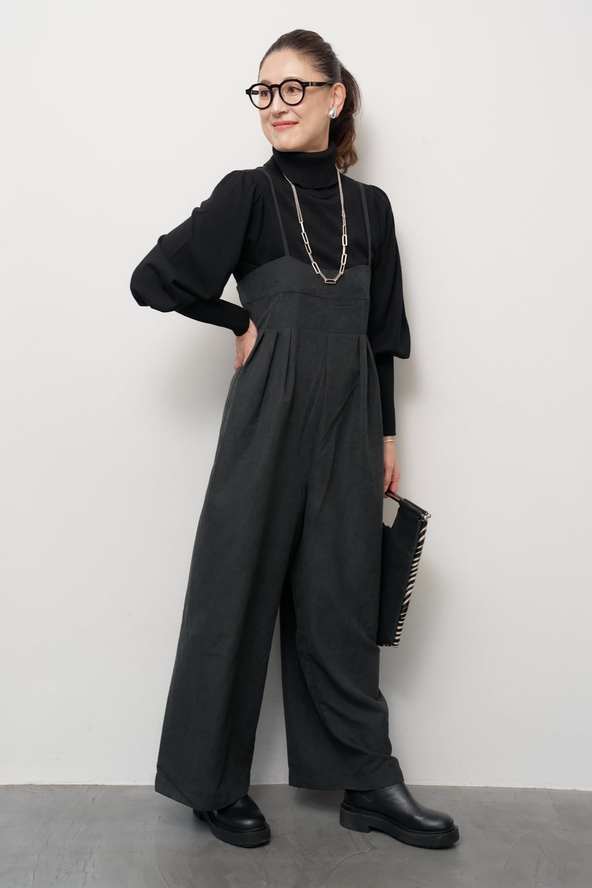 ハイウエストタックサロペット/パフスリーブタートルネックニット