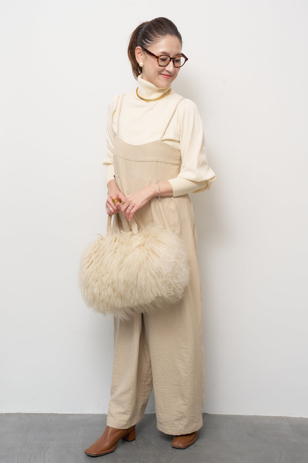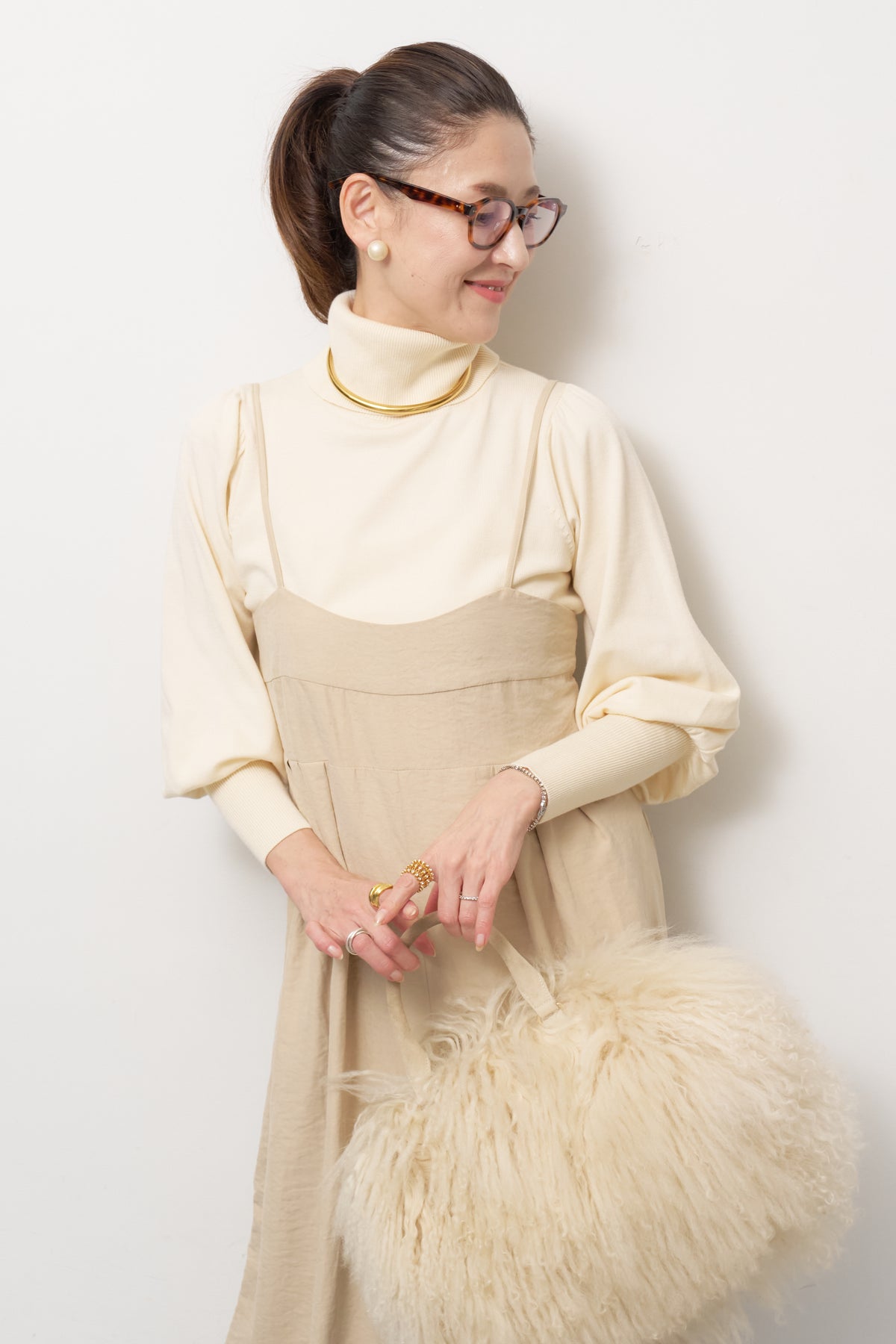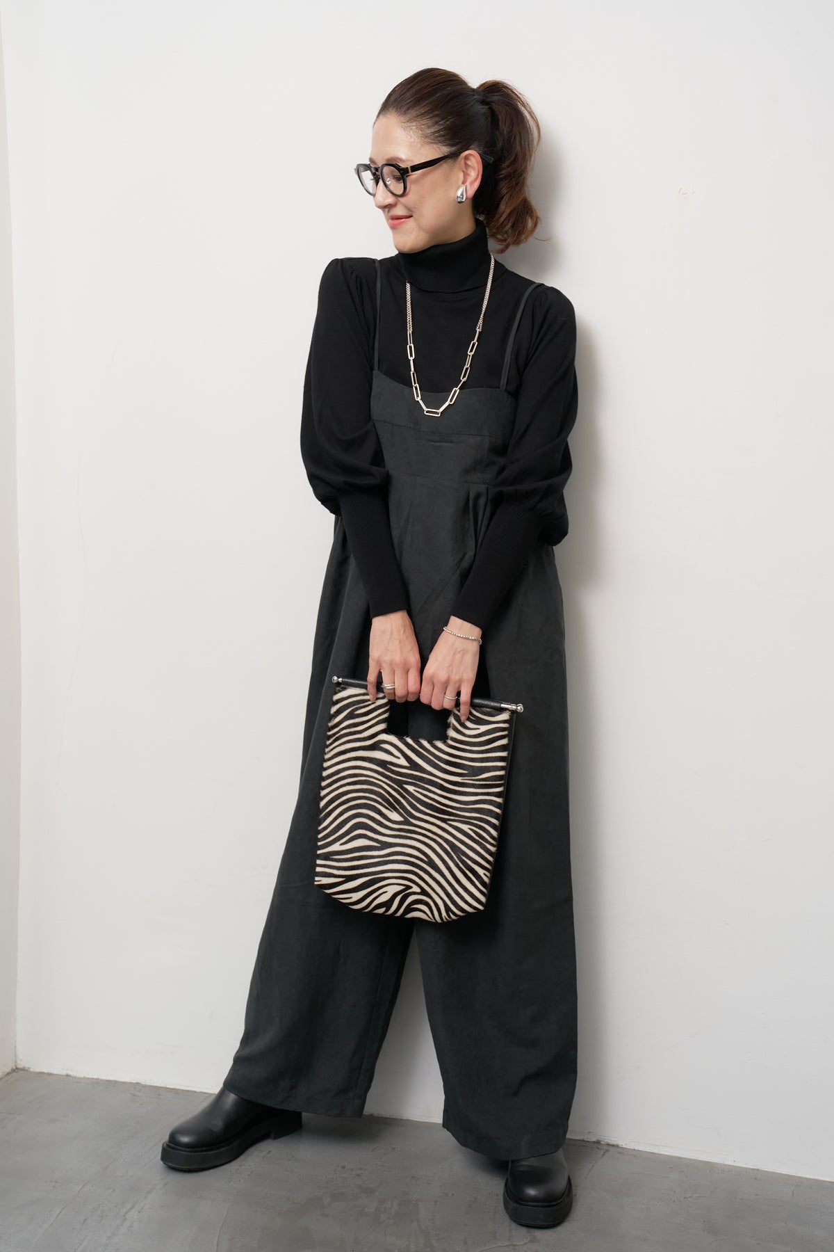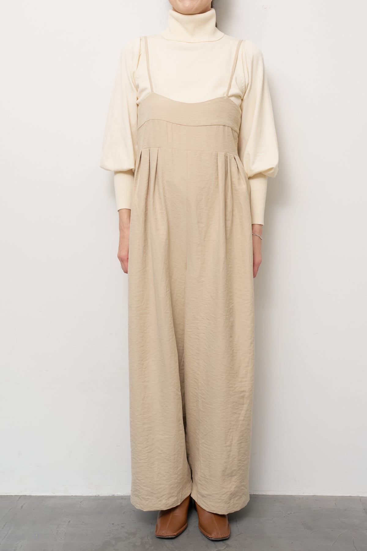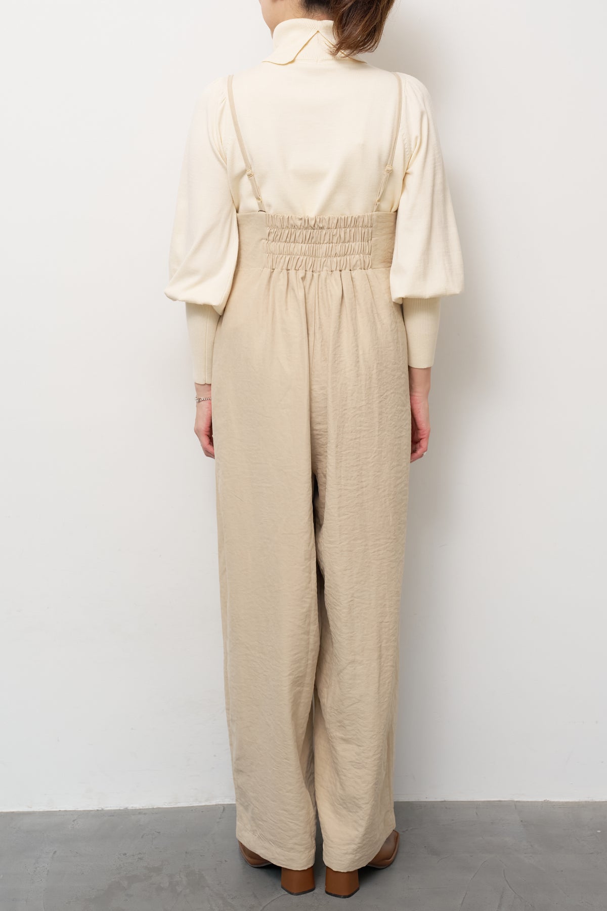 ハイウエストタックサロペット/パフスリーブタートルネックニット