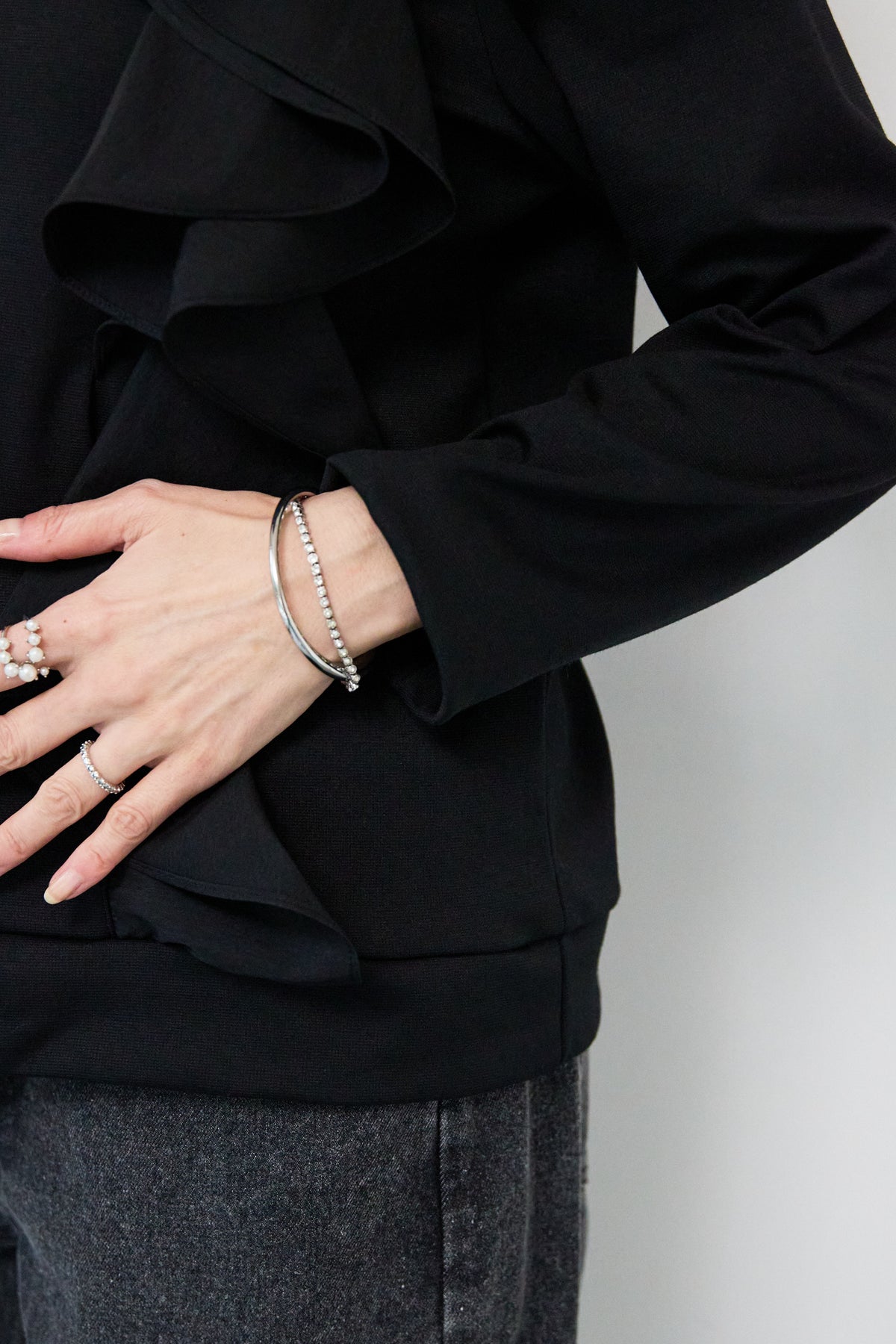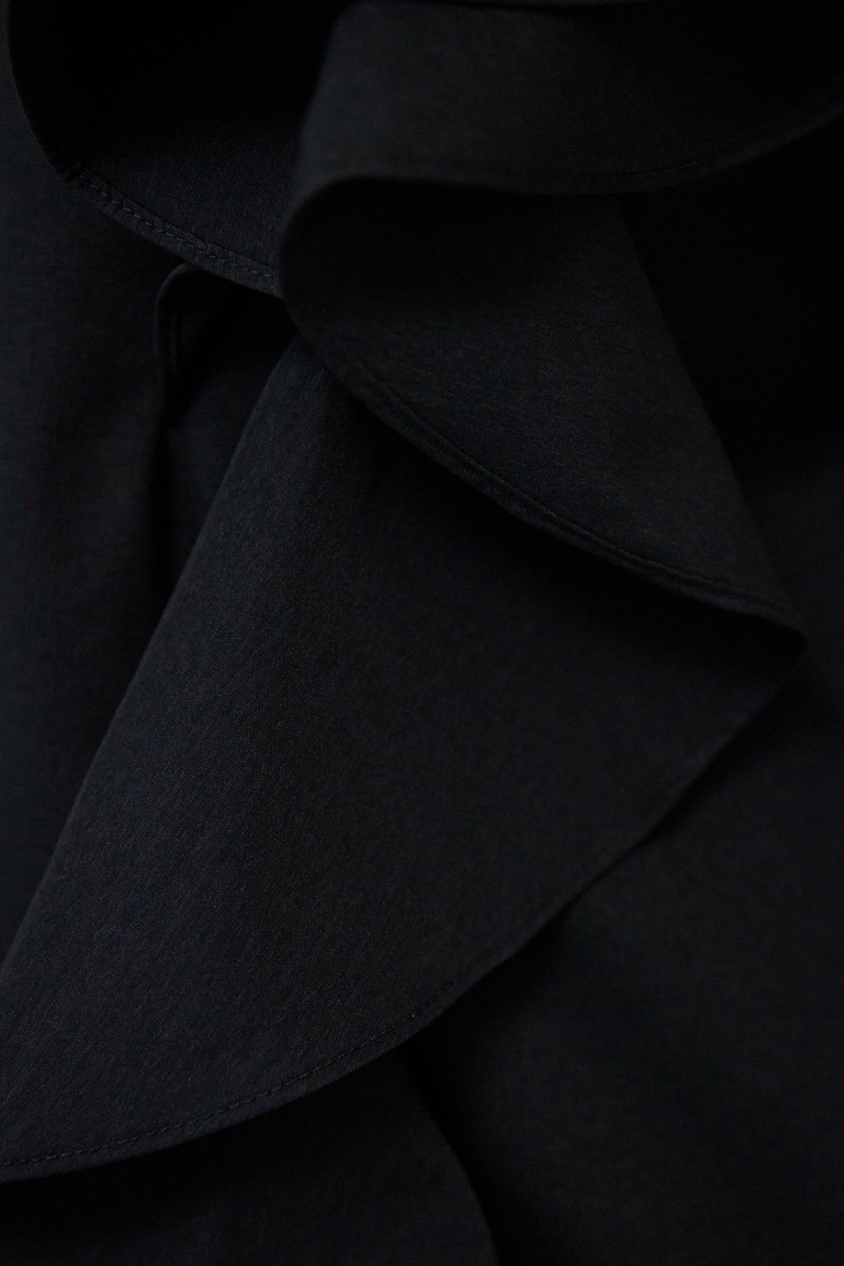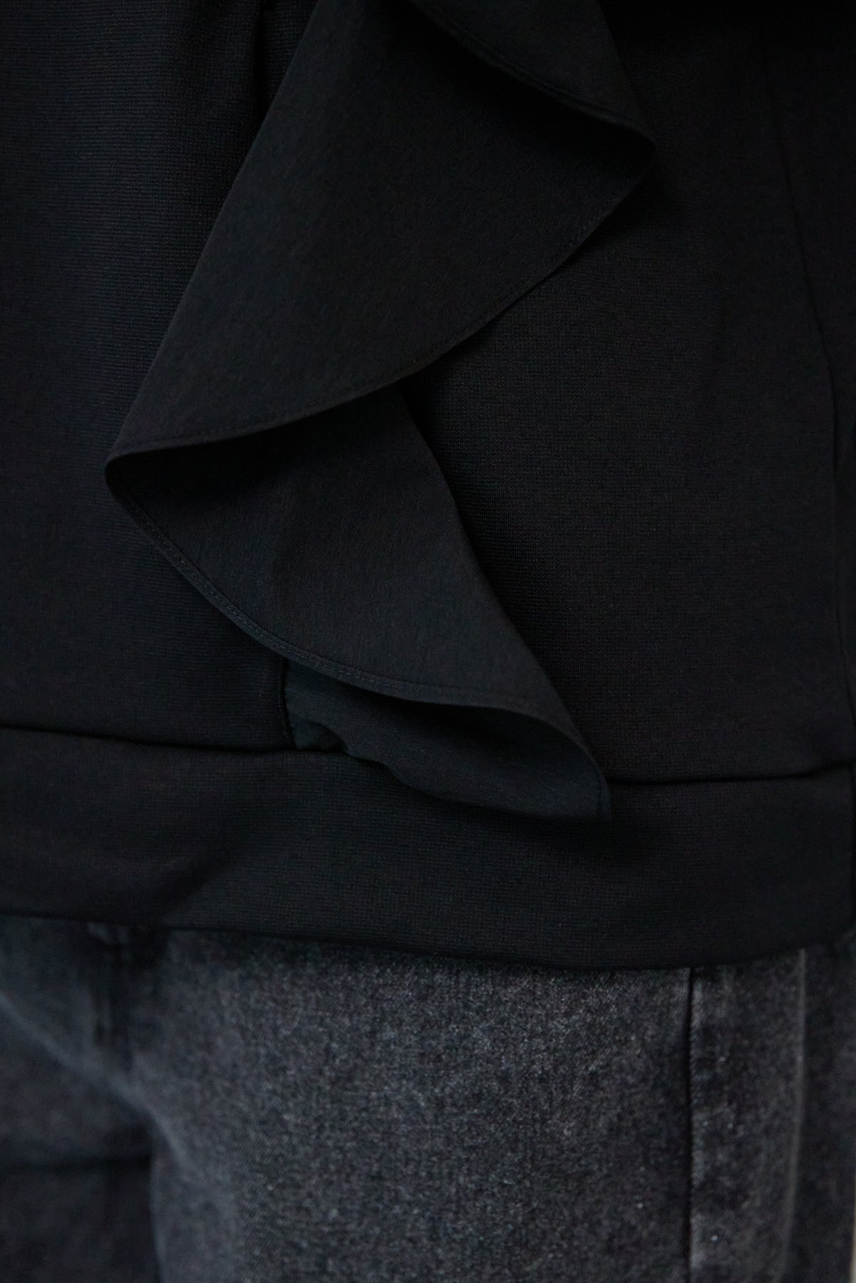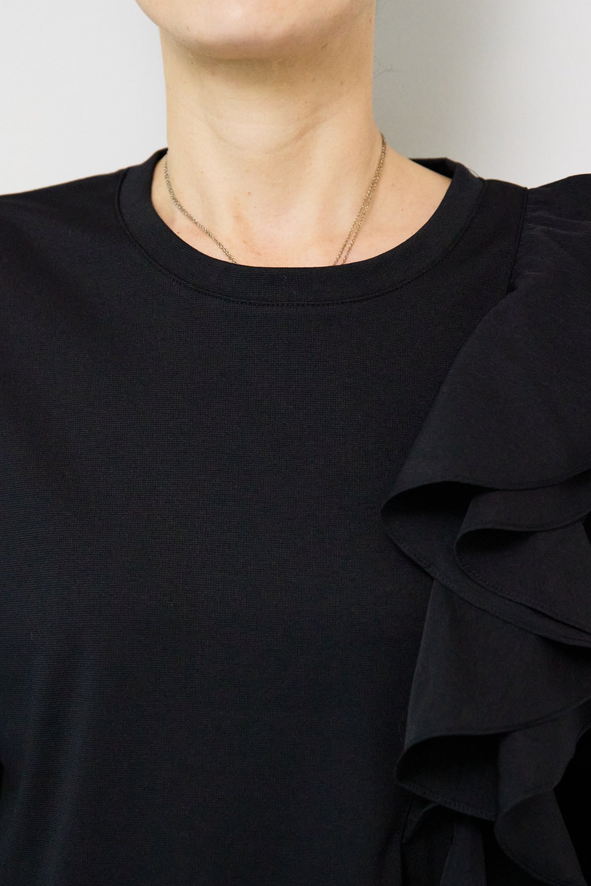 華やかなラッフルフリルが目を引くデザインカットソー。片側に流れるように配されたフリルと袖の切替フリルが立体感を生み出し、シンプルなシルエットに表情を添えます。程よい厚みのカットソー素材で着心地も良く、デイリー使いからきれいめなスタイリングまで対応可能。デニムと合わせてカジュアルに、スカートと合わせてモードに仕上げるなど、幅広い着こなしが楽しめるアイテムです。