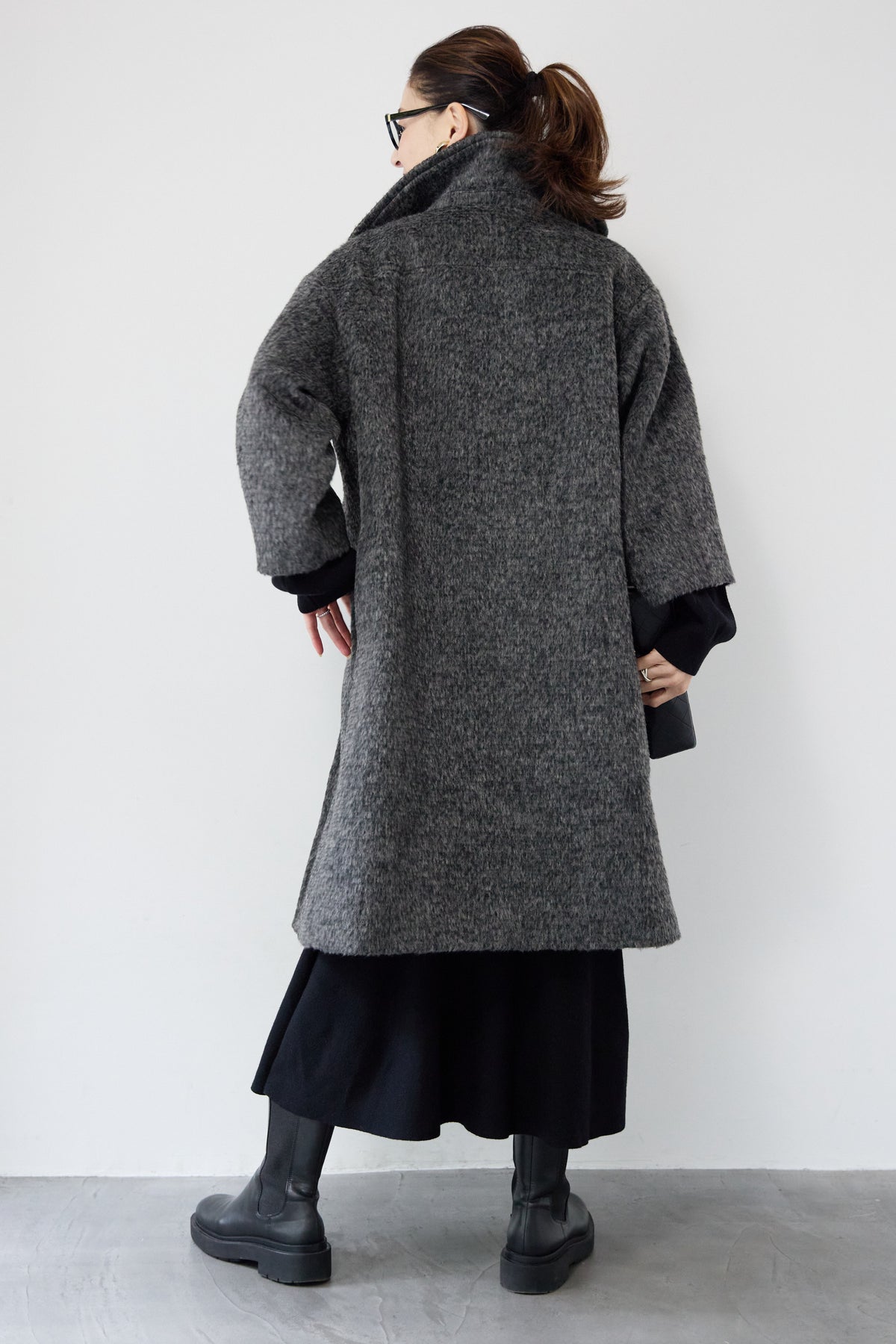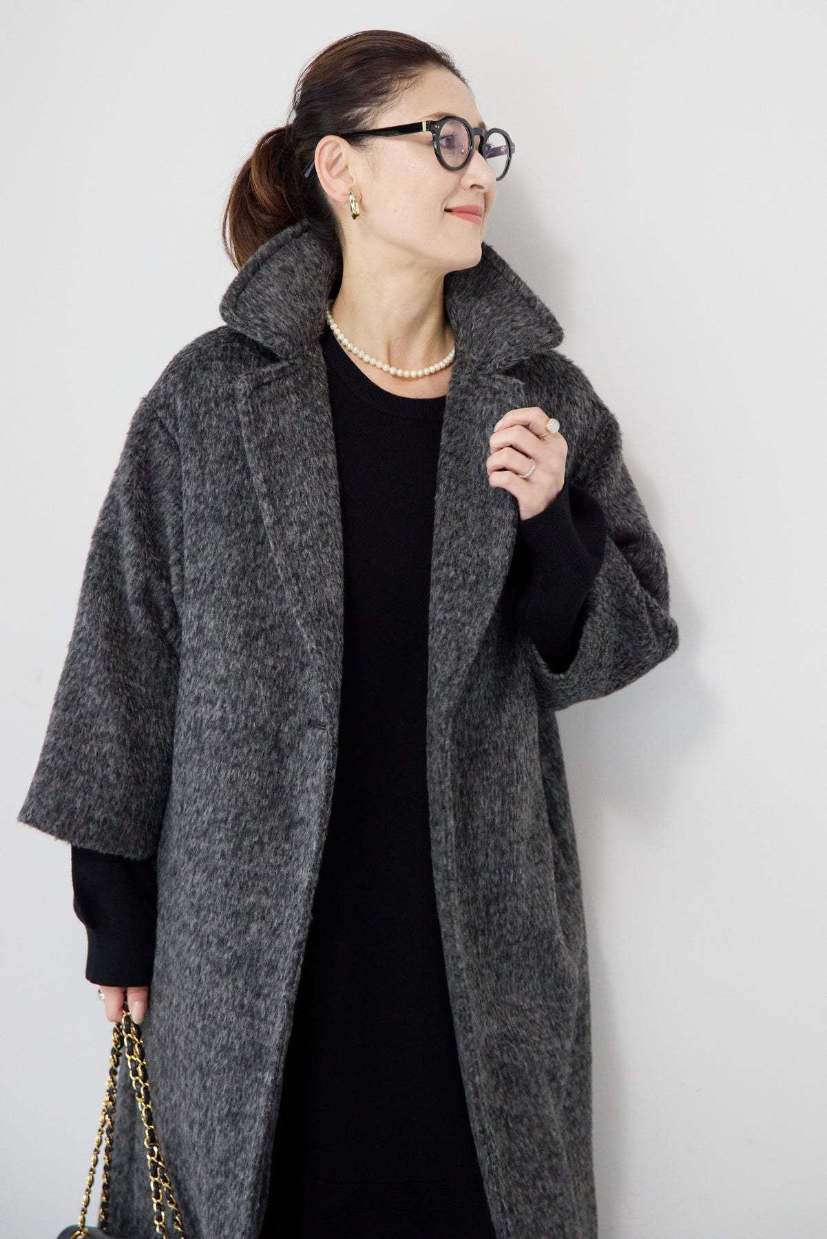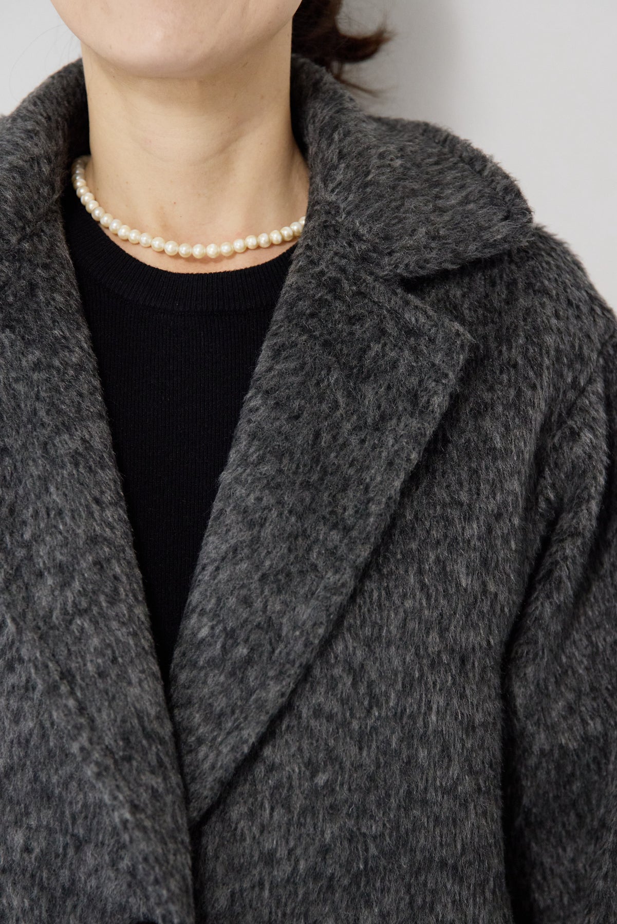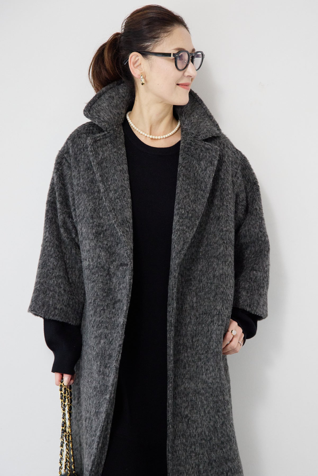 ふんわりとしたシャギー素材が魅力の、大人の雰囲気漂うチェスターコート。ミックスグレーの柔らかな色味とゆとりのあるシルエットが、上品な抜け感を演出します。軽い着心地ながら内側はキルティングでしっかりと暖かく、冬のお出かけにも頼れる一枚。襟は立てても折っても形が決まり、どんなコーデにも馴染む万能アウターです。シンプルながらひと味違う存在感で、毎日のスタイリングに寄り添います。