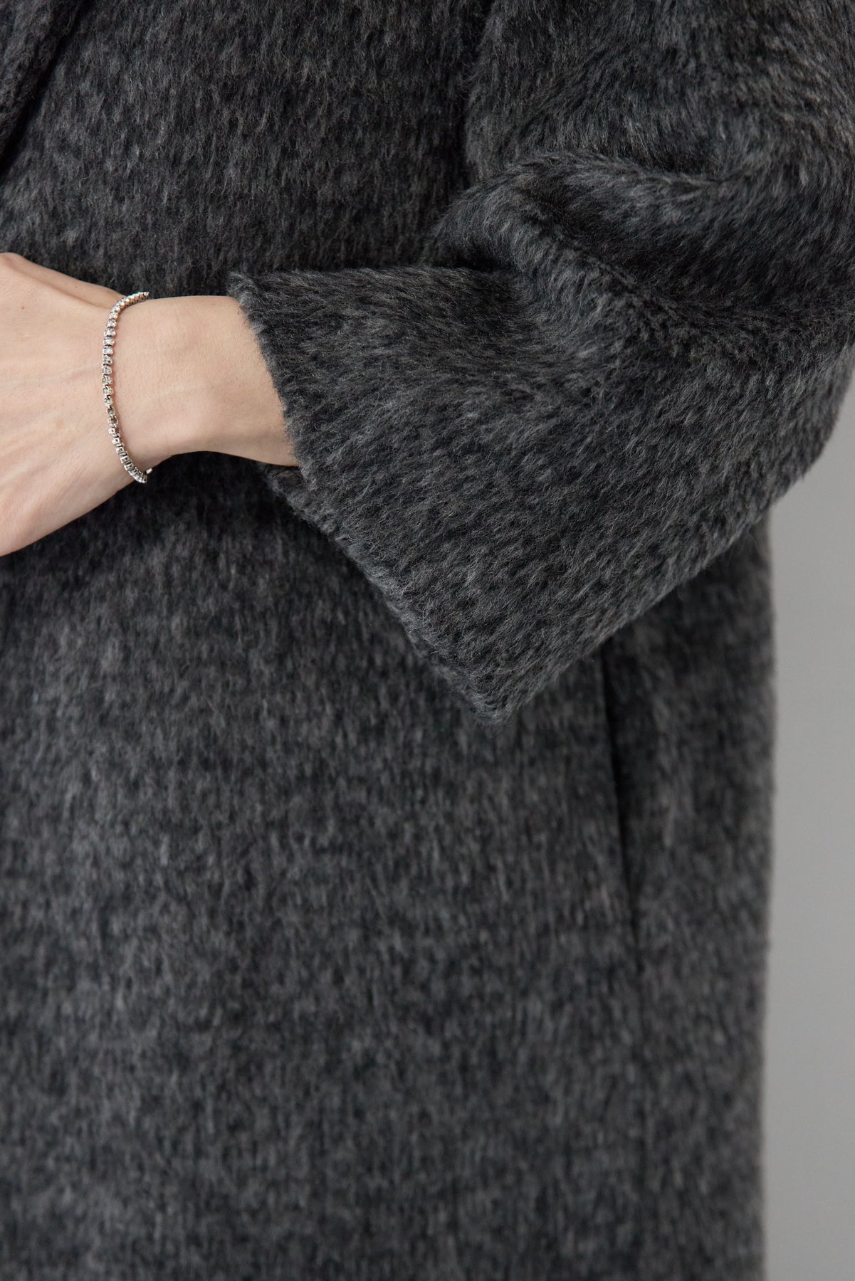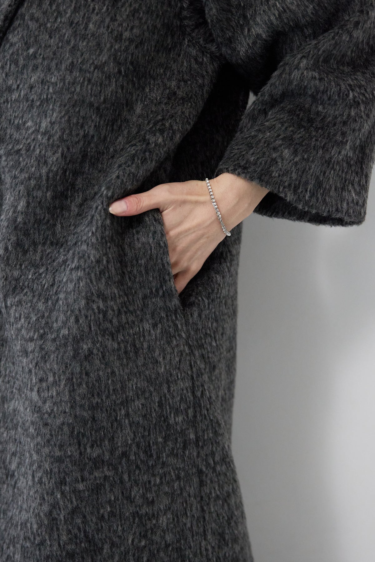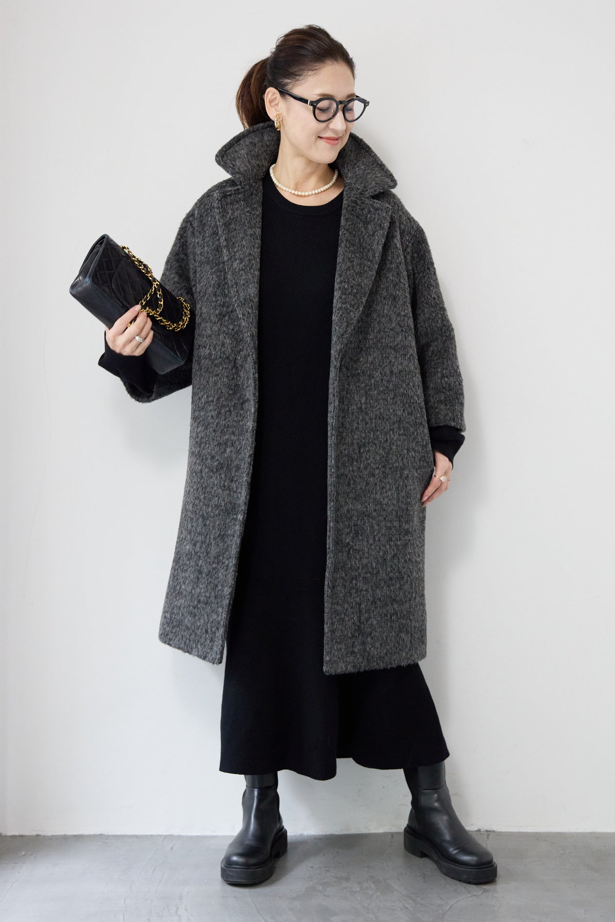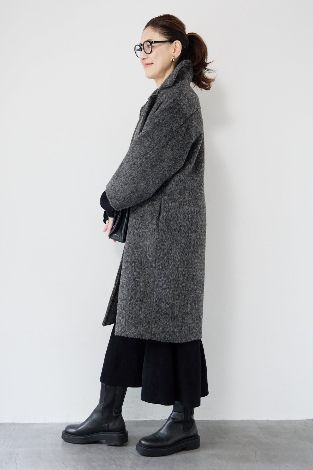 ふんわりとしたシャギー素材が魅力の、大人の雰囲気漂うチェスターコート。ミックスグレーの柔らかな色味とゆとりのあるシルエットが、上品な抜け感を演出します。軽い着心地ながら内側はキルティングでしっかりと暖かく、冬のお出かけにも頼れる一枚。襟は立てても折っても形が決まり、どんなコーデにも馴染む万能アウターです。シンプルながらひと味違う存在感で、毎日のスタイリングに寄り添います。