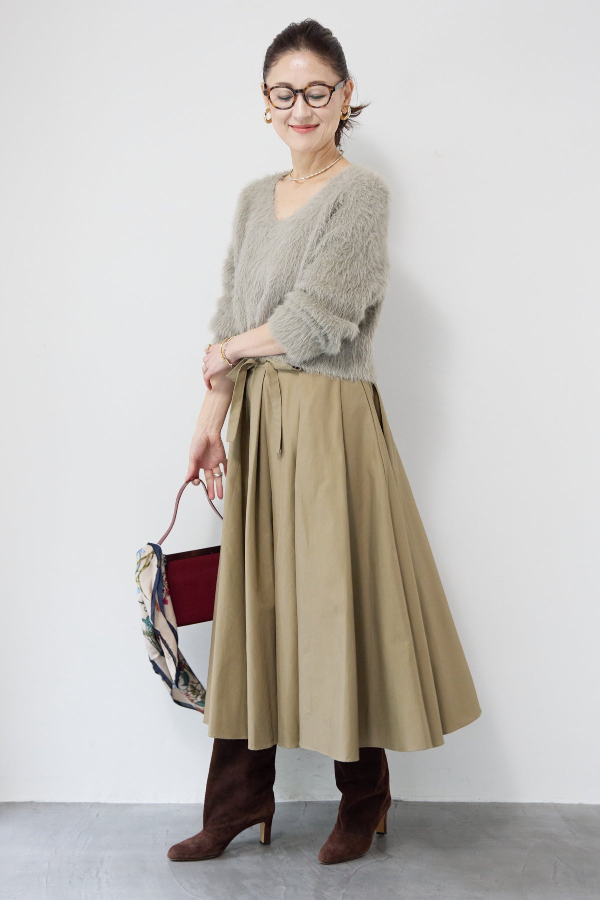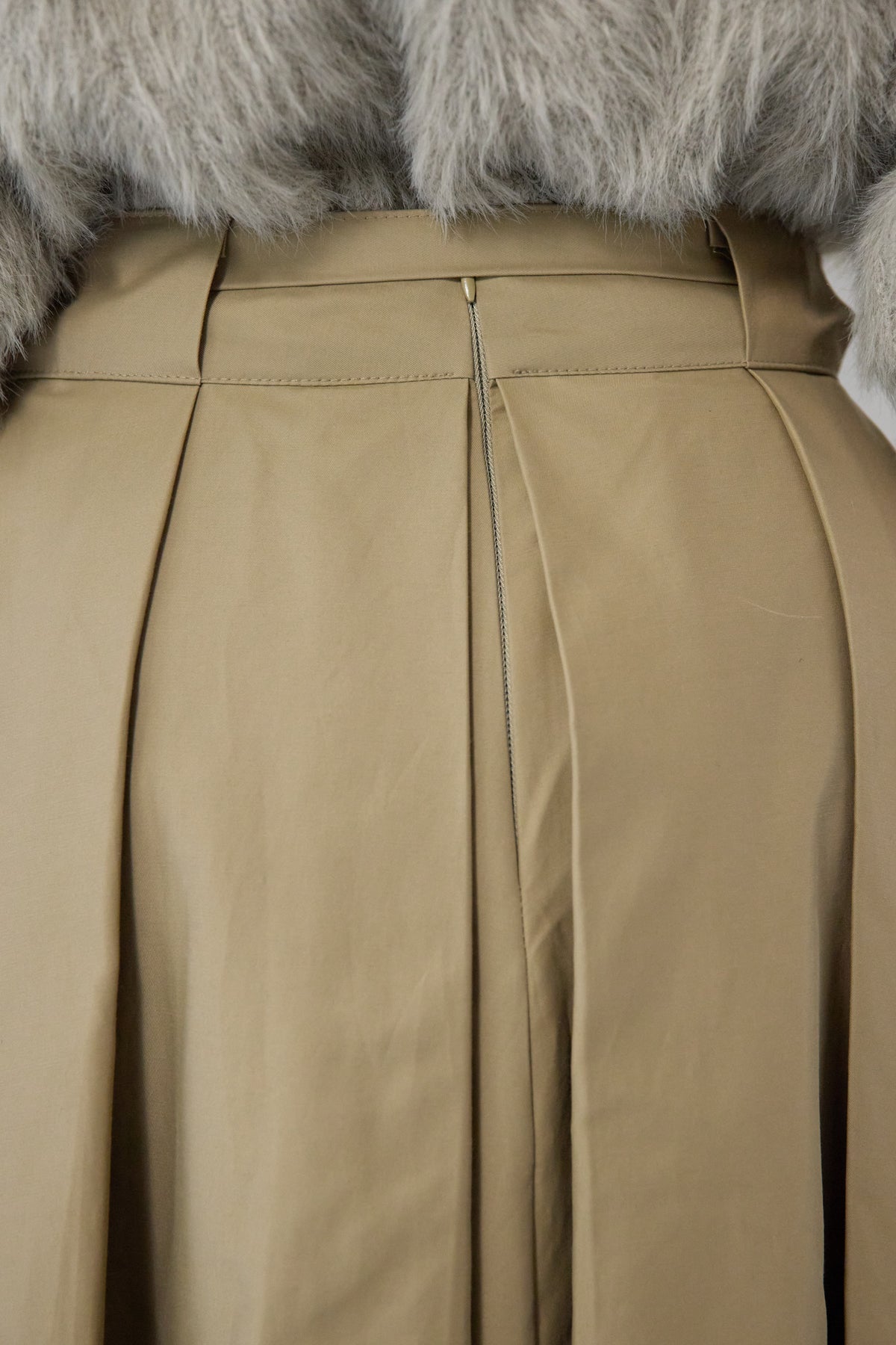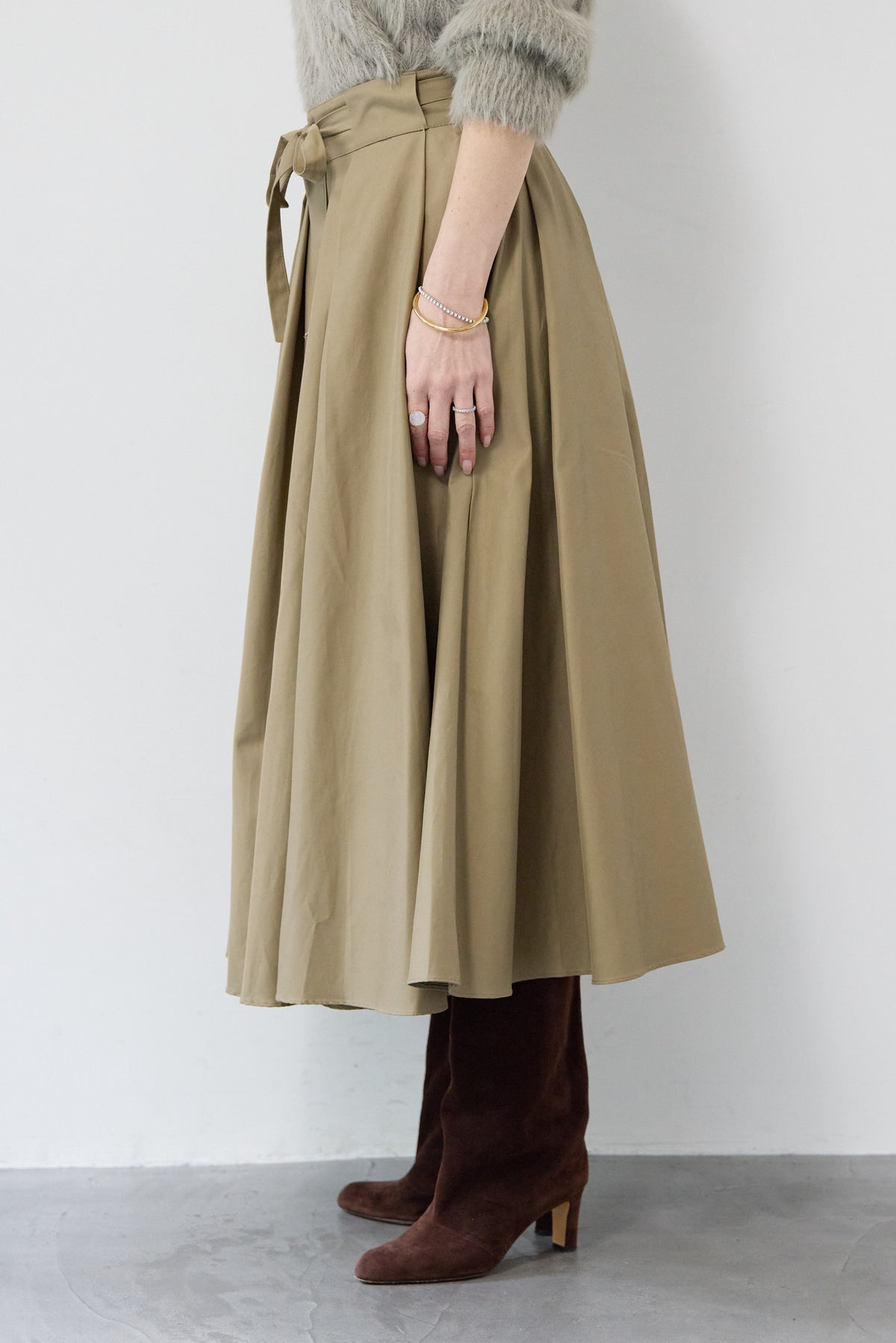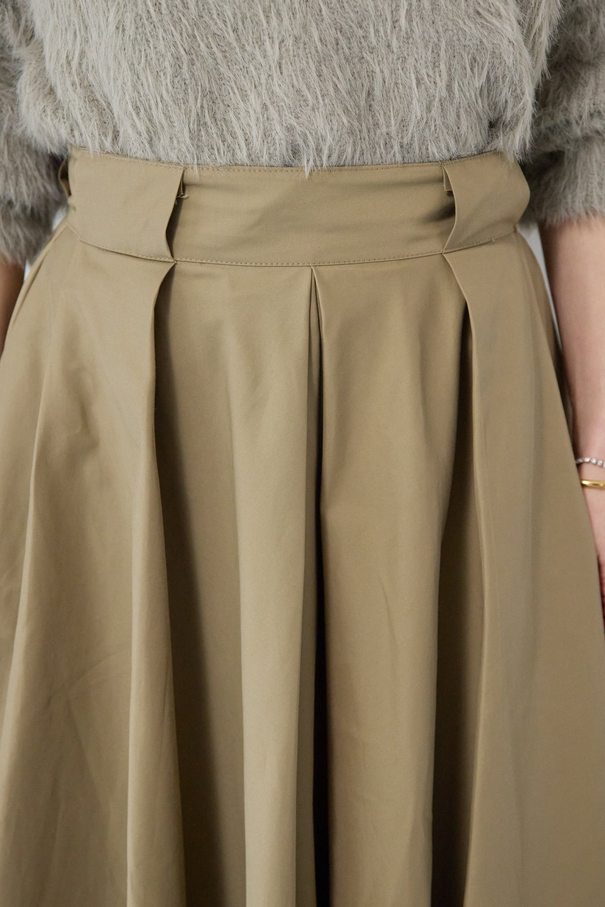 上質なハリ感を持つ素材で仕立てた、エレガントなロングタックスカート。立体的に広がるフレアラインが歩くたびに揺れ、女性らしい美シルエットを演出します。ウエスト周りにはタックをたっぷり入れつつ、すっきりと収まる設計で品のある印象に。同素材のリボンベルト付きで、気分に合わせてアレンジが可能です。フロントのウエストマークはスタイルアップ効果も◎バックスタイルにはコンシールファスナーを採用し、着脱もスムーズに。両サイドには便利なポケット付きで、デイリーにも活躍します。