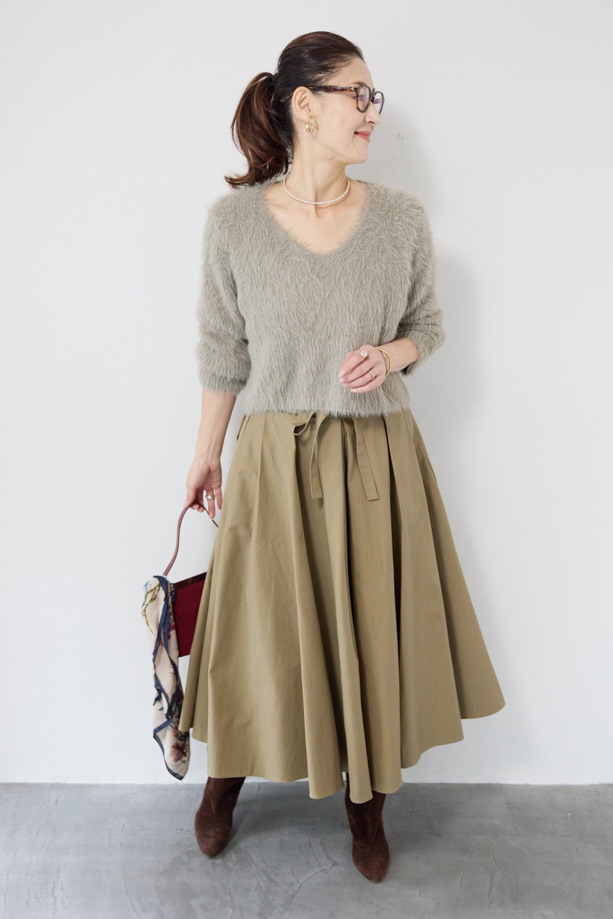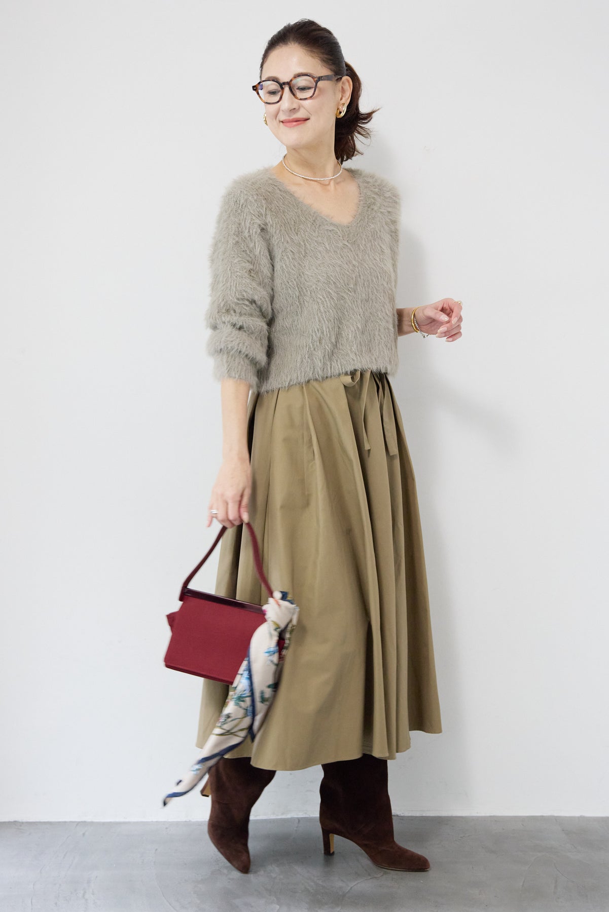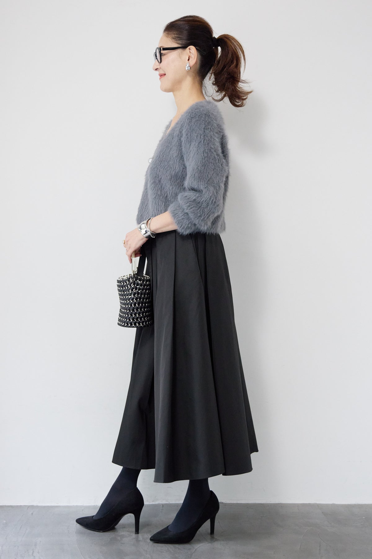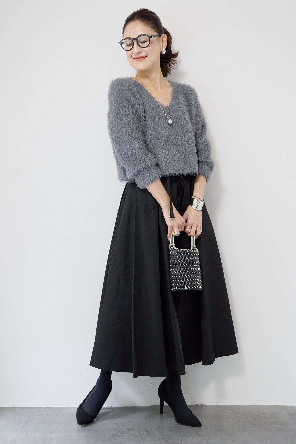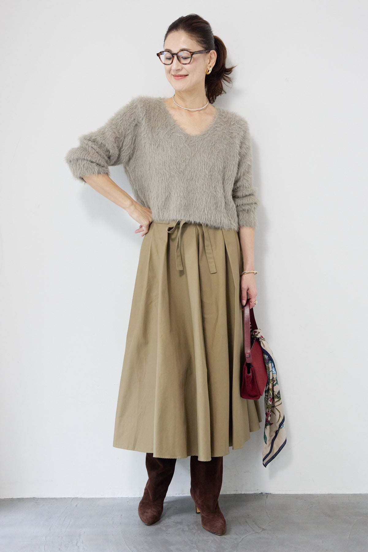 上質なハリ感を持つ素材で仕立てた、エレガントなロングタックスカート。立体的に広がるフレアラインが歩くたびに揺れ、女性らしい美シルエットを演出します。ウエスト周りにはタックをたっぷり入れつつ、すっきりと収まる設計で品のある印象に。同素材のリボンベルト付きで、気分に合わせてアレンジが可能です。フロントのウエストマークはスタイルアップ効果も◎バックスタイルにはコンシールファスナーを採用し、着脱もスムーズに。両サイドには便利なポケット付きで、デイリーにも活躍します。