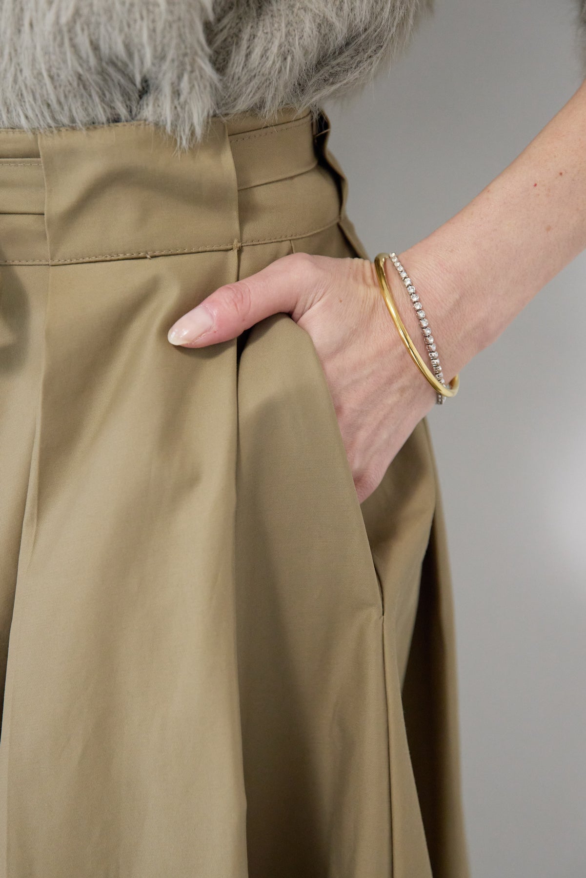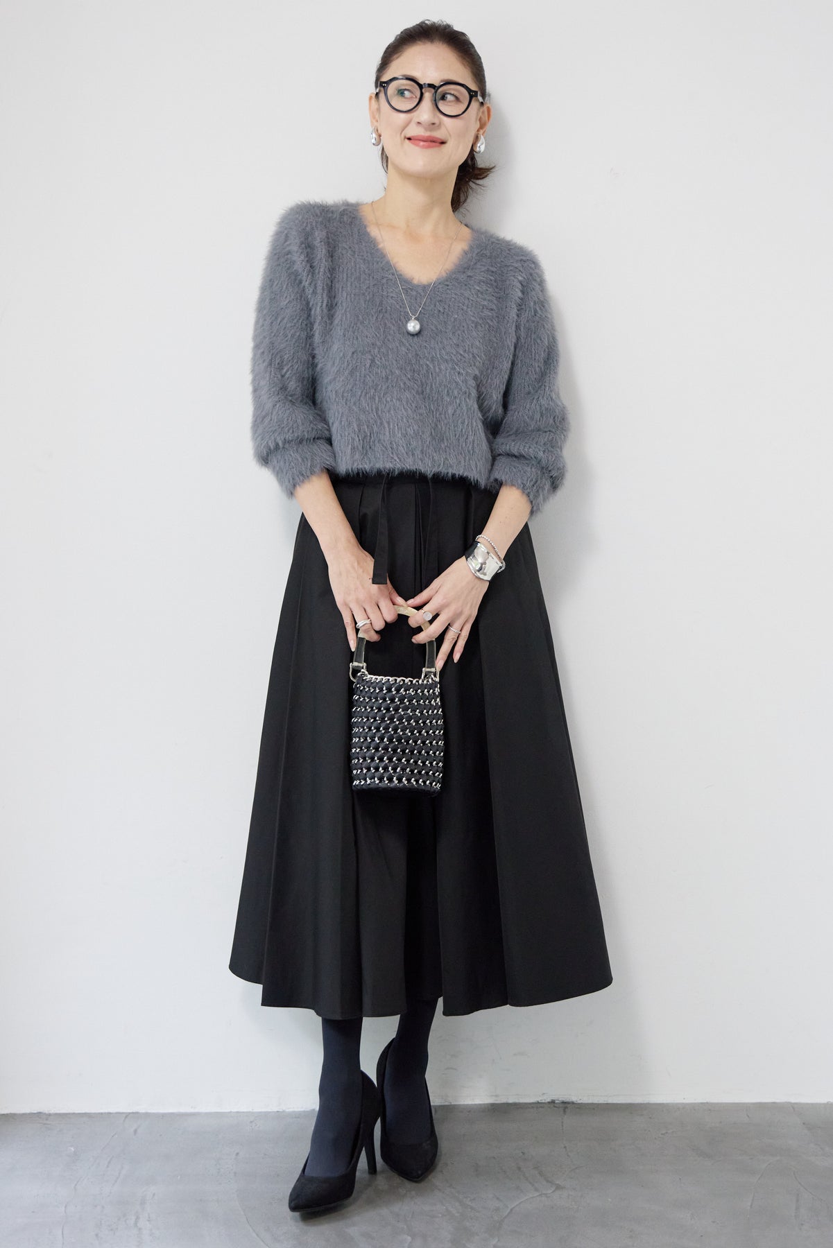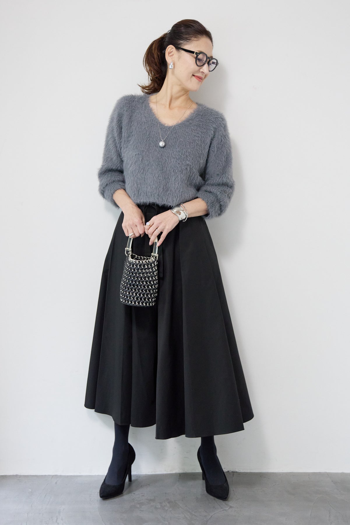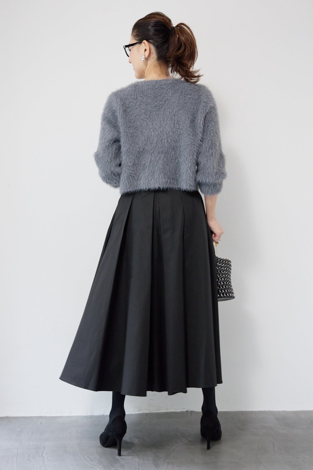上質なハリ感を持つ素材で仕立てた、エレガントなロングタックスカート。立体的に広がるフレアラインが歩くたびに揺れ、女性らしい美シルエットを演出します。ウエスト周りにはタックをたっぷり入れつつ、すっきりと収まる設計で品のある印象に。同素材のリボンベルト付きで、気分に合わせてアレンジが可能です。フロントのウエストマークはスタイルアップ効果も◎バックスタイルにはコンシールファスナーを採用し、着脱もスムーズに。両サイドには便利なポケット付きで、デイリーにも活躍します。