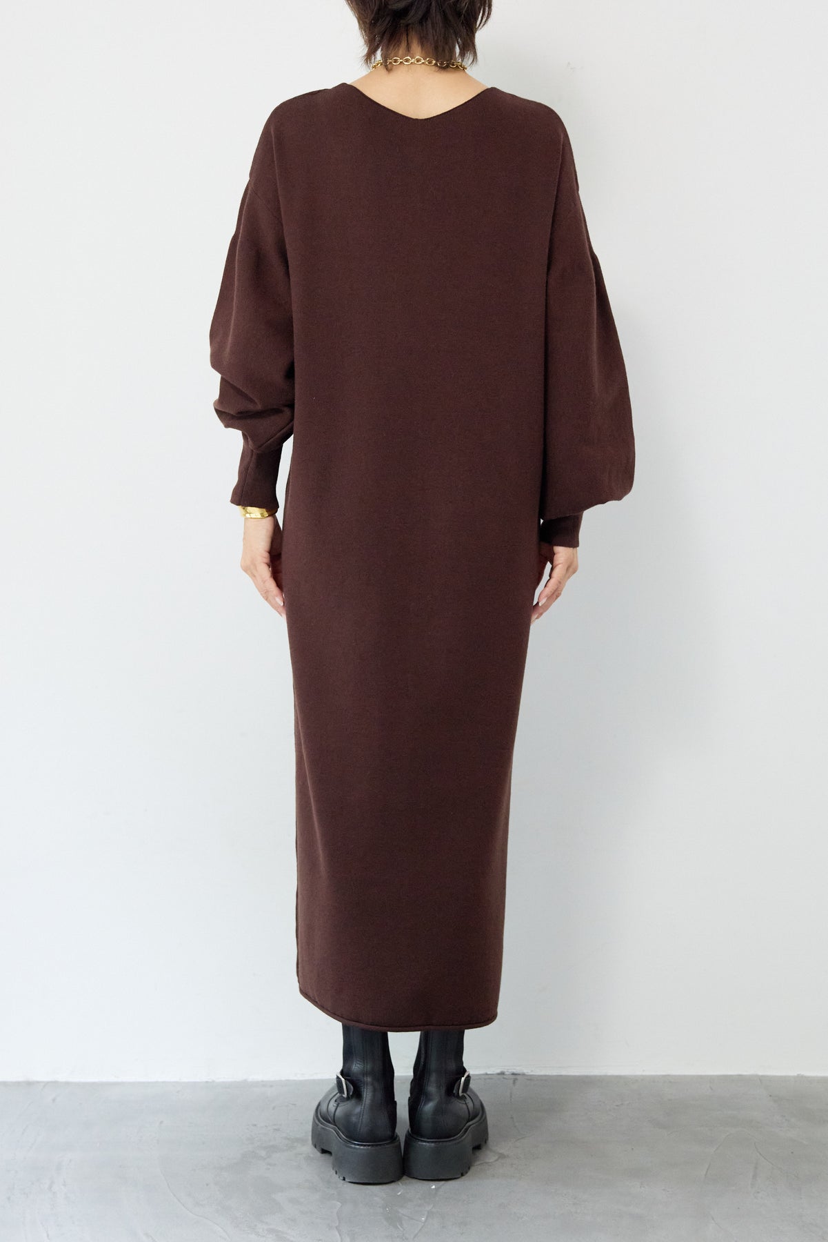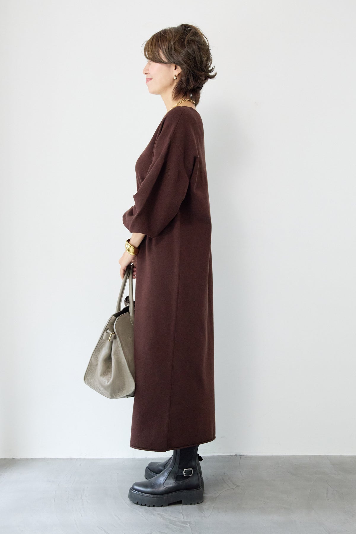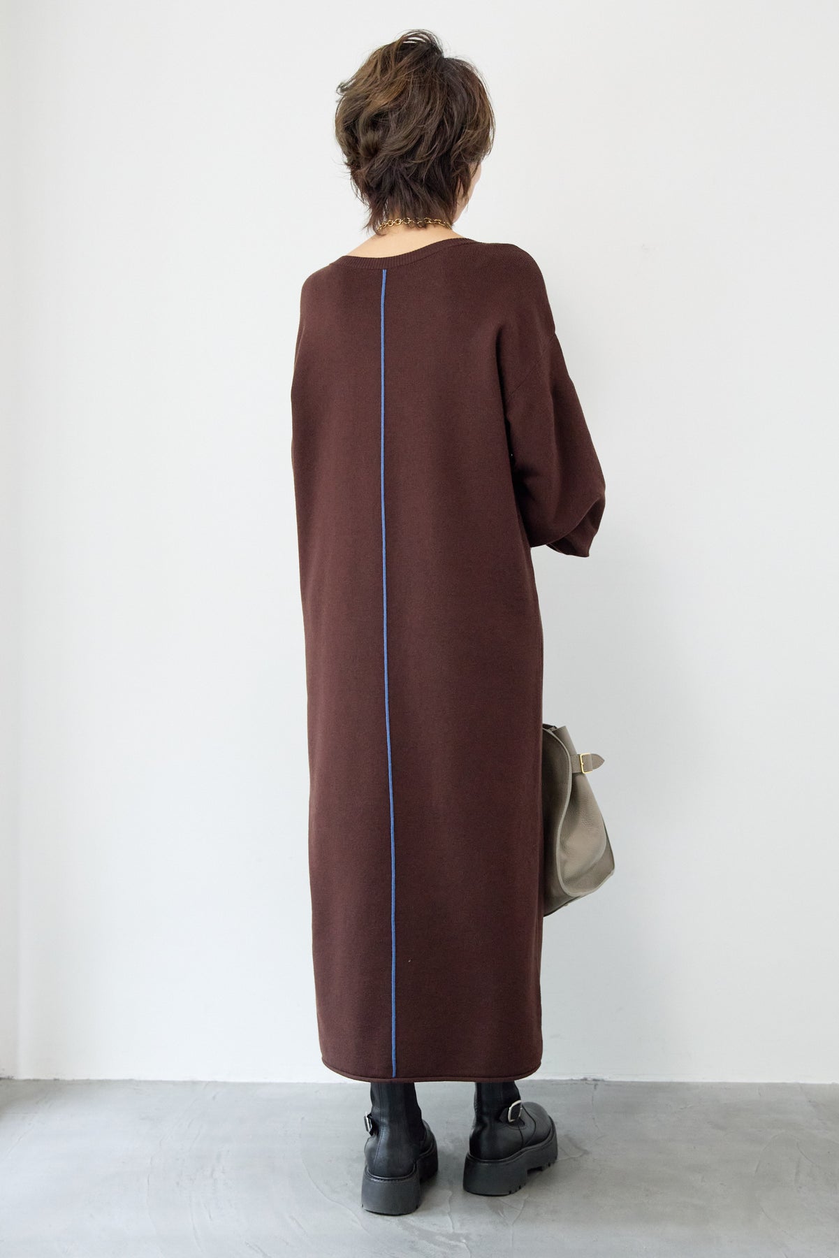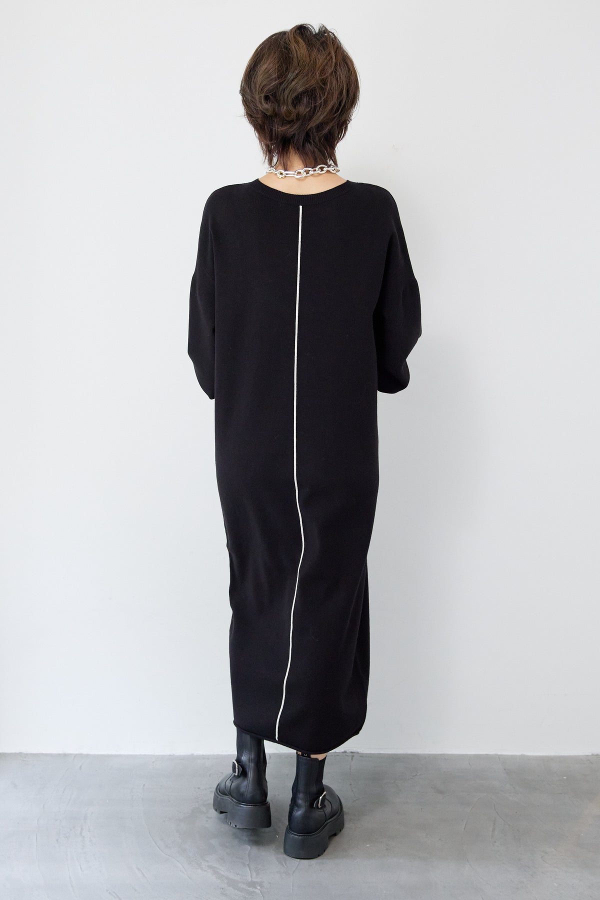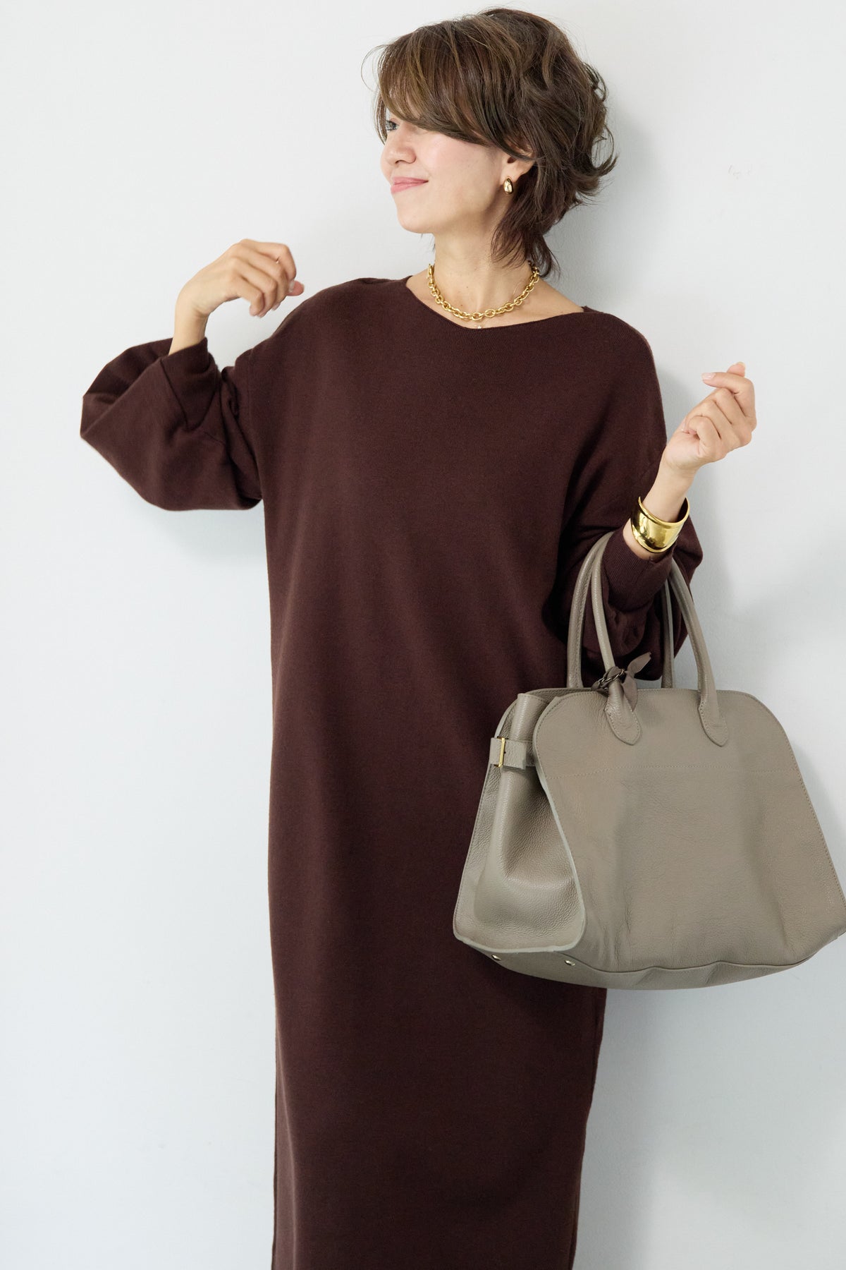 ボリュームスリーブが特徴の一枚で着映えるニットワンピース。2WAYで着用可能でフロントはラウンドネック、バック側はゆるやかなVラインに。シンプルながらも表情豊かで、天竺のカールを生かした配色テープが縦ラインをスッキリと見せてくれます。やわらかくもっちりとした着心地の糸を使用。また静電気が発生しにくい加工をしているため着脱時の不快な静電気を軽減します。コーデに悩んだ時にさっと決まる、カジュアルにも綺麗めにも着こなせるアイテムです。