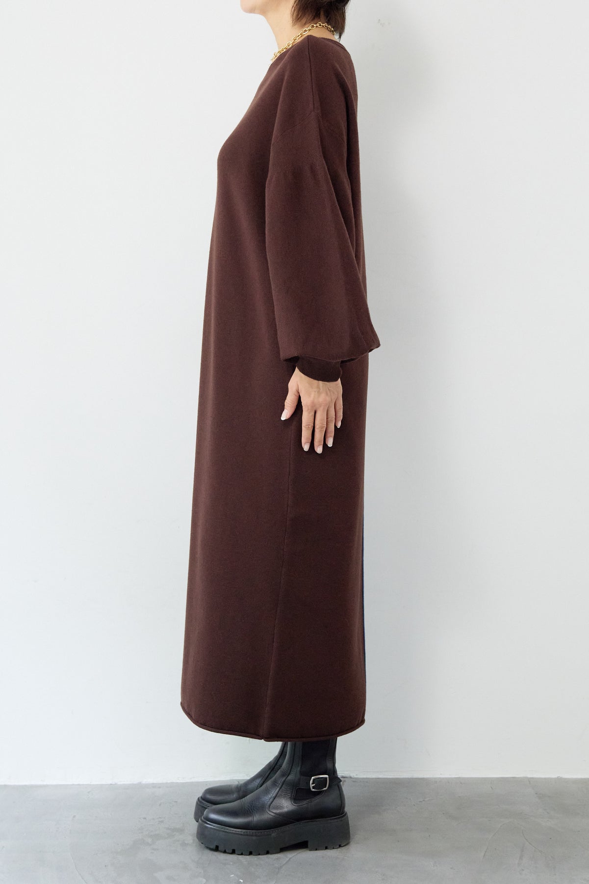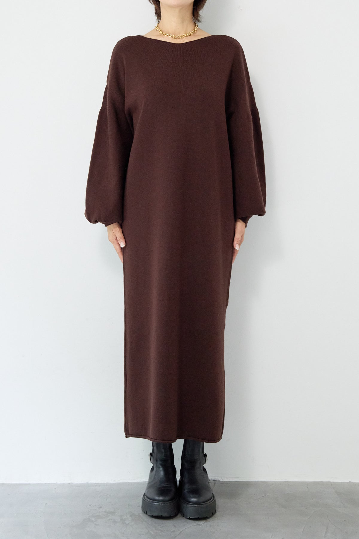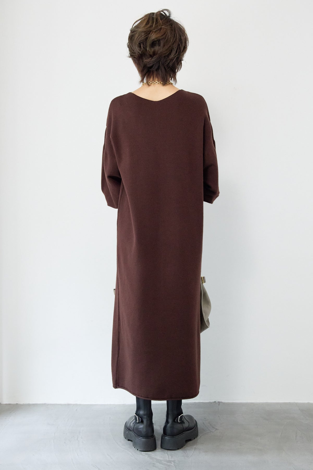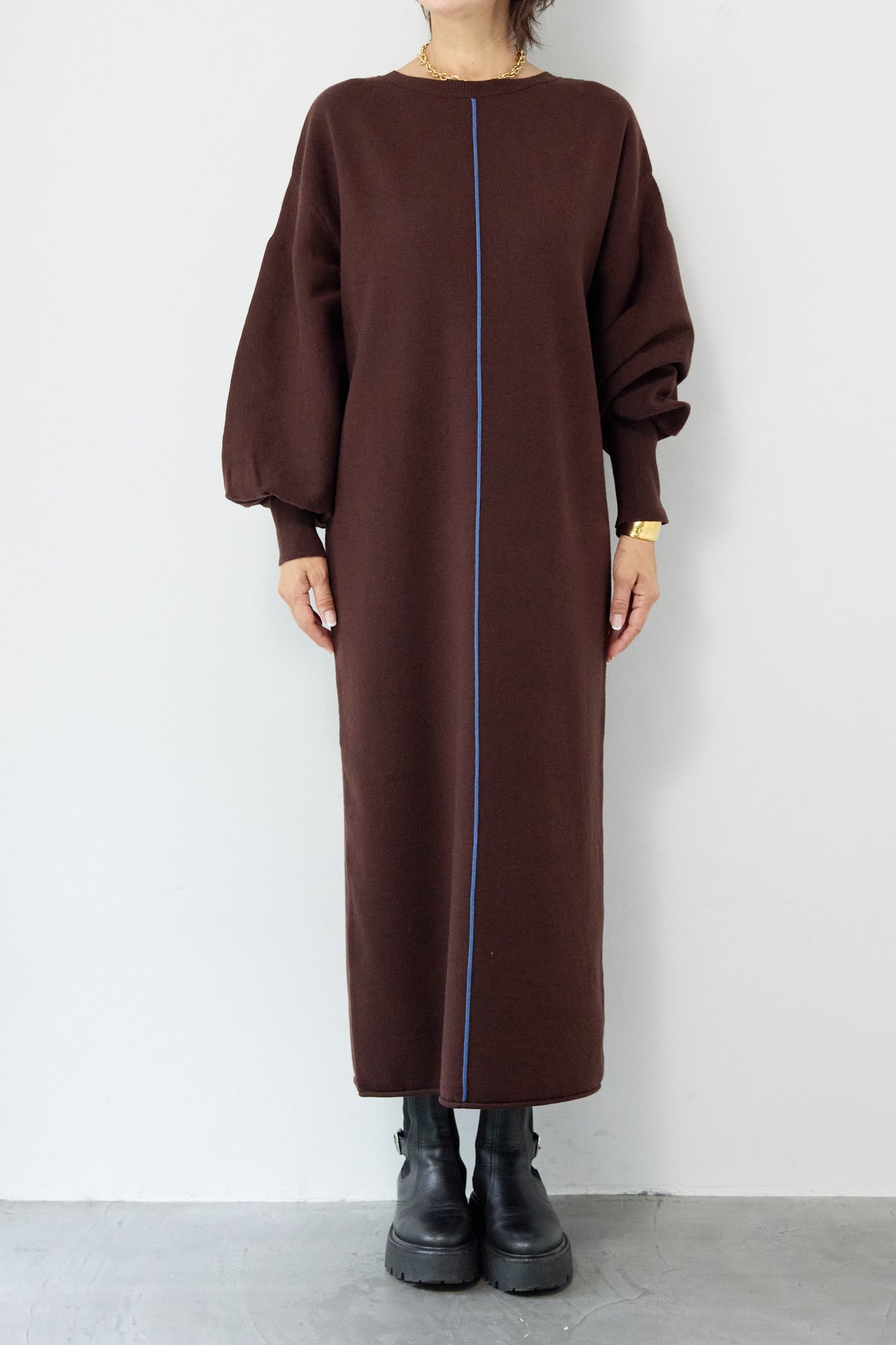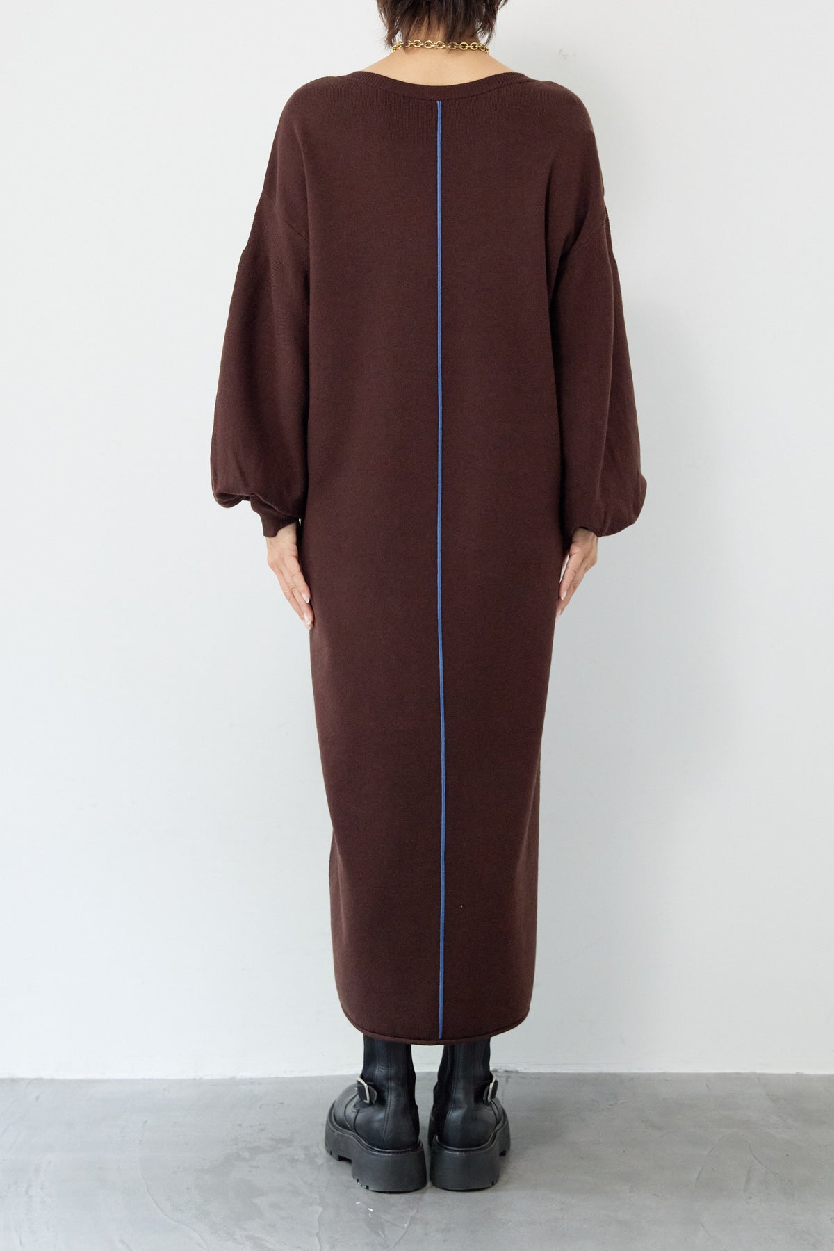 ボリュームスリーブが特徴の一枚で着映えるニットワンピース。2WAYで着用可能でフロントはラウンドネック、バック側はゆるやかなVラインに。シンプルながらも表情豊かで、天竺のカールを生かした配色テープが縦ラインをスッキリと見せてくれます。やわらかくもっちりとした着心地の糸を使用。また静電気が発生しにくい加工をしているため着脱時の不快な静電気を軽減します。コーデに悩んだ時にさっと決まる、カジュアルにも綺麗めにも着こなせるアイテムです。